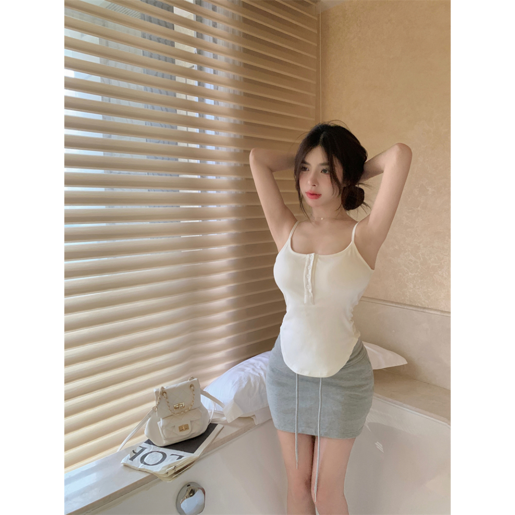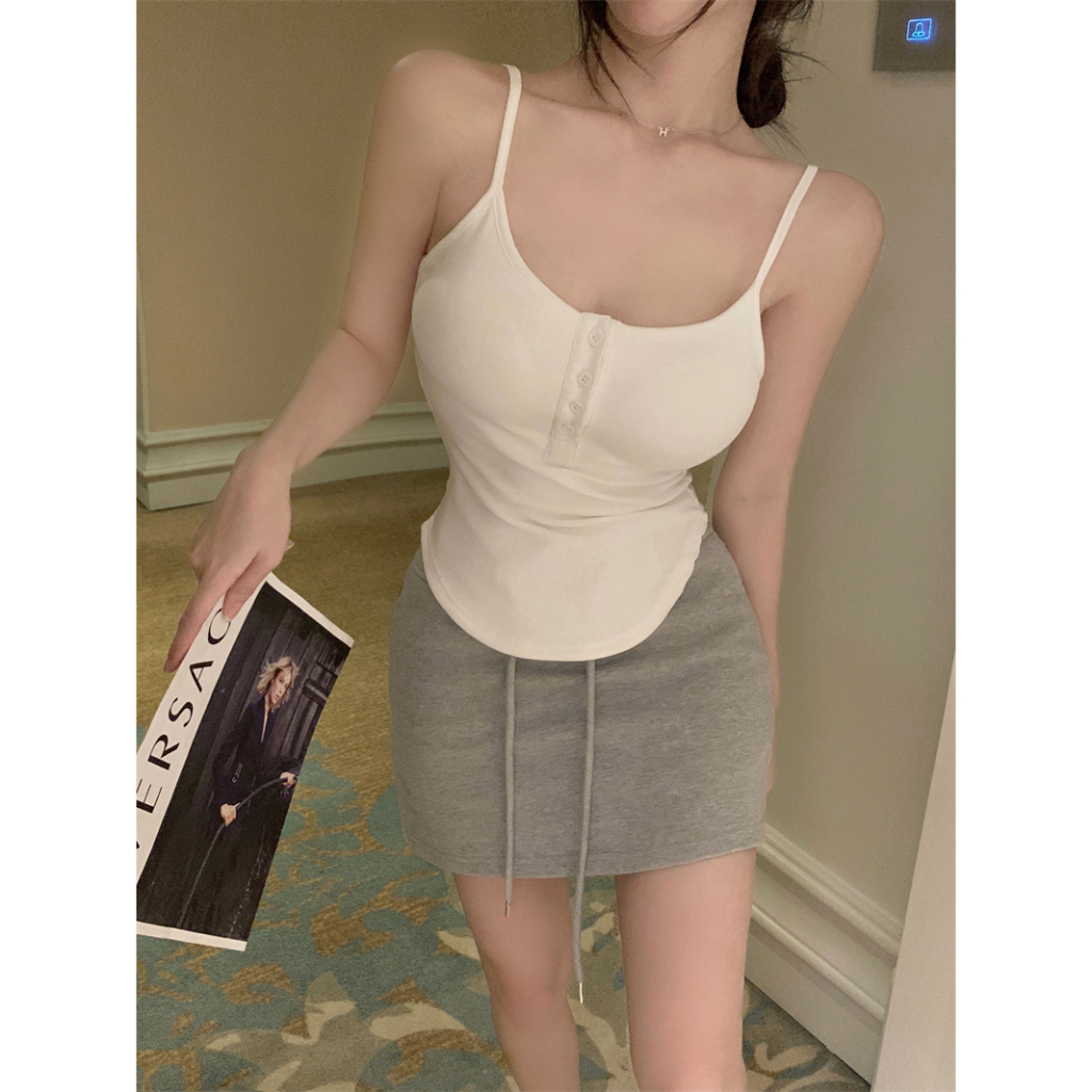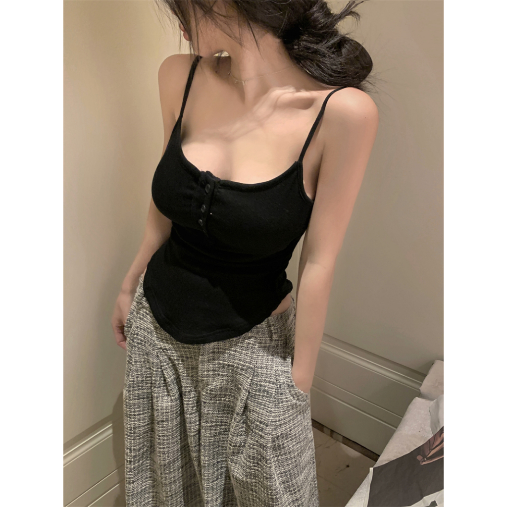 Betty house🌸พร้อมส่ง เสื้อกั๊ก เสื้อกล้ามผู้หญิง สายเดี่ยว แขนกุด สีพื้น แฟชั่น มีกระดุม เซ็กซี่ สไตล์เกาหลี
