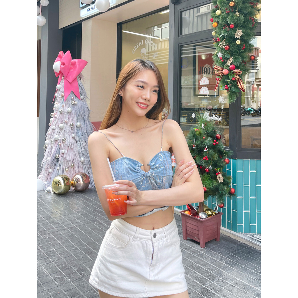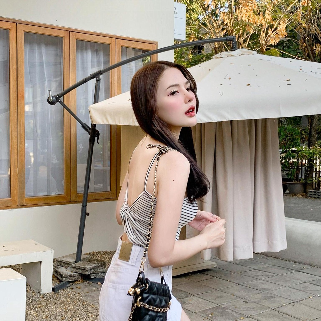Aurora🛒พร้อมส่ง🚚 (รูปถ่ายจากงานจริง) เสื้อสายเดี่ยว เว้าหน้าอกเล็ก ดีเทลโซ่รอยหลังเก๋ๆ