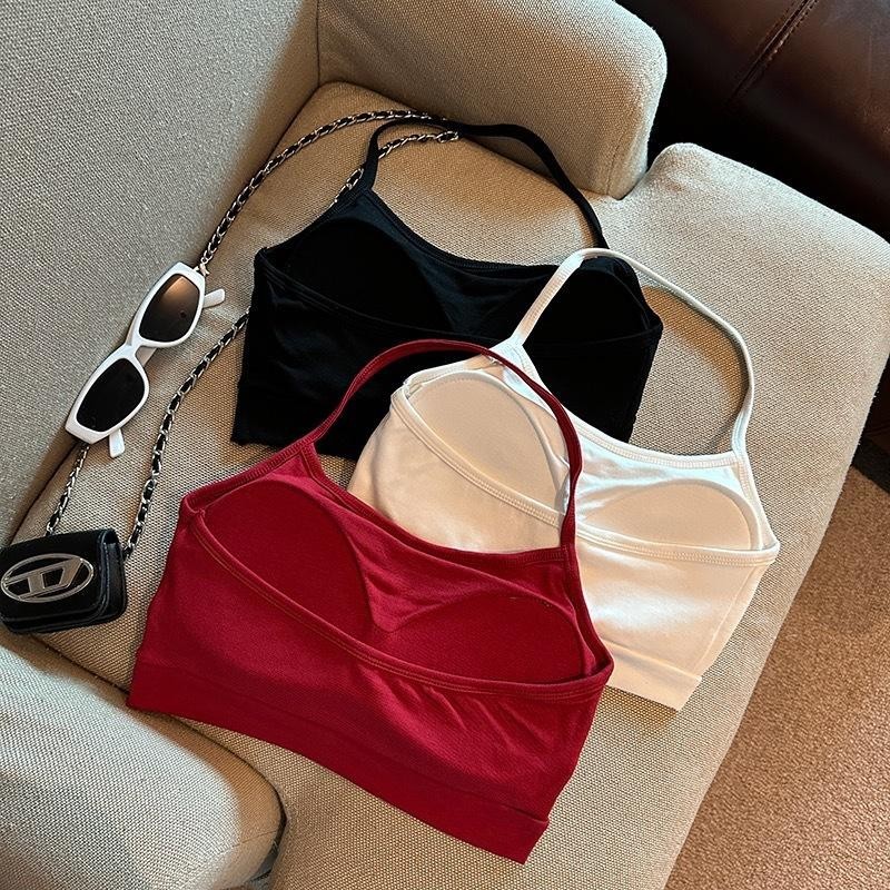 Aurora🛒พร้อมส่ง🚚เสื้อกล้าม ครอปทอป ฟองน้ำในตัว สายไขว้ ด้านหลัง สายคาดหลังเว็กซี่ บราไร้โครงไร้ขอบ สปอร์ตบรา bratop-7934