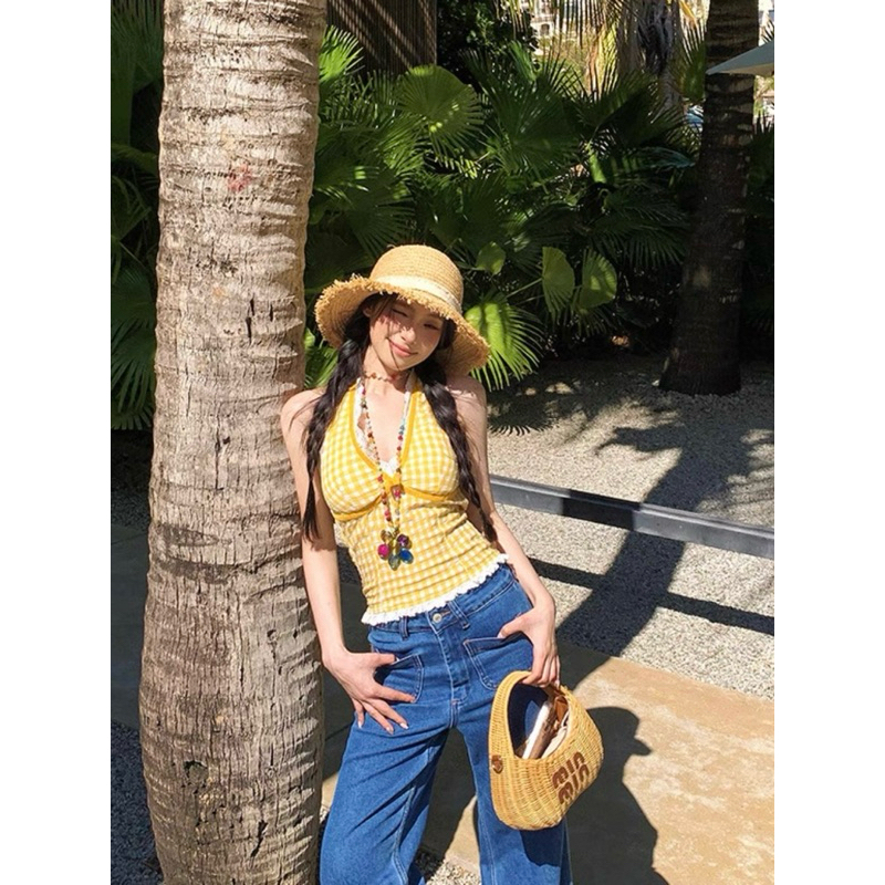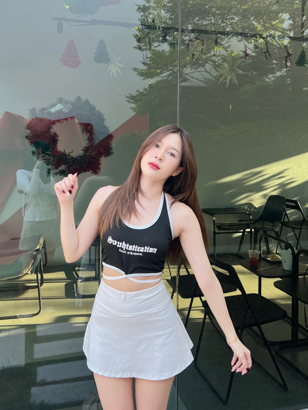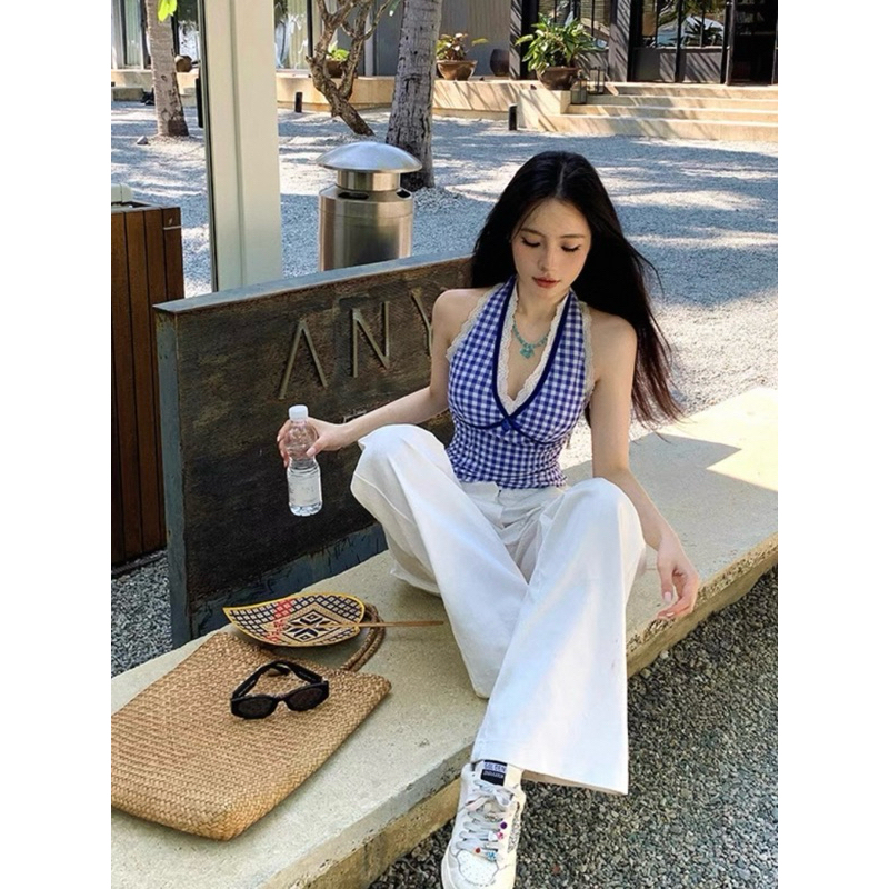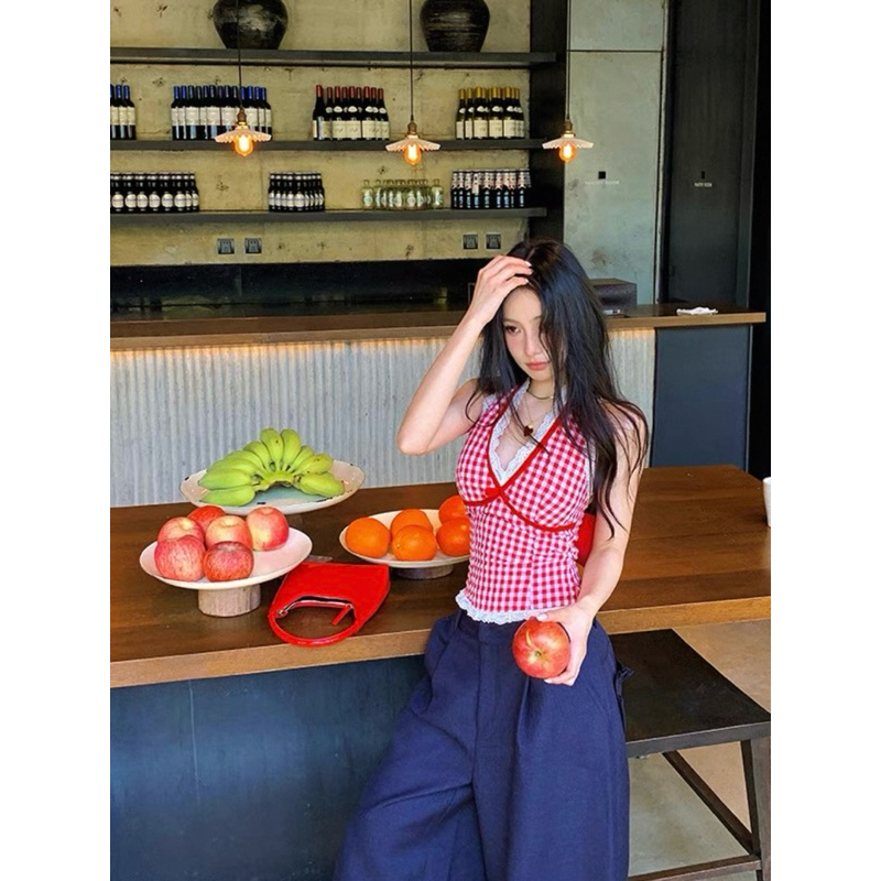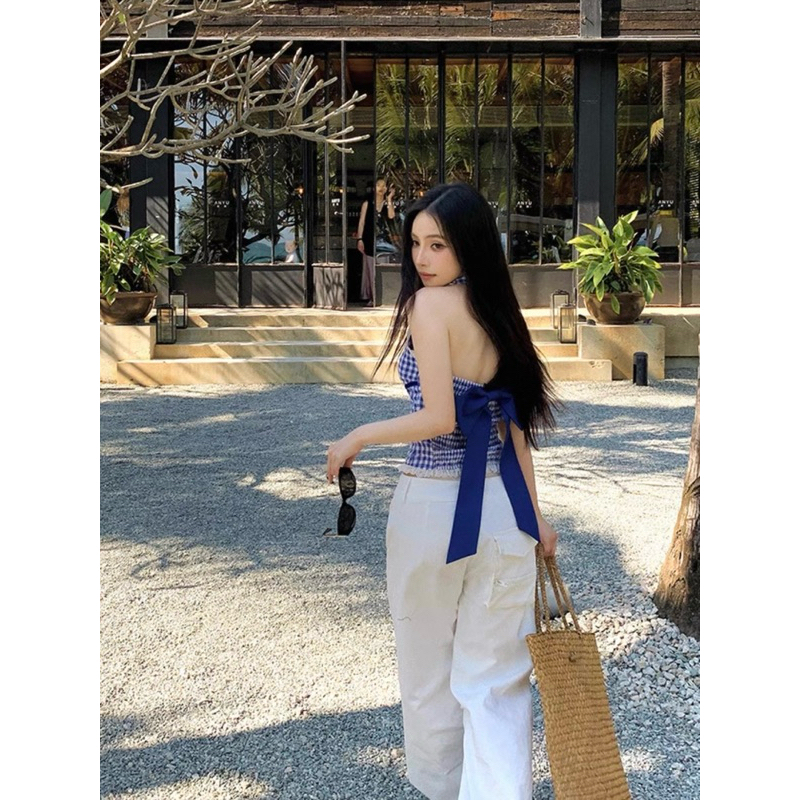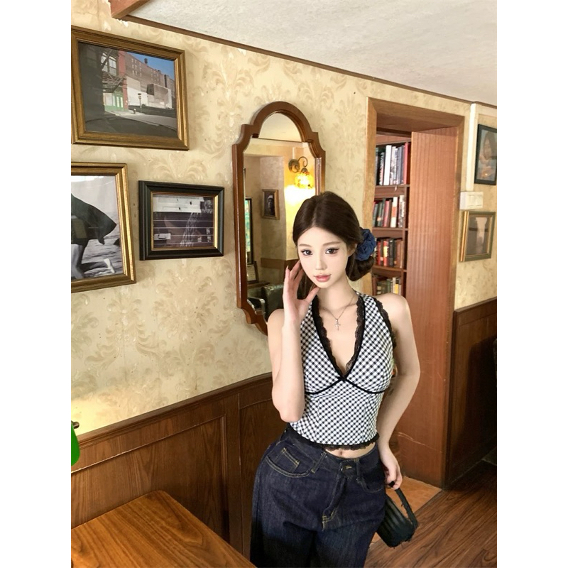 Bentoy(1139/6628/756)set2ชิ้น เสื้อสายเดี่ยว สไตล์เกาหลี สามารถแยกใส่ได้ ลายสก็อตน่ารักมากๆ