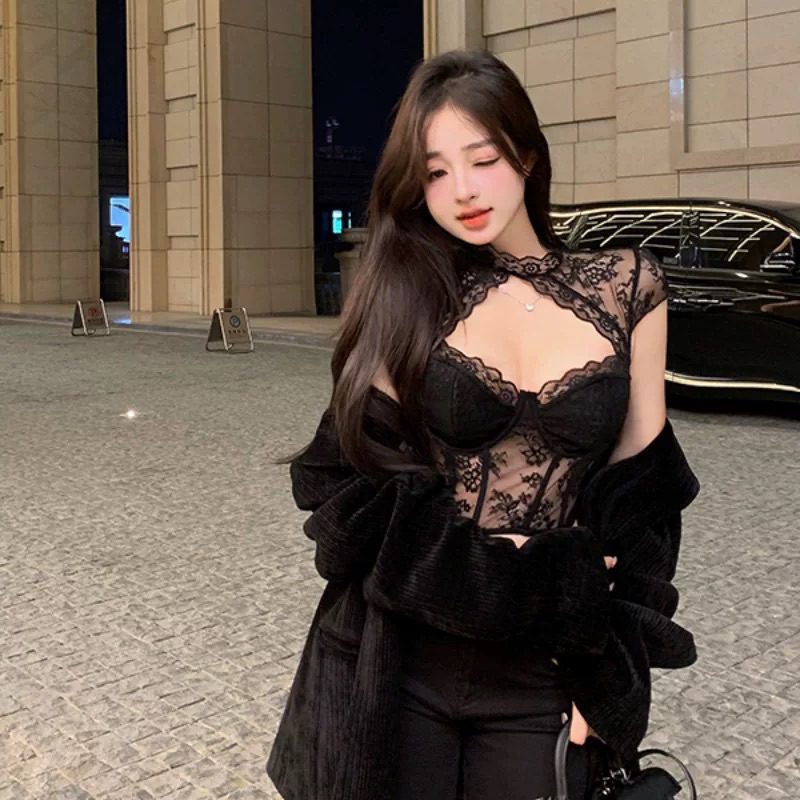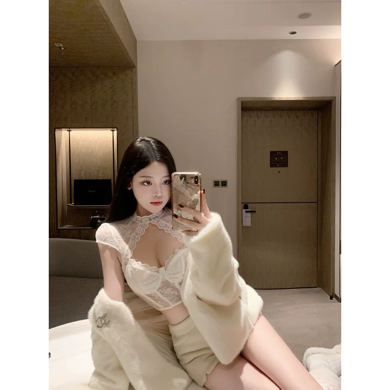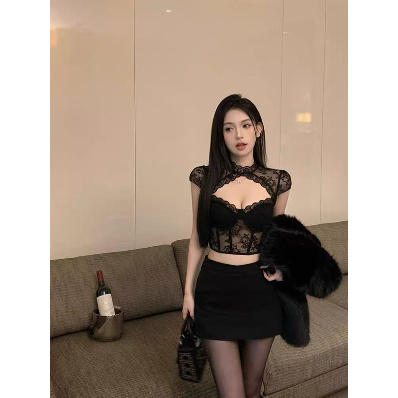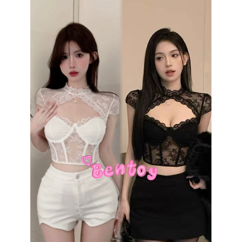 bentoy(bratop1901NEW)เสื้อลูกไม้เซ็กซี่ ฟองน้ำในตัว รัดรูป ทรงสวย คอเต่าลูกไม้