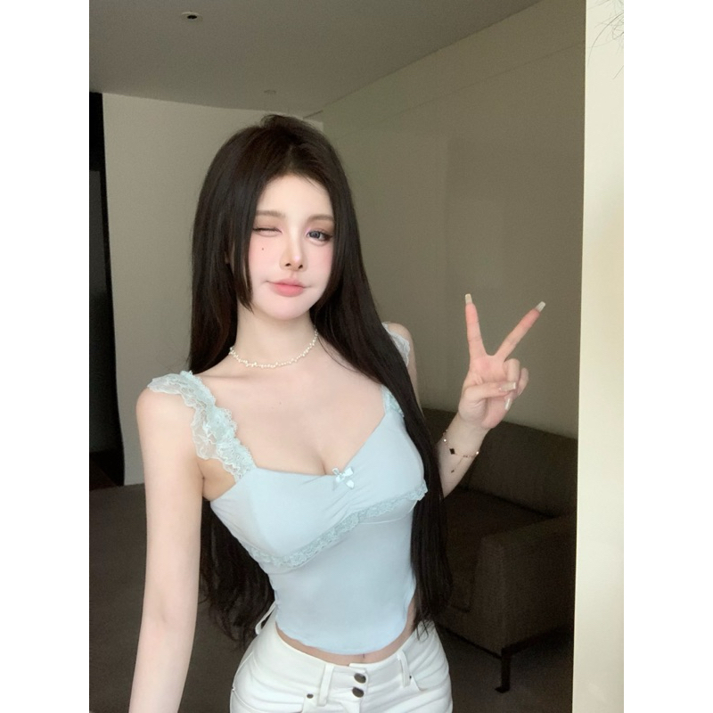 Blove* ฤดูร้อน Camis Crop Tops สําหรับผู้หญิงสปาเก็ตตี้สําหรับ Tank Tops แขนกุดลูกไม้ T
