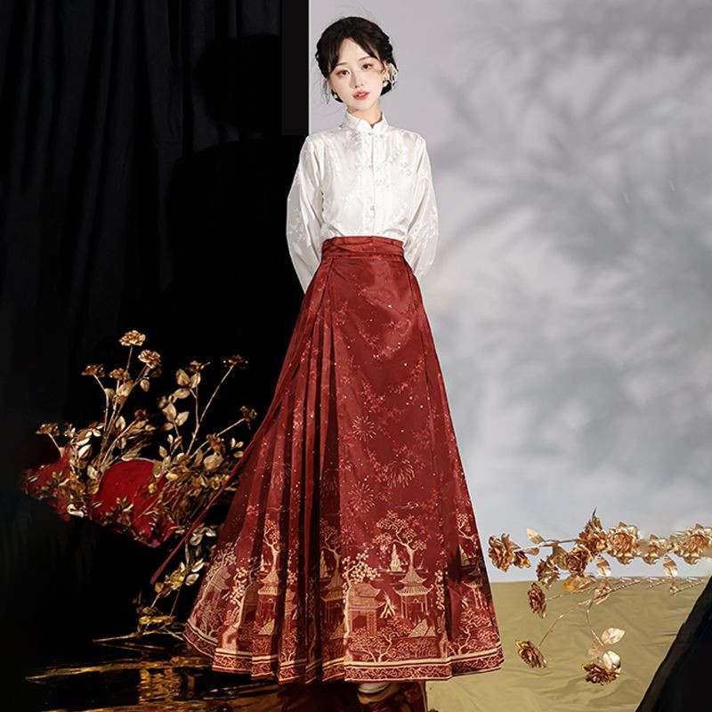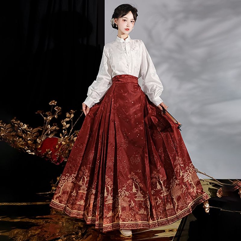 Yixi Shengge [ศาลาพลุ] Hanfu หญิง Ming ทําสไตล์จีนชุดกระโปรงหน้าม้าสไตล์จีนใหม่พร็อพทุกวัน