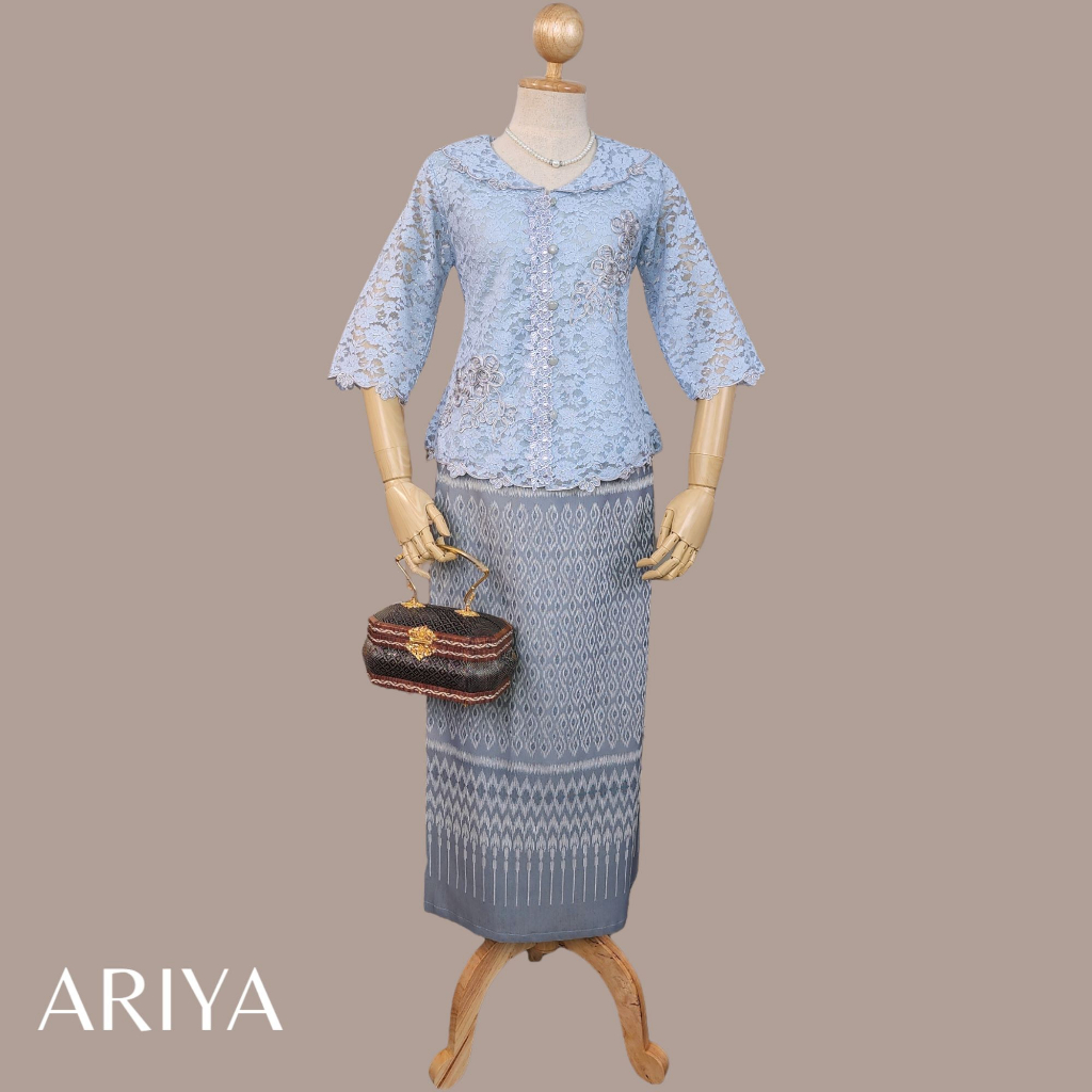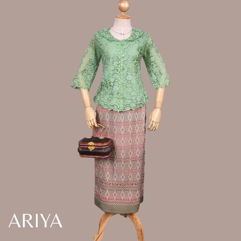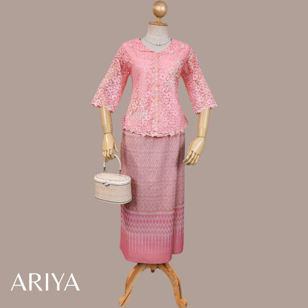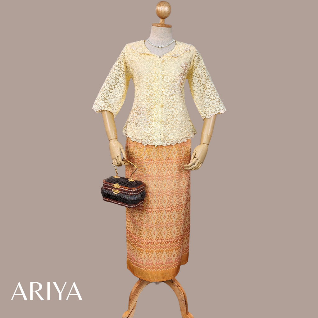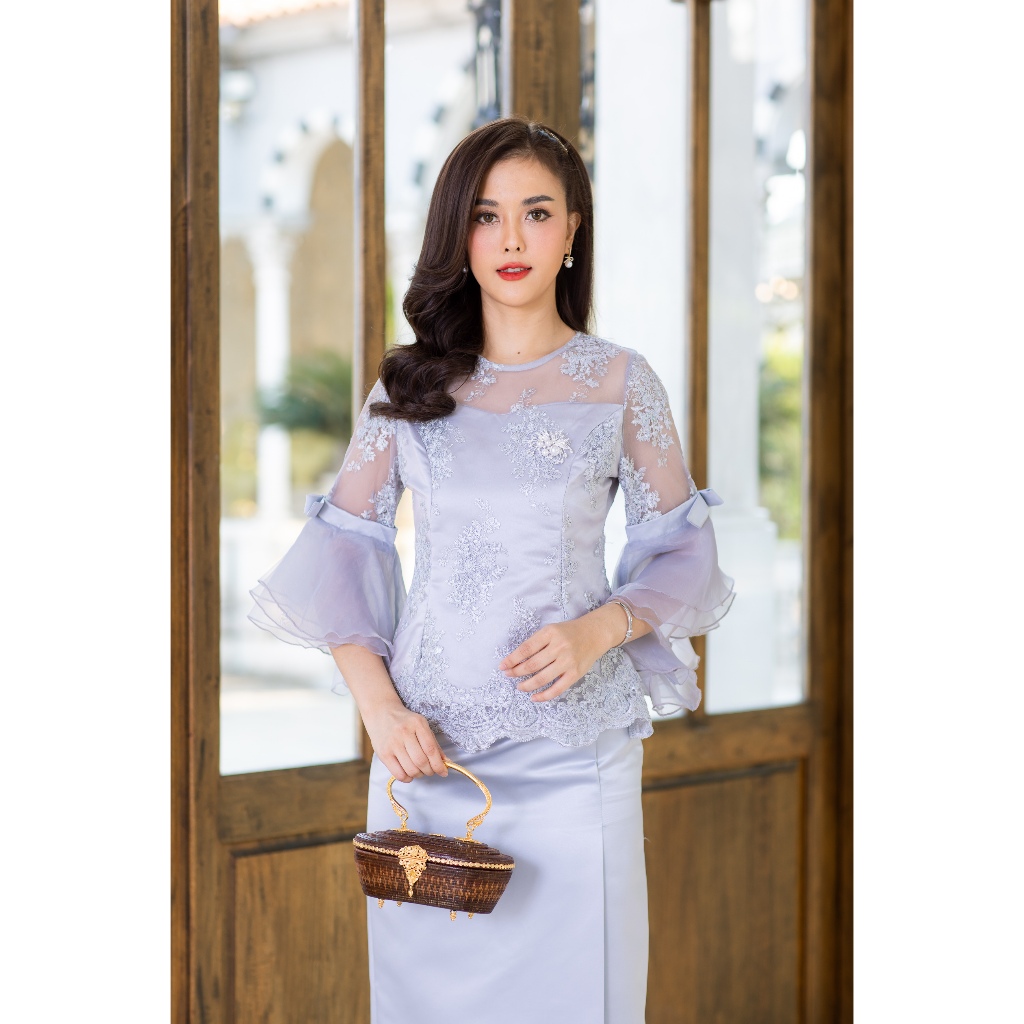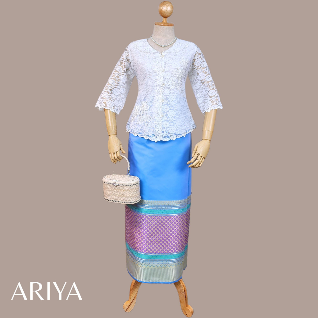 Sira Siri ชุดไทยเสื้อลูกไม้ แขนตุ๊กตาน่ารัก ใส่กับกระโปรงทอลายต้นสนสีม่วง สวยลงตัวมากๆจ้า