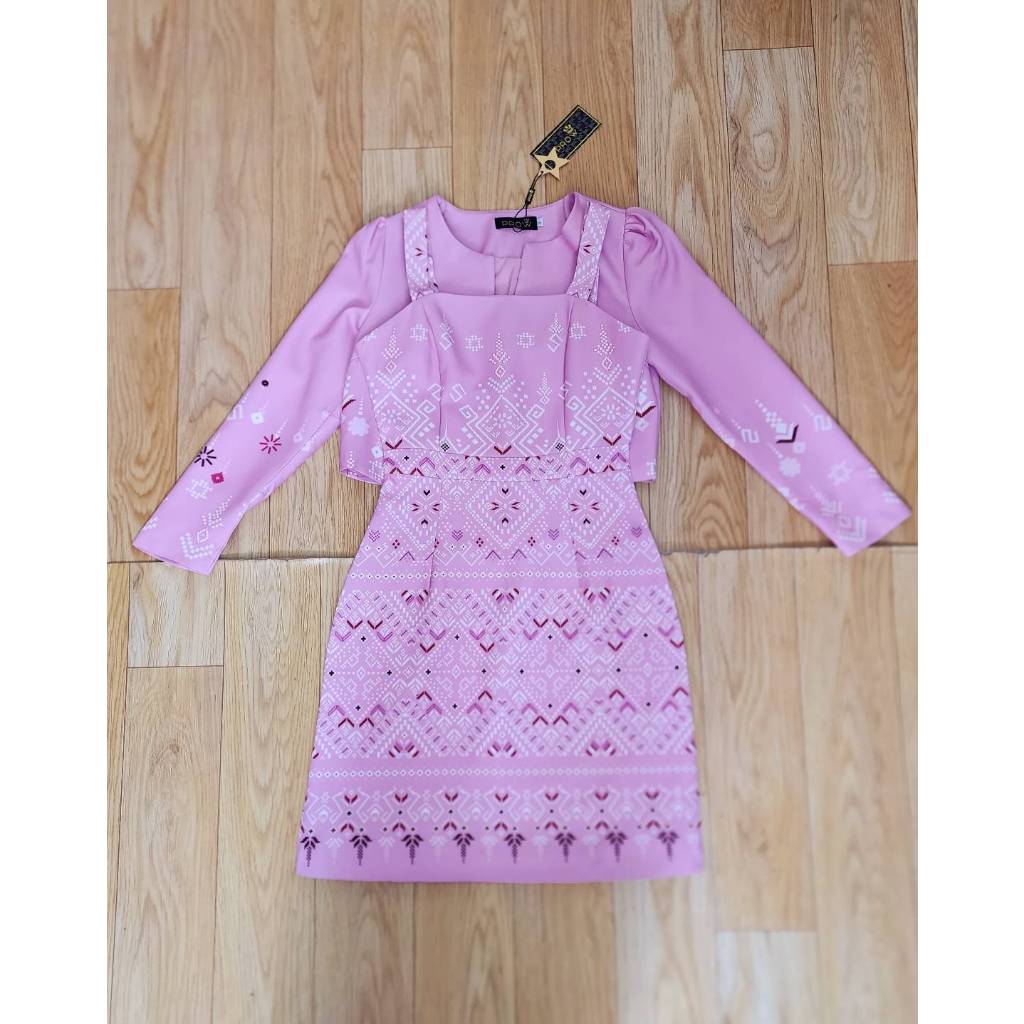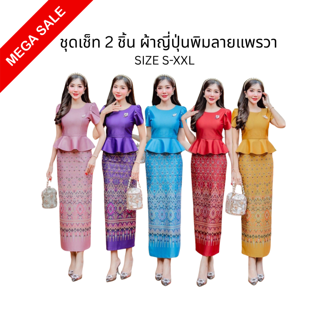 LindaStyle365 ชุดเช็ท 2 ชิ้น ผ้าญี่ปุ่นพิมลายแพรวา พื้นเมือง มีไซส์ S-2XL