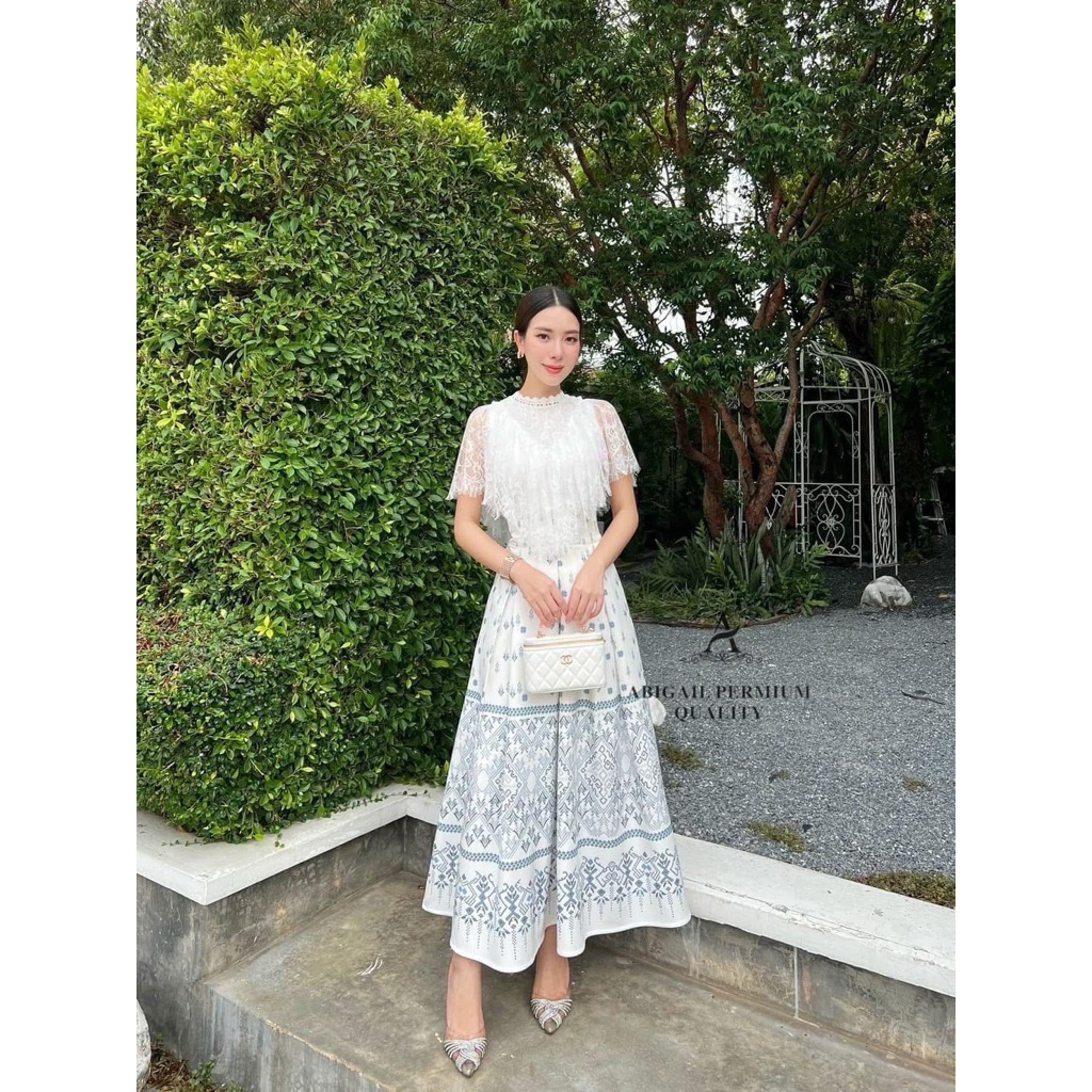 M7 Abigail Set ชุดเซ็ทเสื้อลูกไม้แขนสั้น+ผ้าถุงสำเร็จ ชุดไทยประยุกต์ สำหรับผู้หญิง เสื้อผ้าแฟชั่นผู้หญิง ไซส์ S-XL