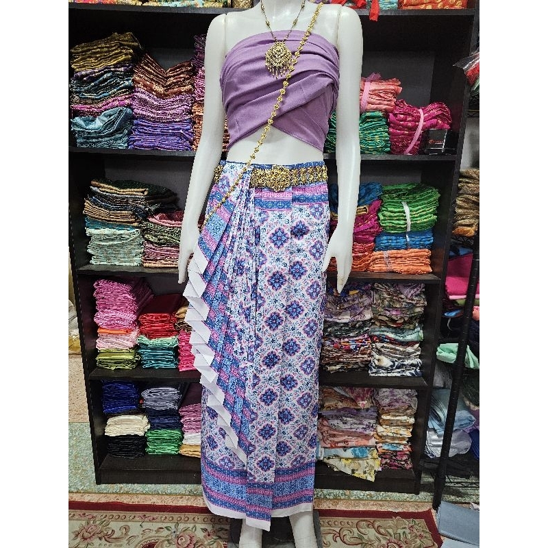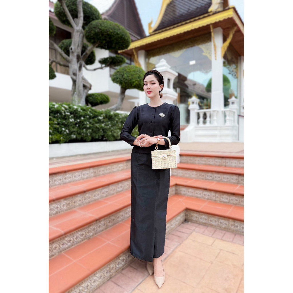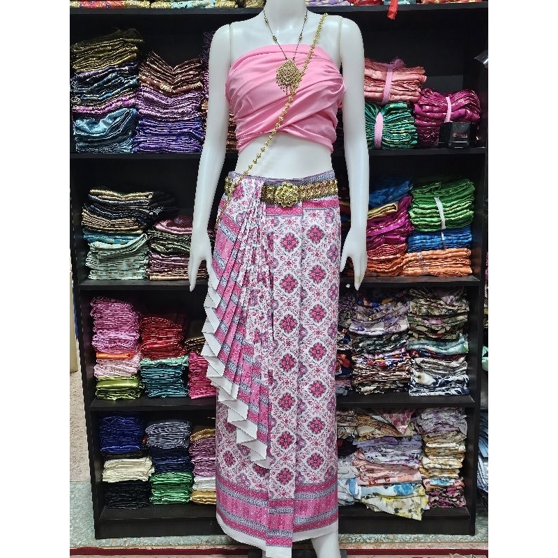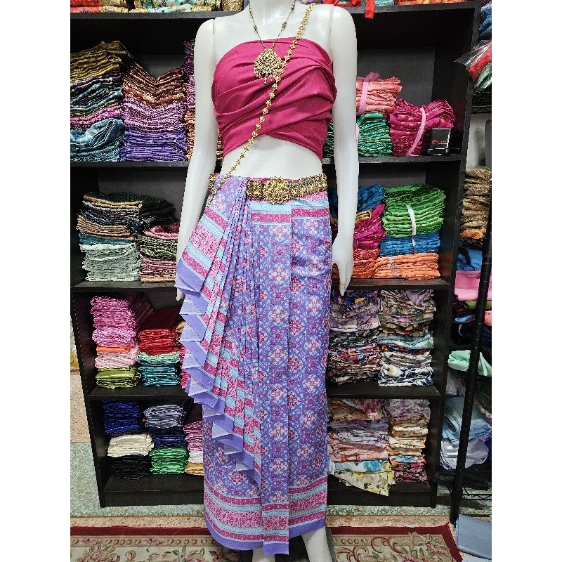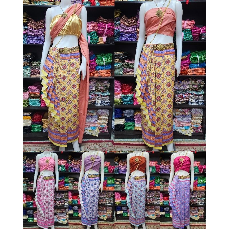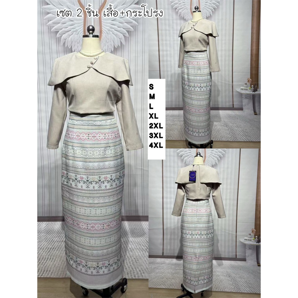 มี Xl เอวเล็ก1นิ้วราคาโปร✅ชุดไทยประยุกต์ เสื้อแขนยาว+ผ้าถุงสำเร็จพิมพ์ลายไทย ป้าย Chalita