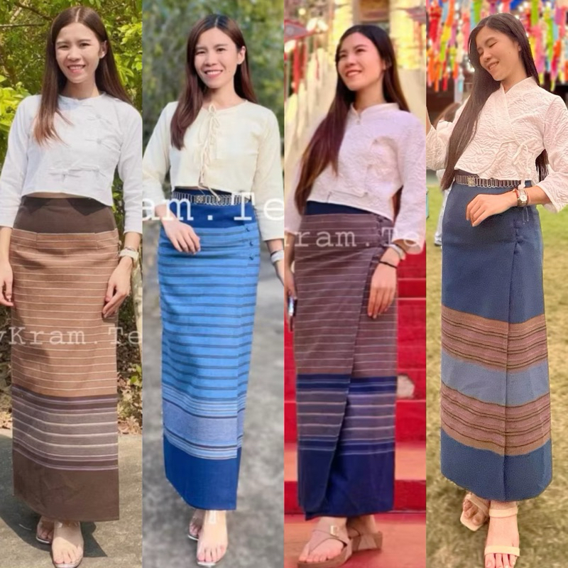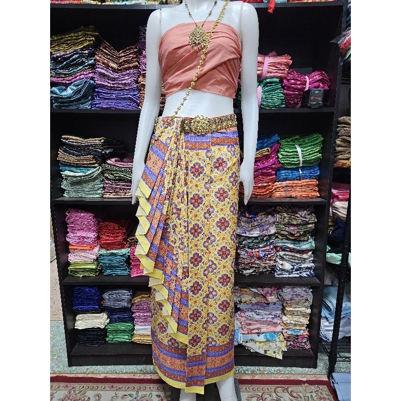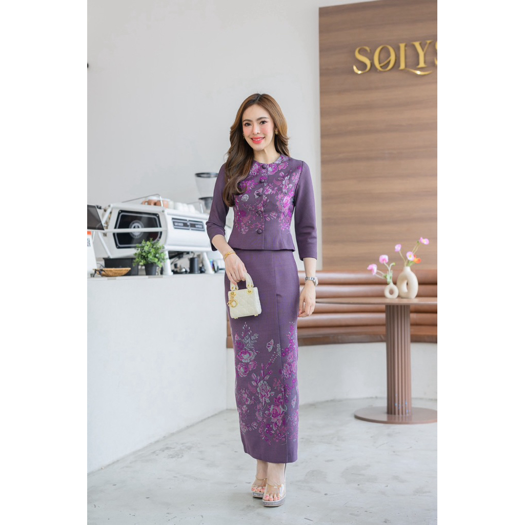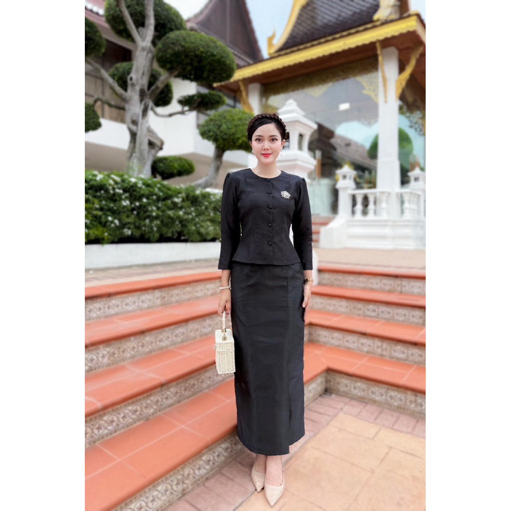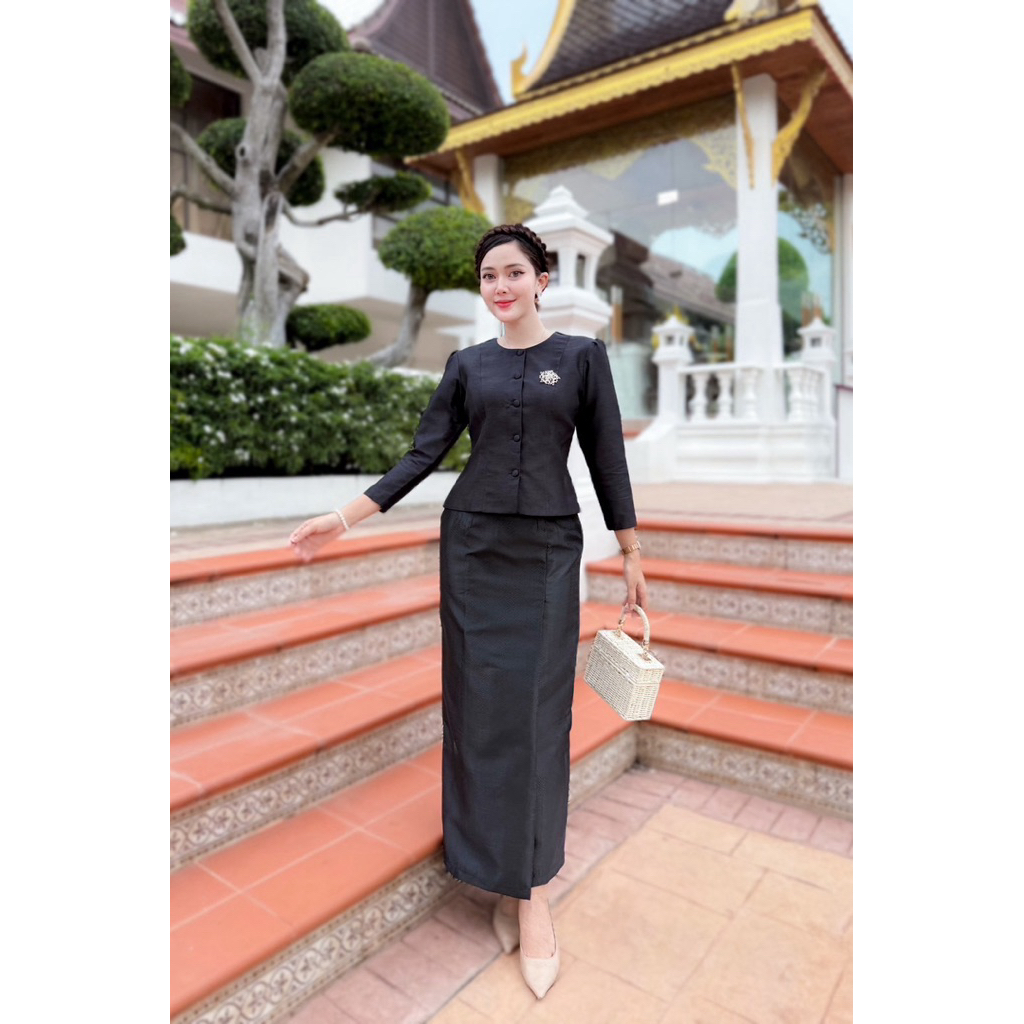 มี Xl เอวเล็ก1นิ้วราคาโปร✅ชุดไทยประยุกต์ เสื้อแขนยาว+ผ้าถุงสำเร็จพิมพ์ลายไทย ป้าย Chalita