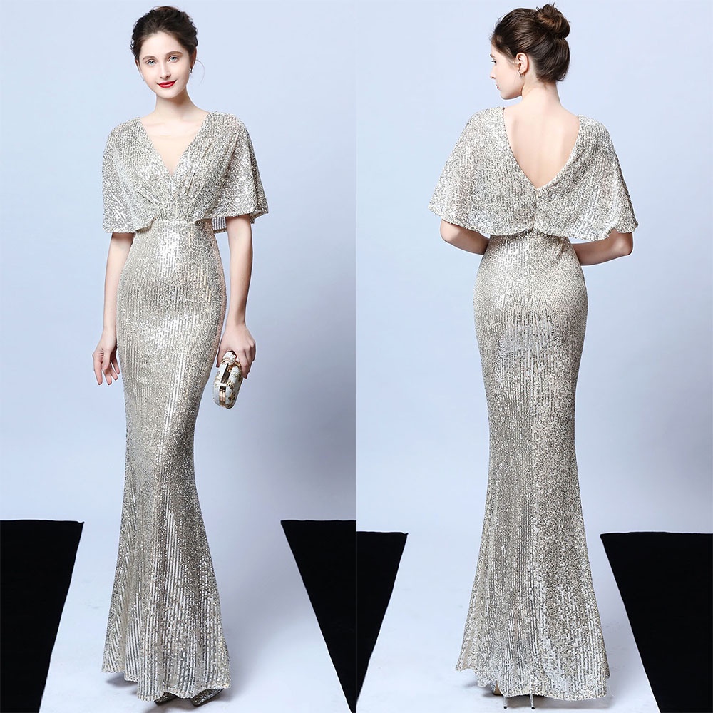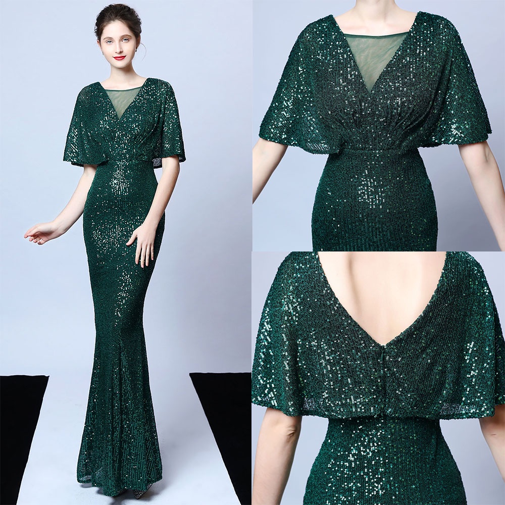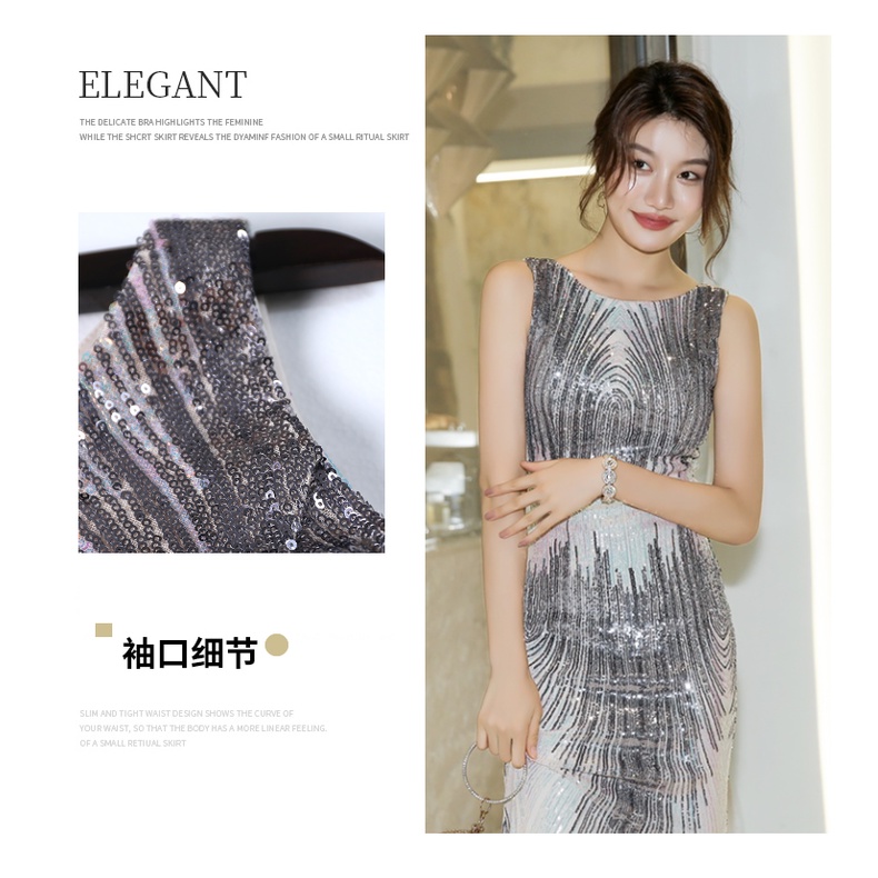 ชุดเดรสราตรียาว ปักเลื่อม หางปลา เป็นทางการ ใส่ไปงานเลี้ยง งานพรอม งานเลี้ยง งานวันเกิด งานแต่งงาน สําหรับผู้หญิง