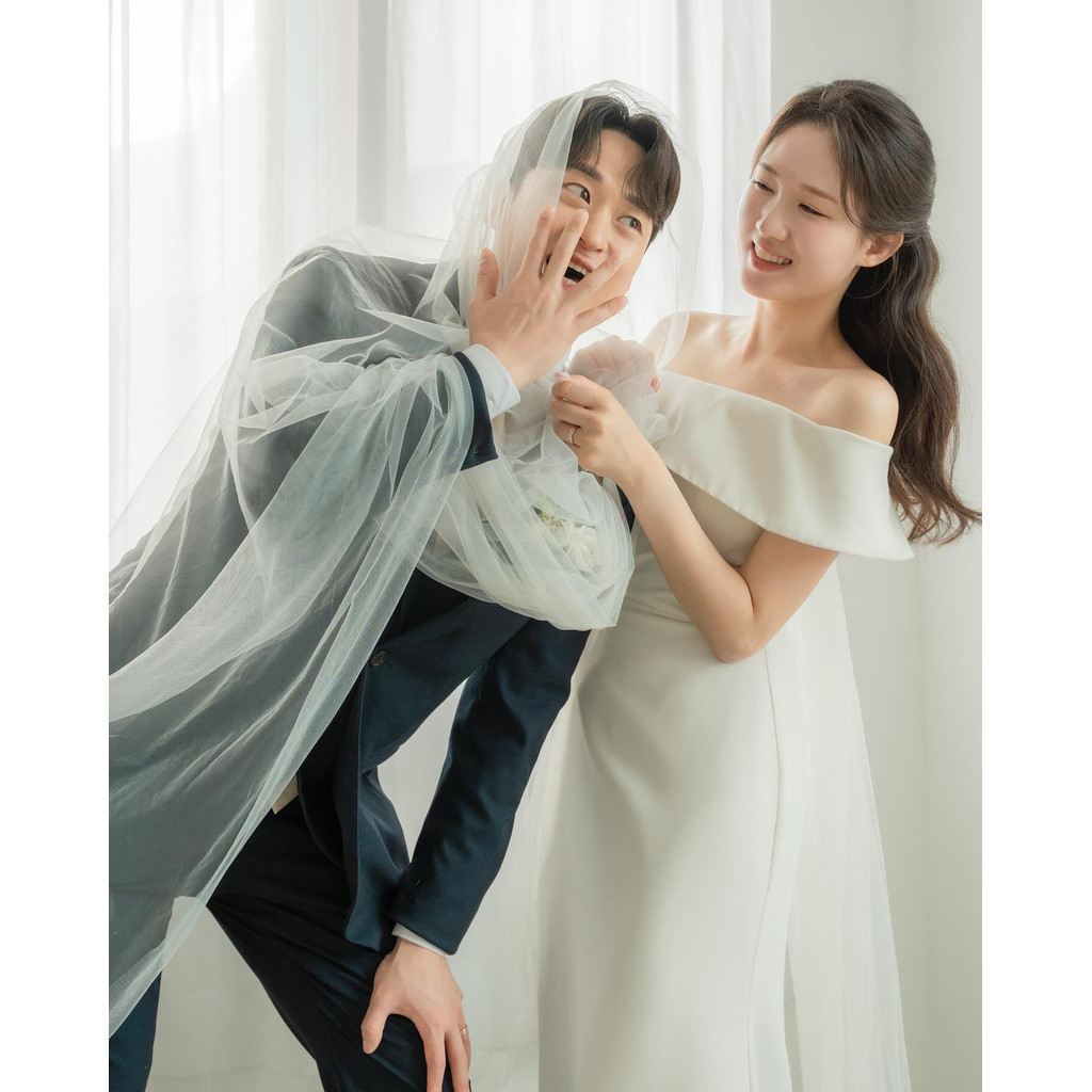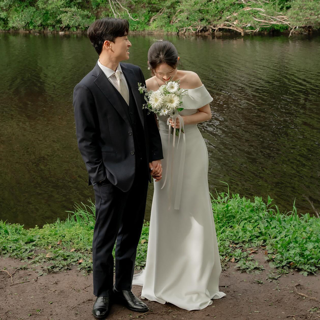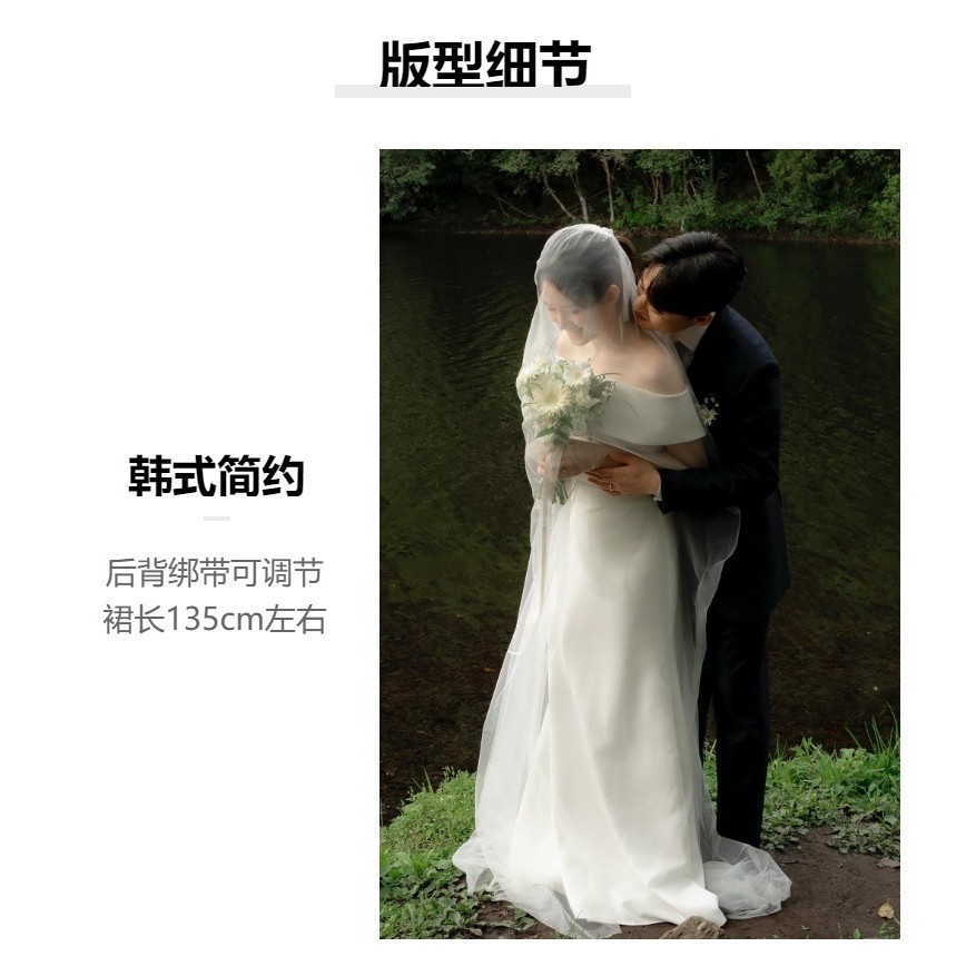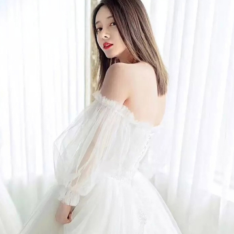 ชุดแต่งงานแสงเกาหลี หางปลา ที่เรียบง่ายไหล่เดียวแขนบัวหมั้นใบรับรองชุดค็อกเทล เอฟซี187
