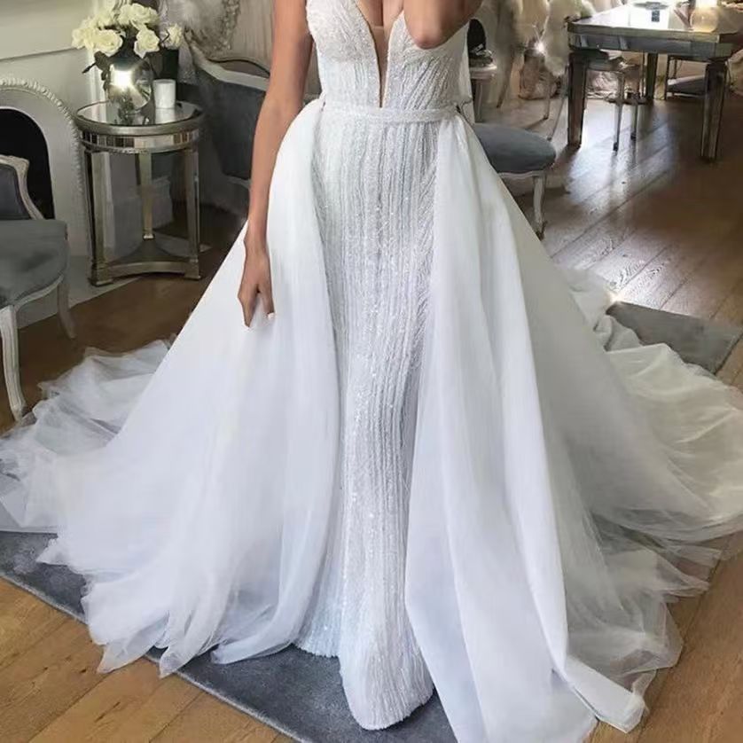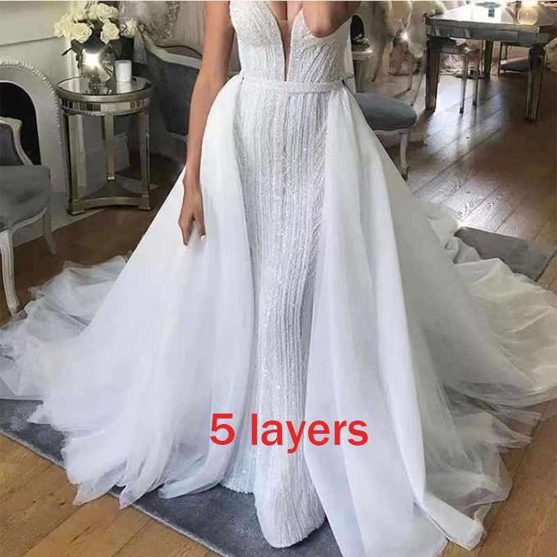 สง่างามสีขาวสีดําเจ้าสาวแต่งงานกระโปรงทับรถไฟยาว5ชั้น ที พวกคุณ กระโปรงเจ้าสาวรถไฟที่ถอดออกได้ที่ถอดออกได้ที่ถอดออกได้ที่ถอดออกได้
