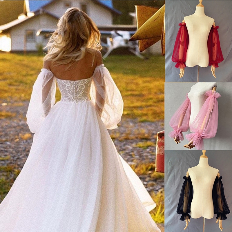 ปลอกแขนพัฟ ถอดออกได้ เป็นมิตรกับผิวหนัง อุปกรณ์เสริม สําหรับชุดแต่งงานเจ้าสาว