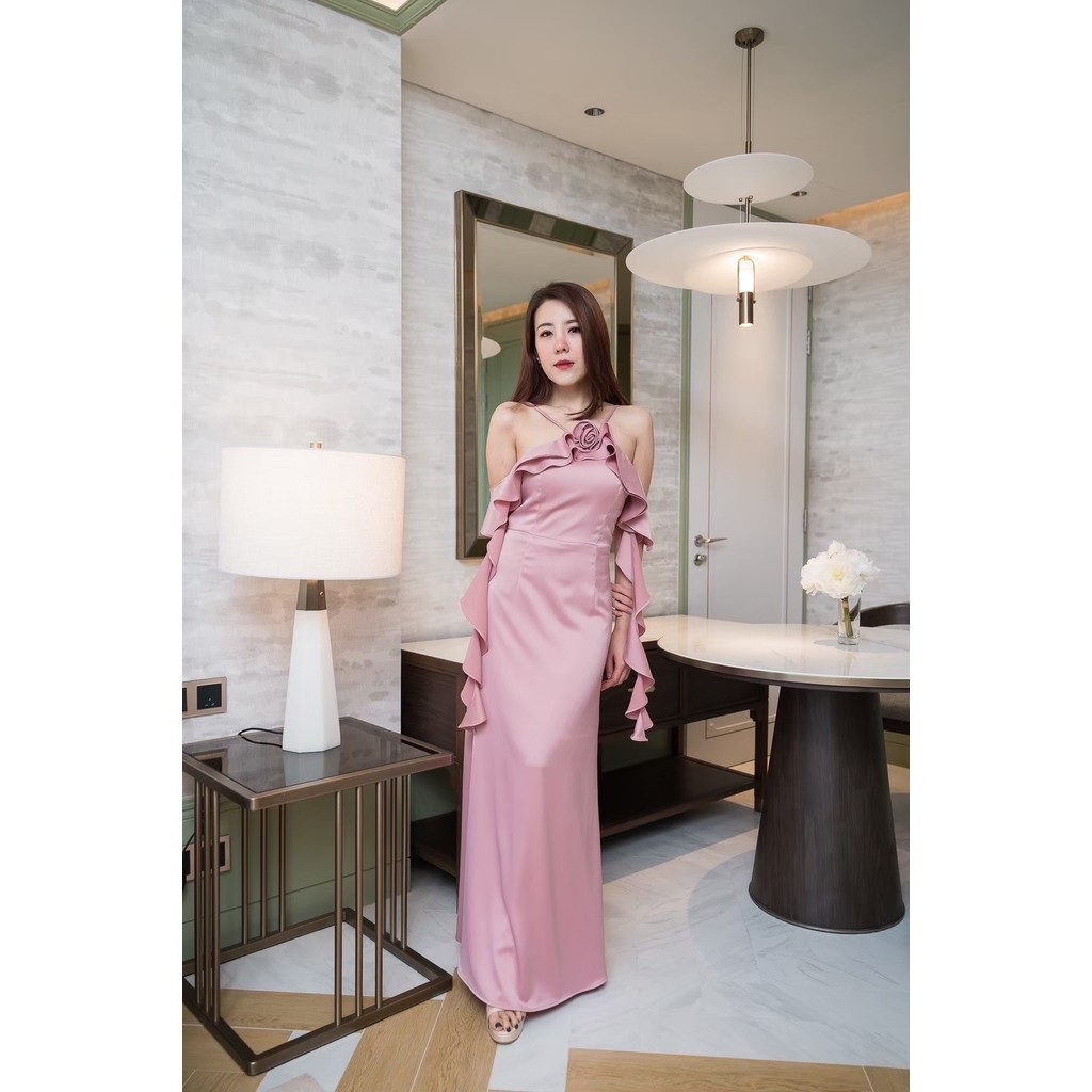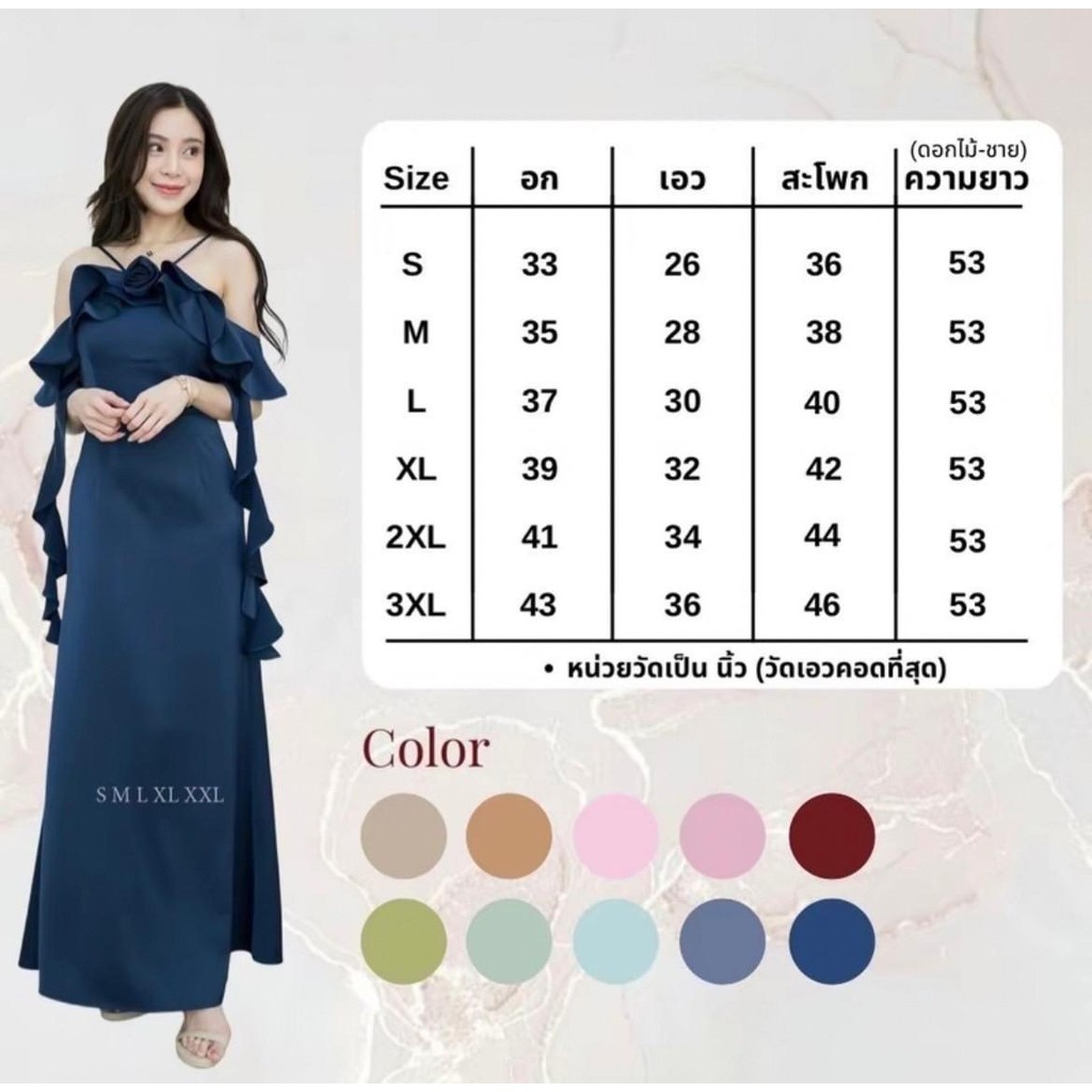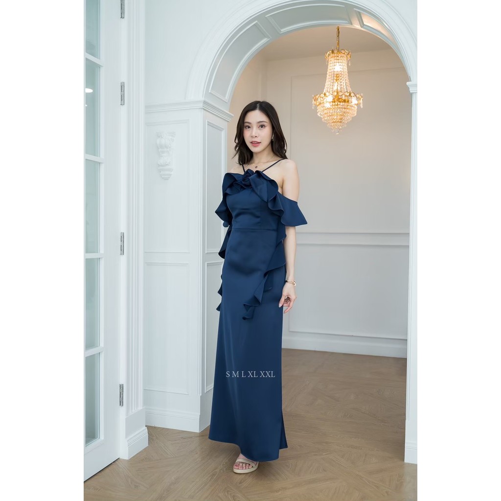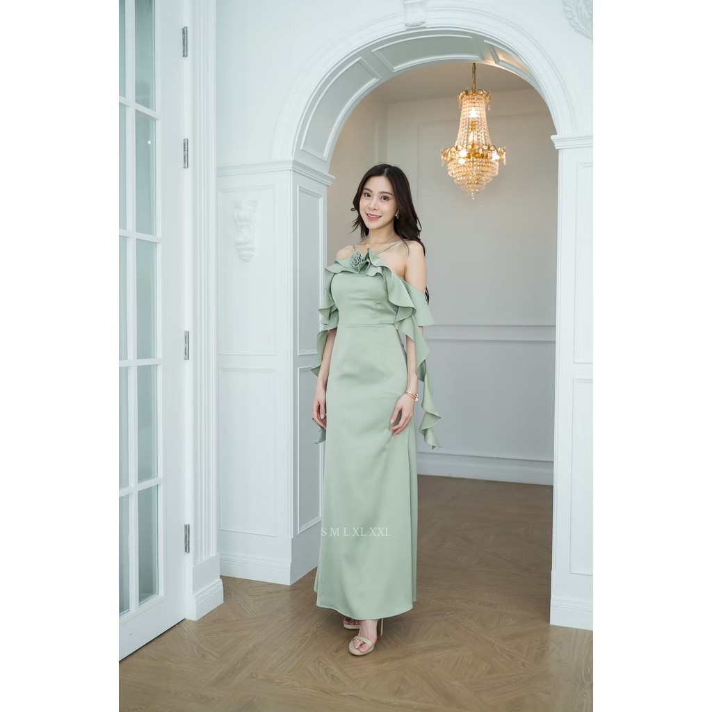 เดรสยาว ชุดราตรียาว เดรสออกงาน FIORA ผ้าเครป ซาติน สายเดี่ยว มีดอกไม้ สายเกลียว ผู้หญิง Woman Dress