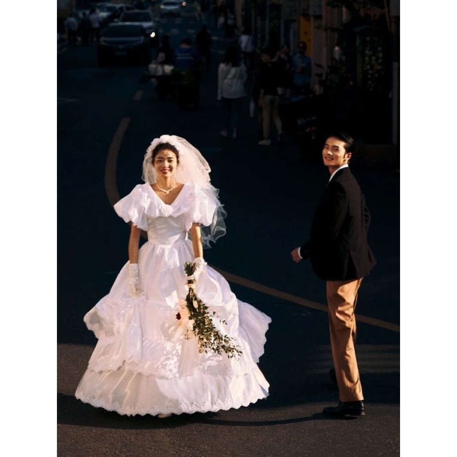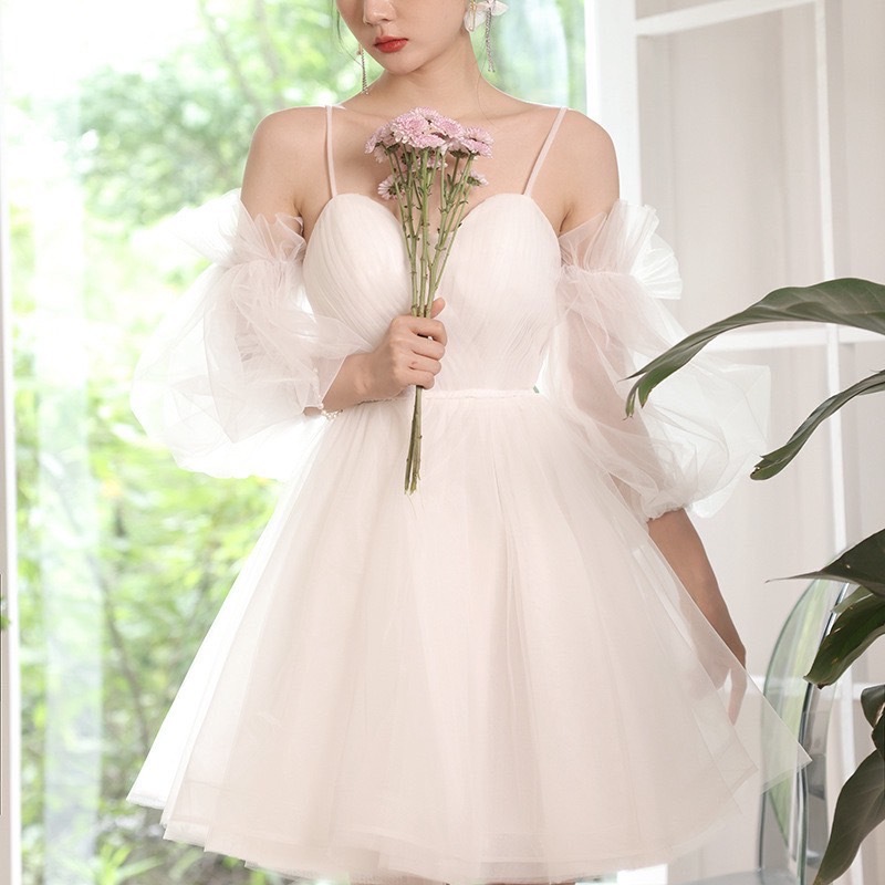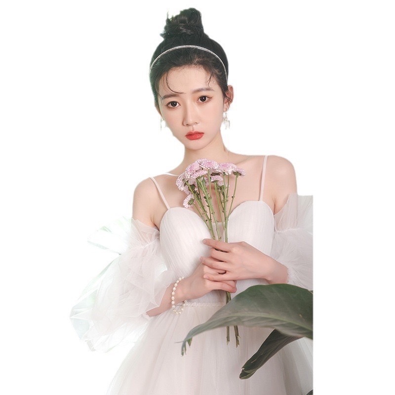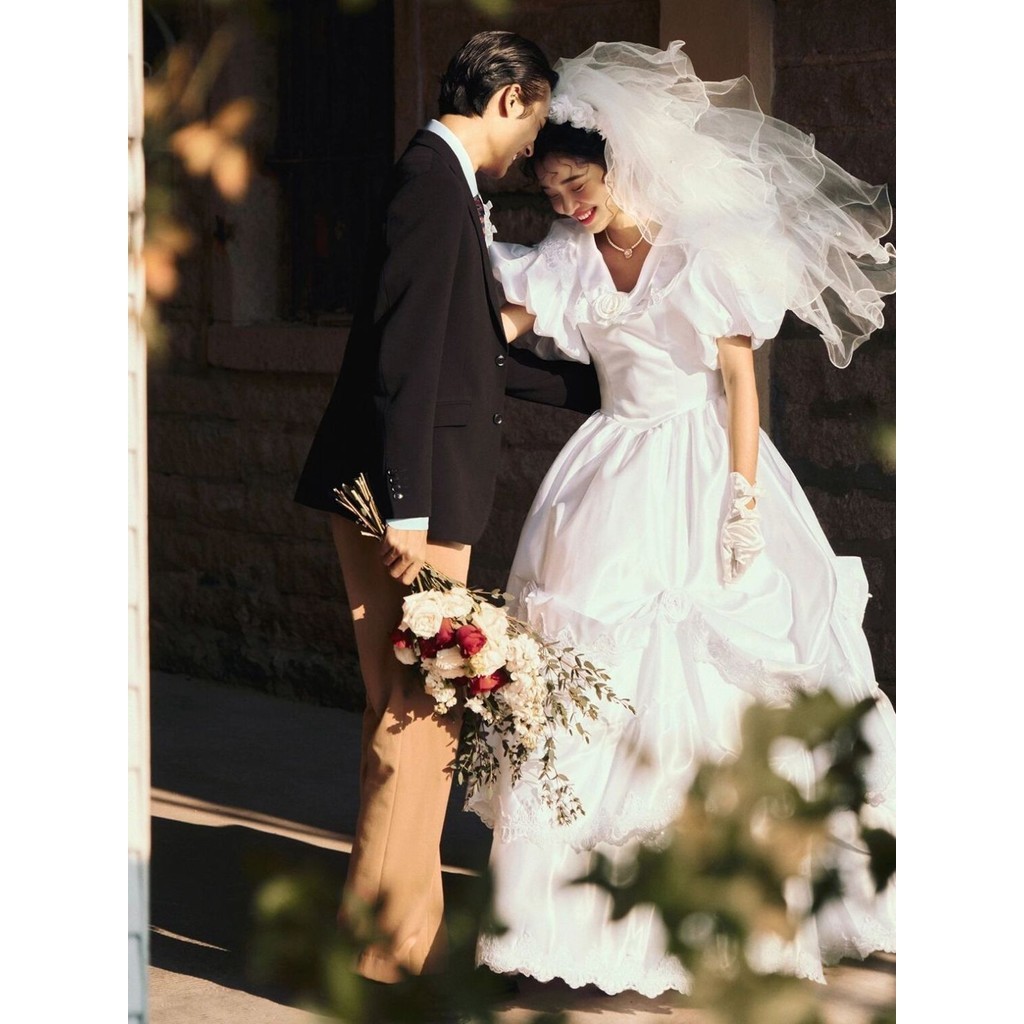ชุดเดรสแต่งงาน สีขาว สไตล์ฝรั่งเศสเรโทร สําหรับถ่ายภาพ งานพรอม งานพรอม