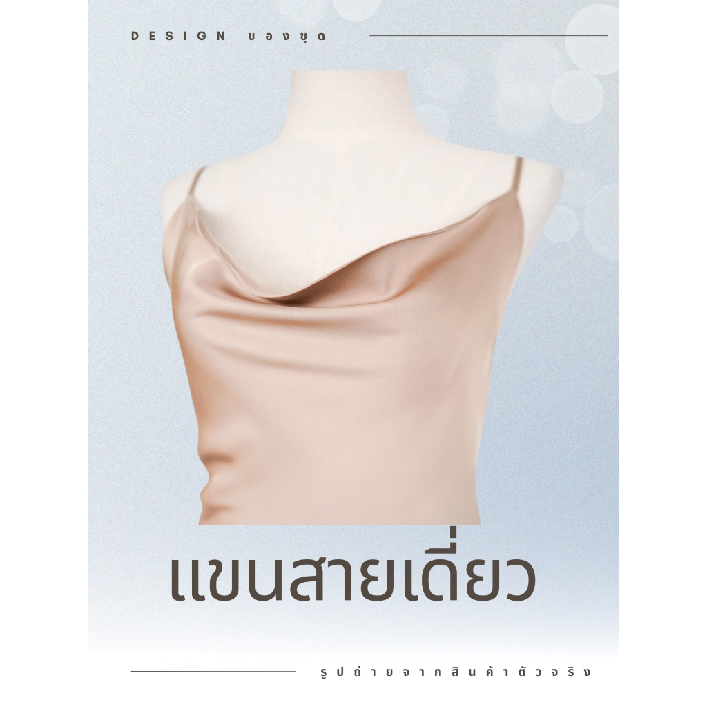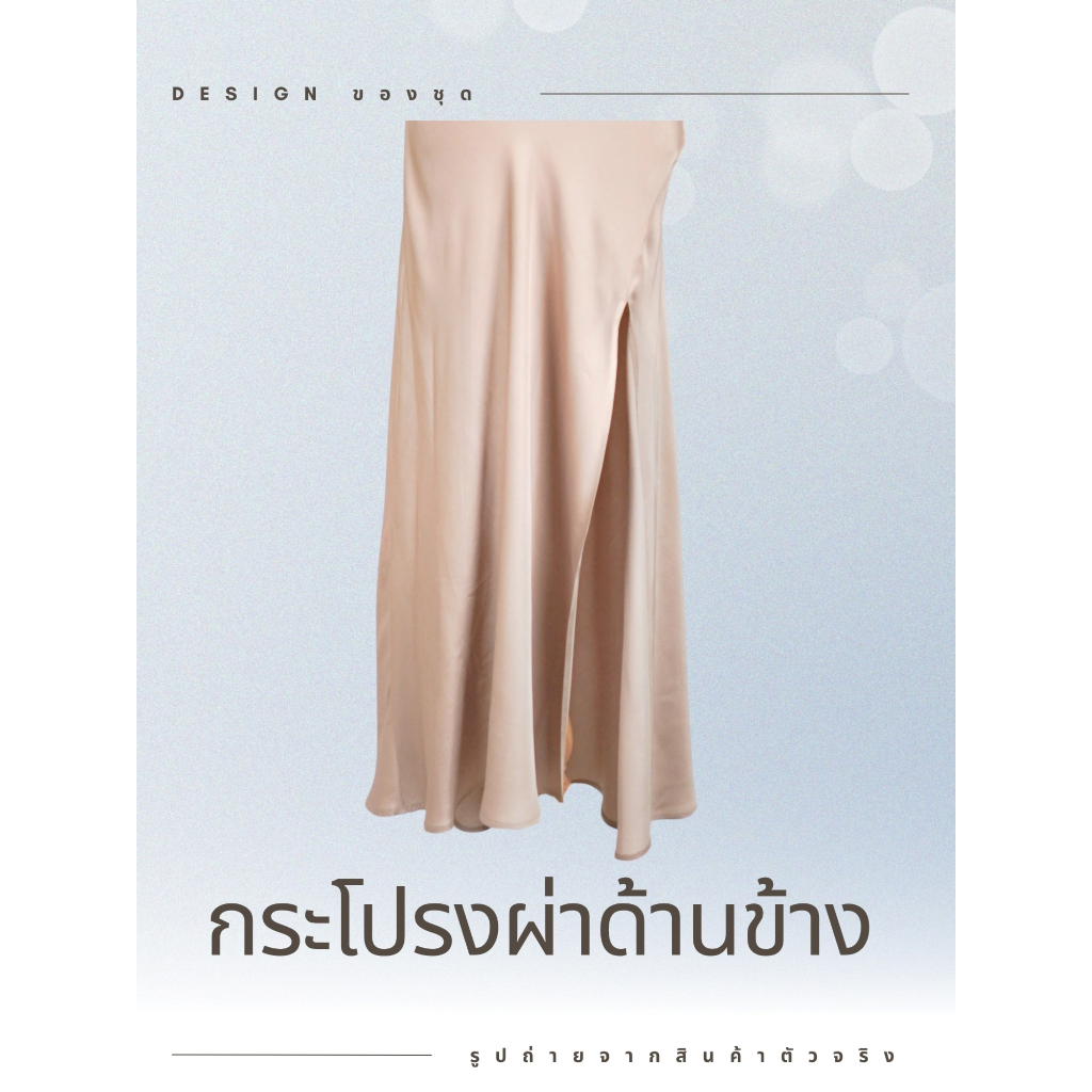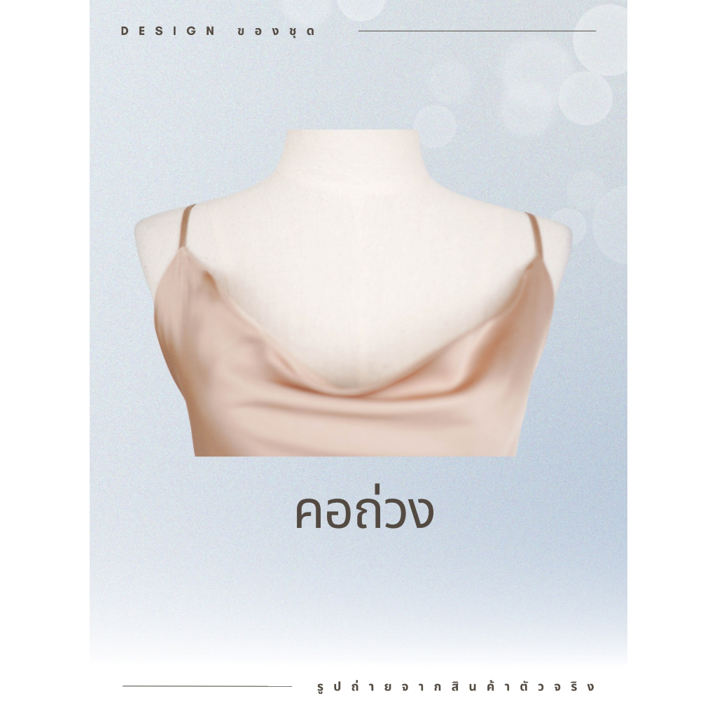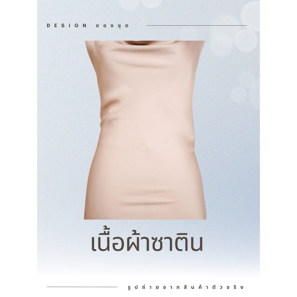 ชุดราตรี สีกากี สายเดี่ยว ผ้าซาติน ความยาวชุด 57