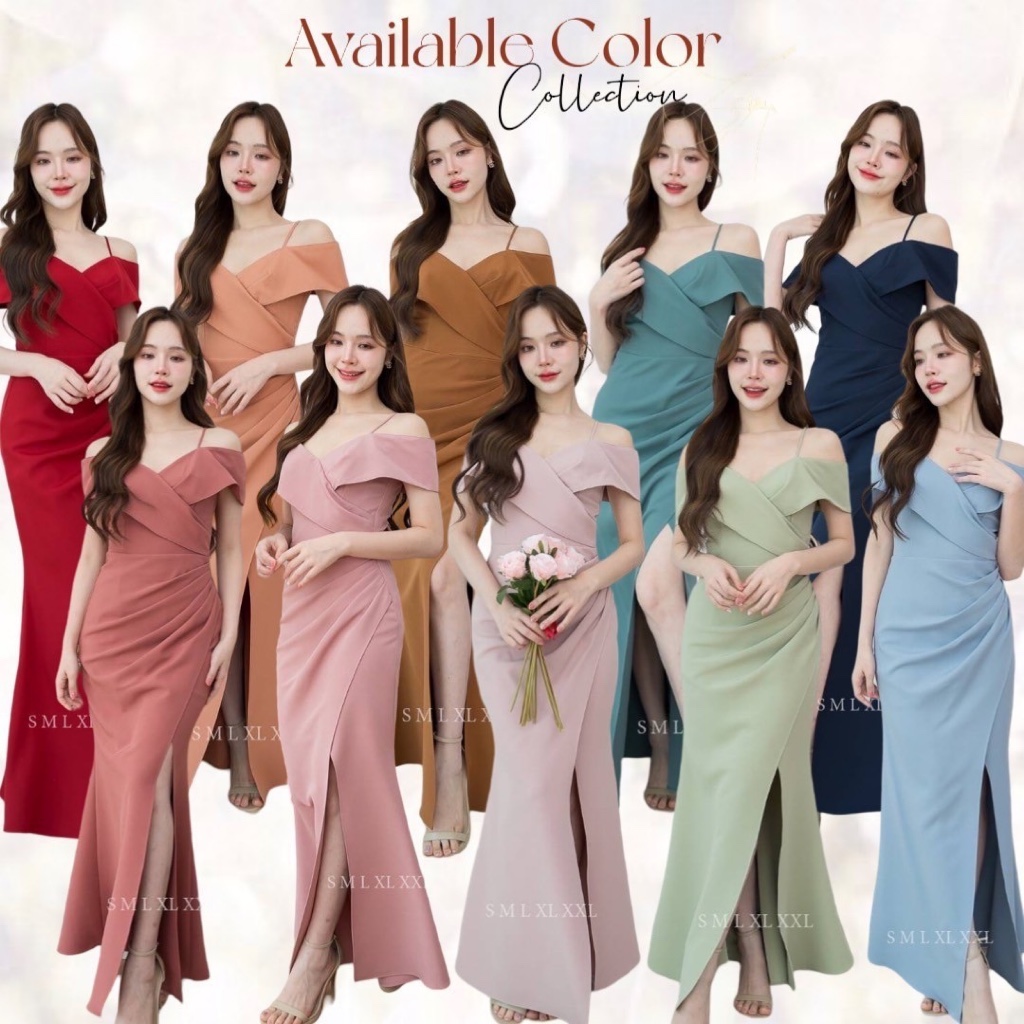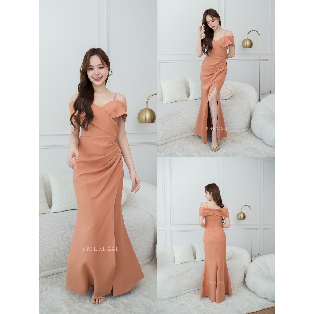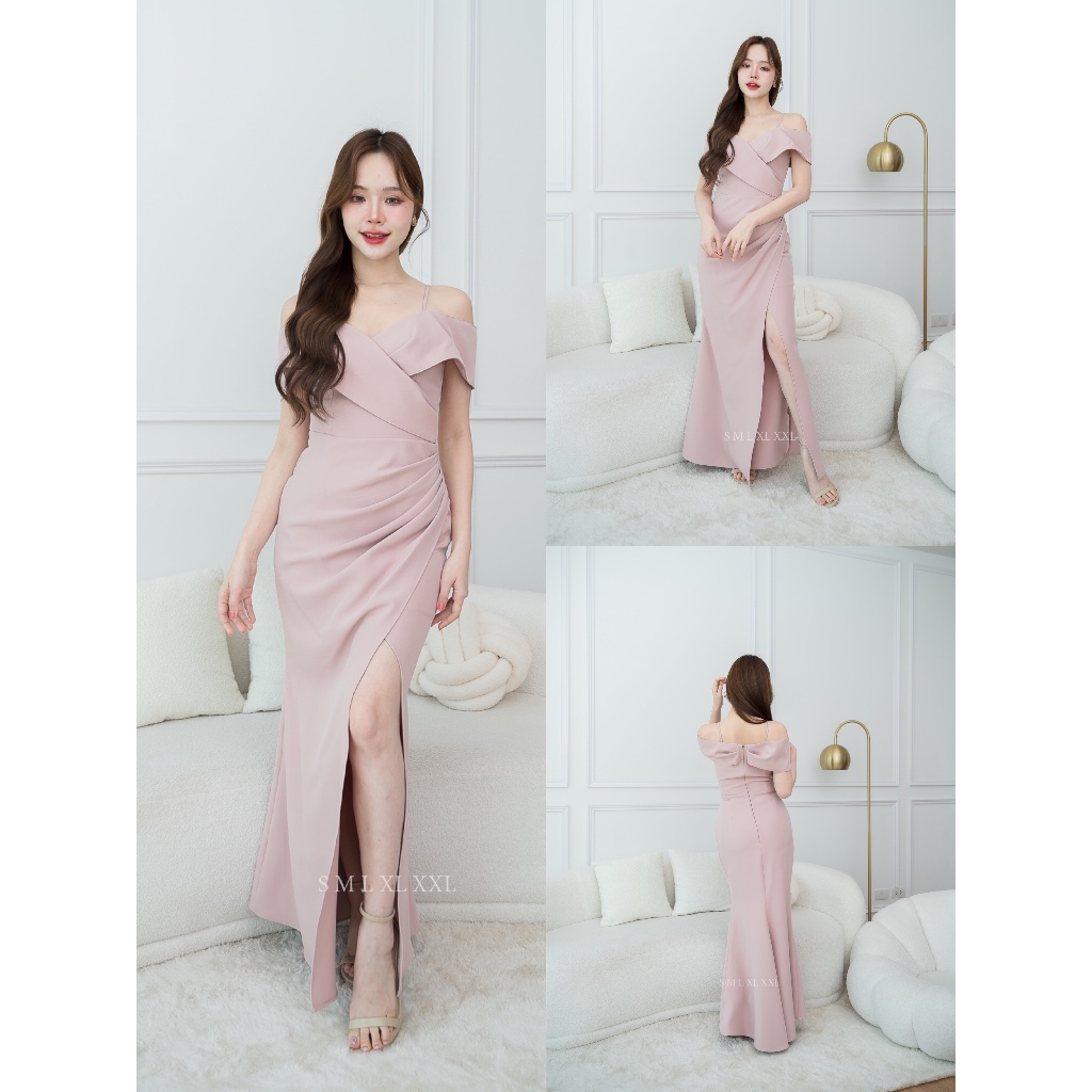 ชุดออกงาน ชุดเพื่อนเจ้าสาว koolykool สายเดี่ยวปาดไหล่อ้อมแขนกระโปรงจีบยาวTA00