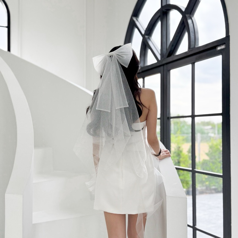 พร้อมส่งXS-3XLเป็น3ชิ้น{เดรสสีขาว+โบว์ขาว+เวลล์เจ้าสาว}สั่งทำตามไซส์ได้ใช้เวลา1-2วัน