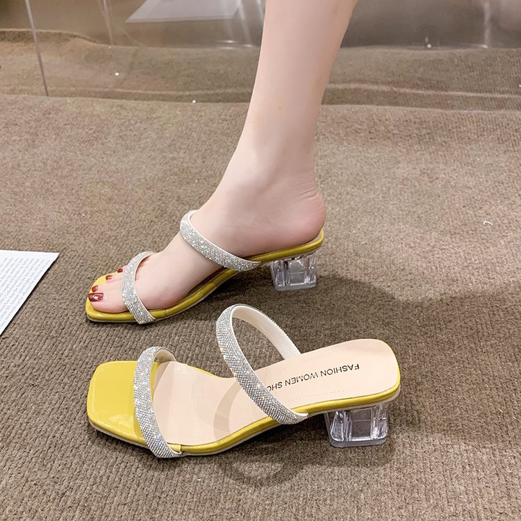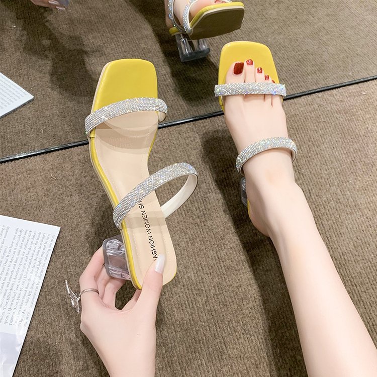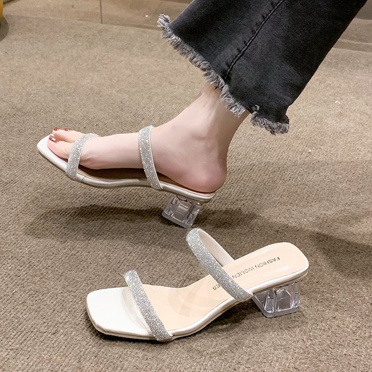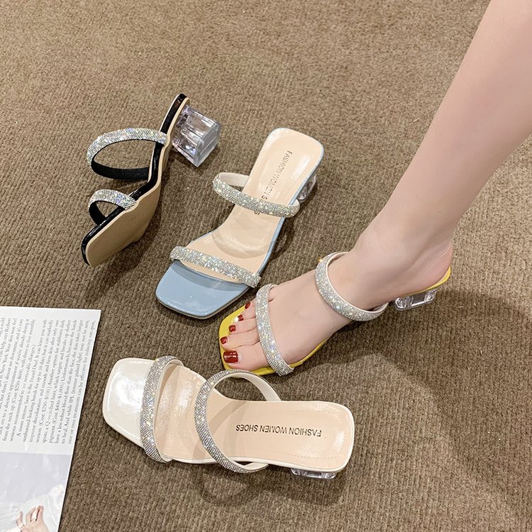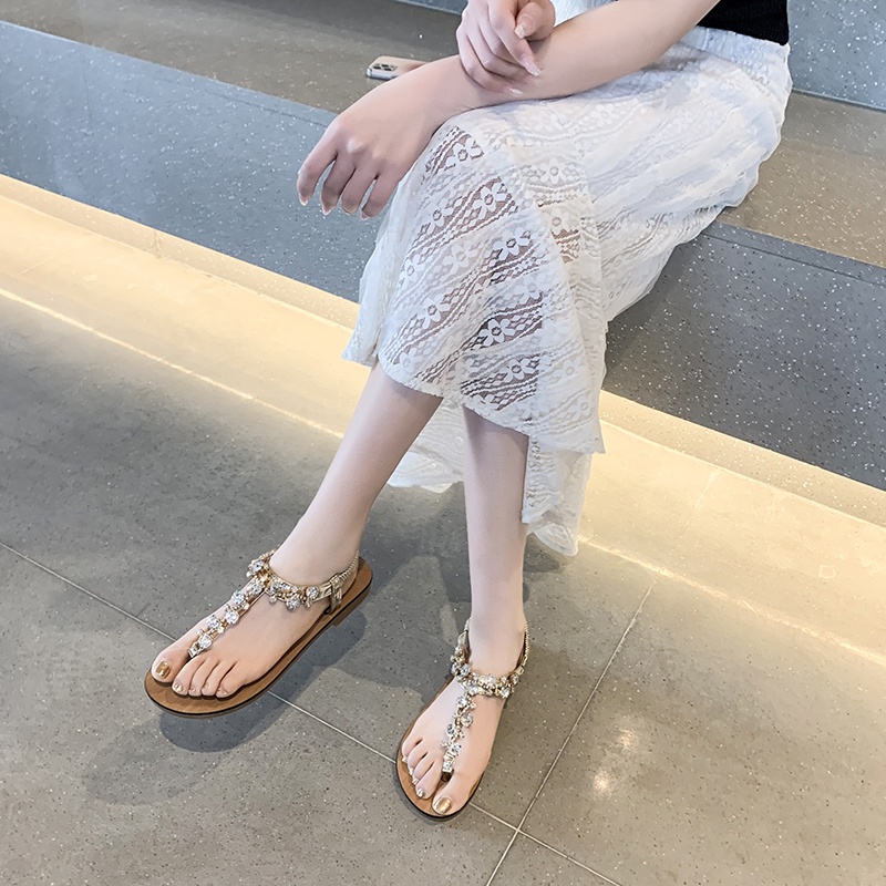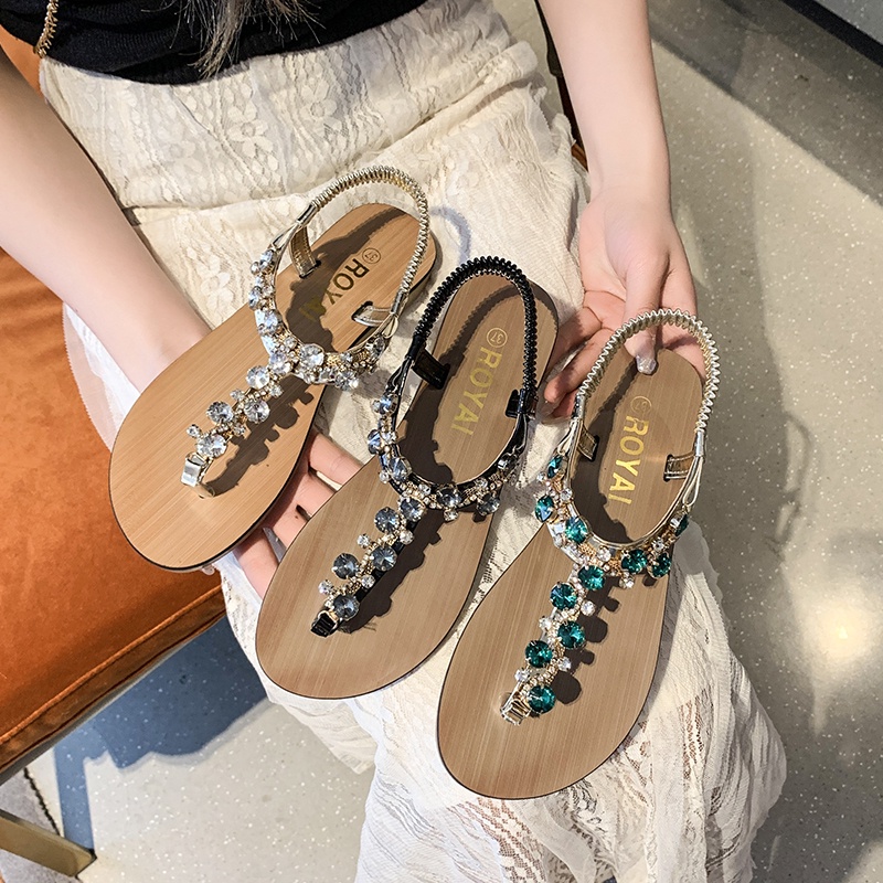 รองเท้าแตะ เปิดนิ้วเท้า ประดับคริสตัล พลอยเทียม สไตล์โรมัน แฟชั่นสําหรับผู้หญิง