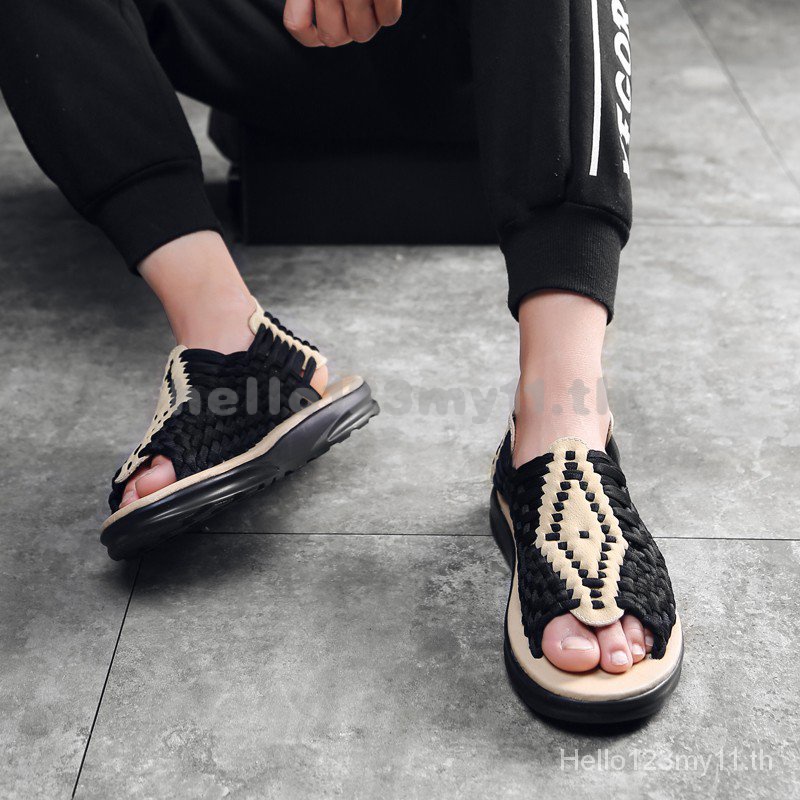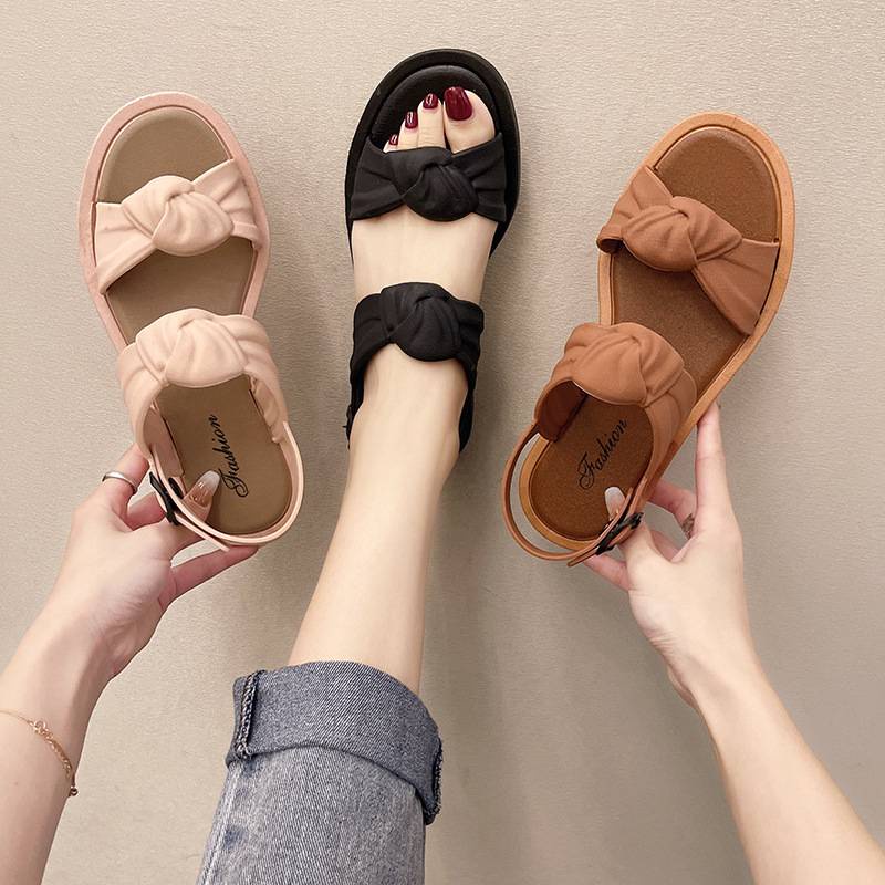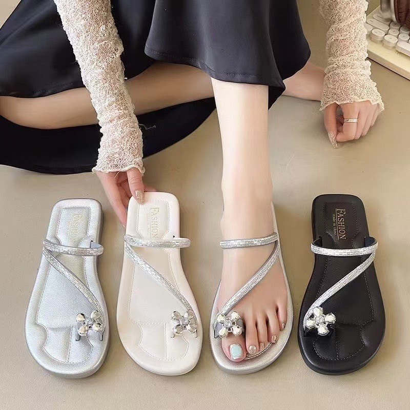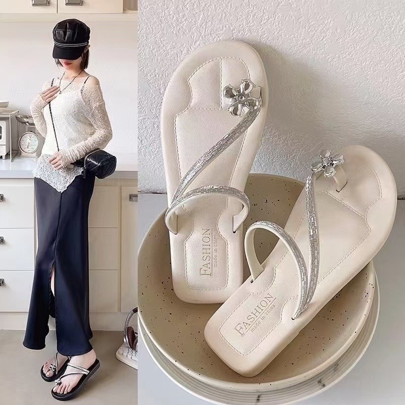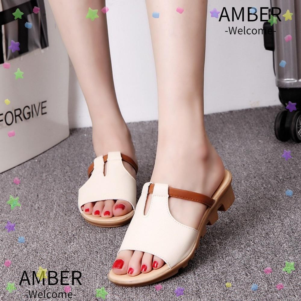 รองเท้าแตะชายหาด อําพัน รองเท้าแตะส้นเตี้ยหรูหราที่สะดวกสบายรองเท้าแตะกันลื่นเปิดนิ้วเท้า