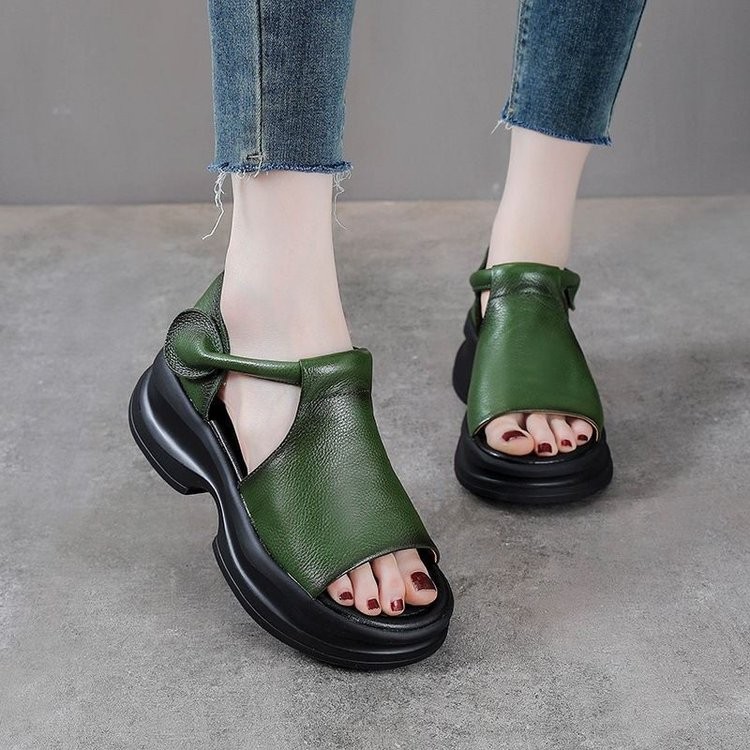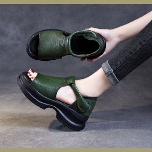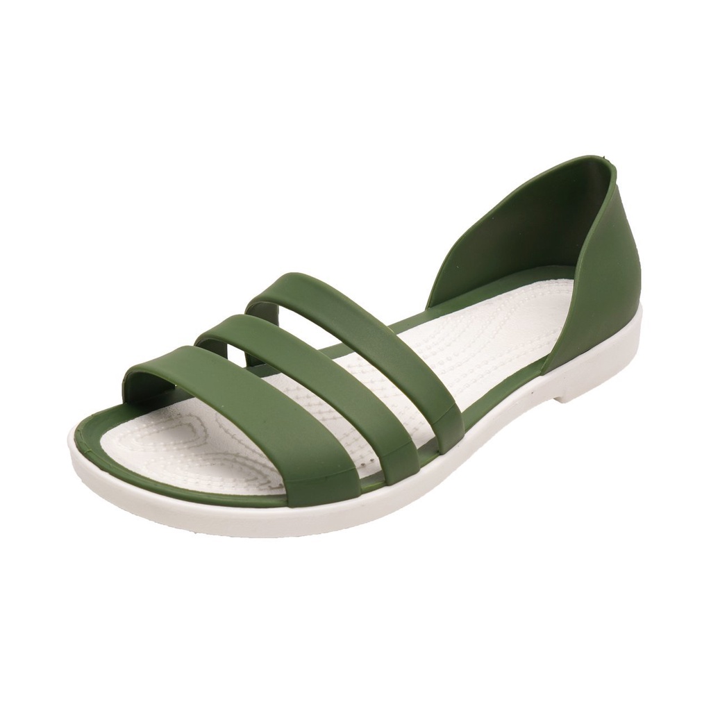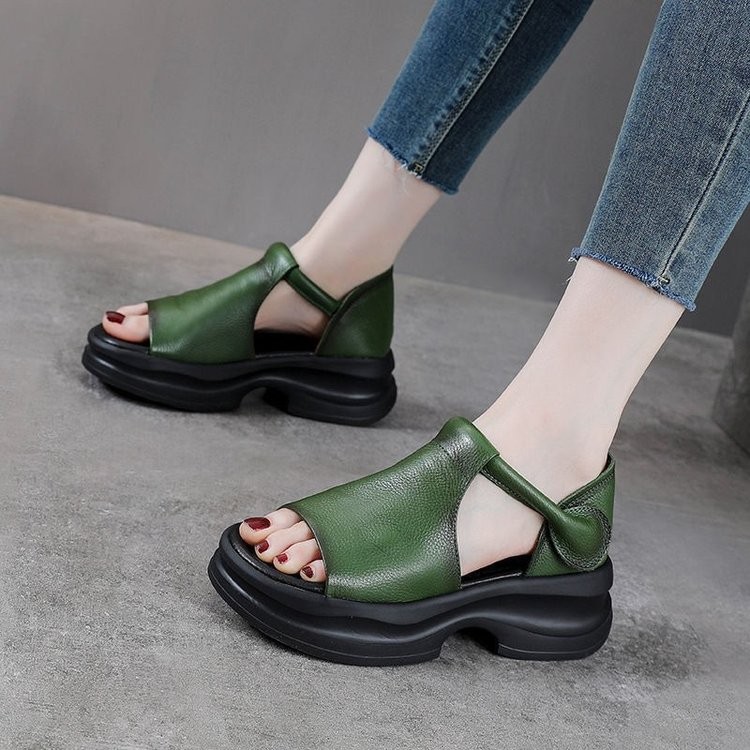 รองเท้าแตะผู้หญิงสไตล์ลําลองสะดุดตากองทัพเรือสีเขียวยืดหยุ่น ตีนตุ๊กแก รองเท้าแตะกีฬาขนาดบวก 36-42