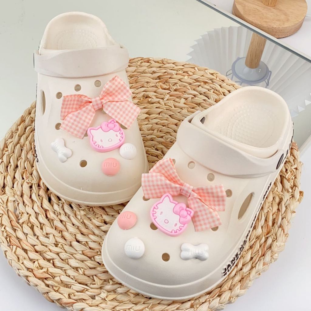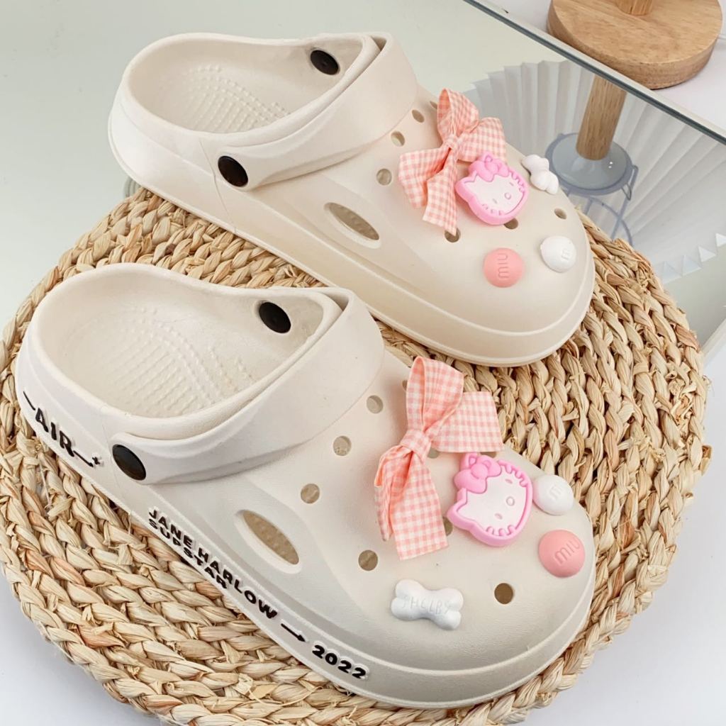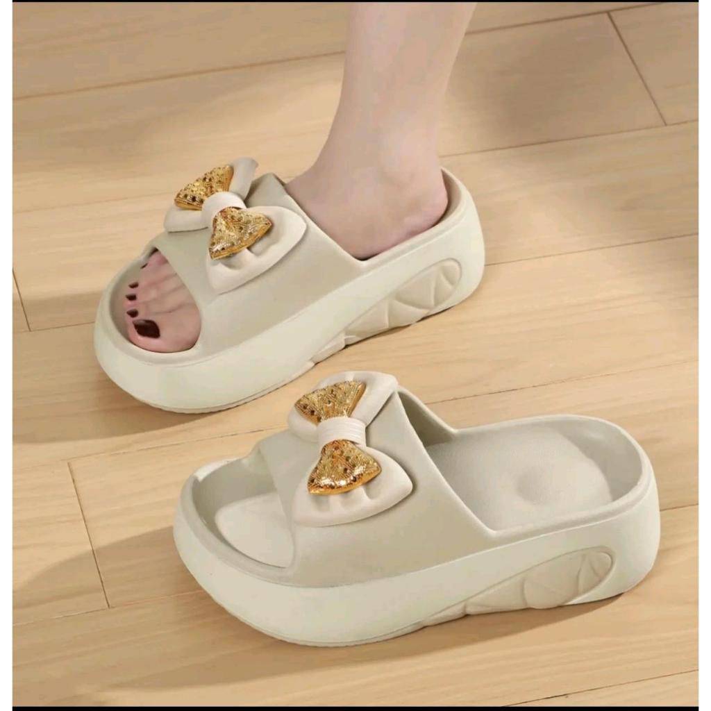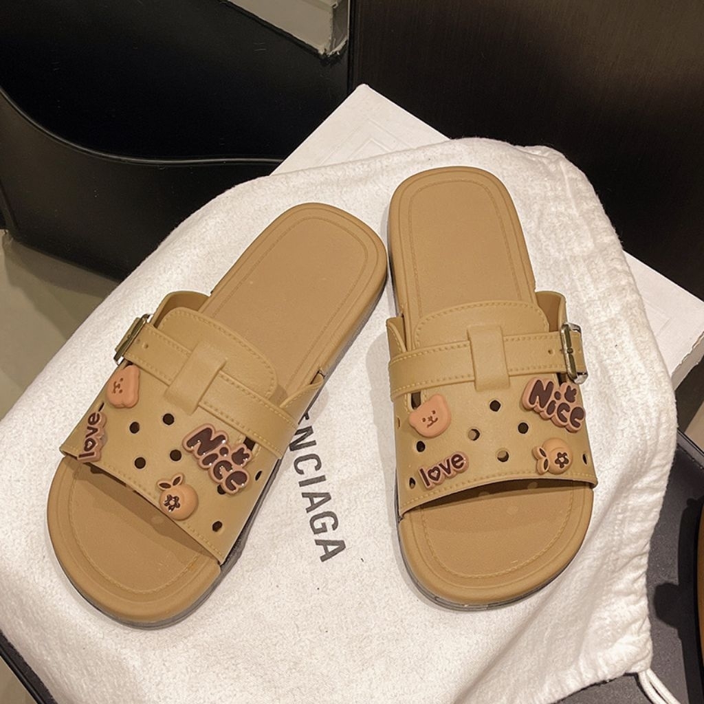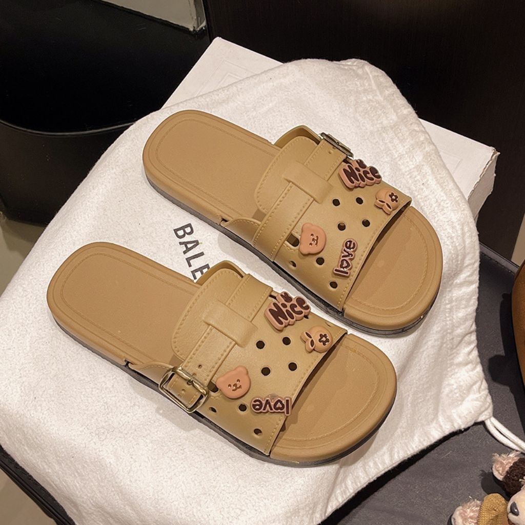 รองเท้าแตะสติกเกอร์รูปหมีน่ารักมาพร้อมเสน่ห์ 2 สี สีน้ําตาลครีม ผลิตจากพลาสติกกันน้ํา