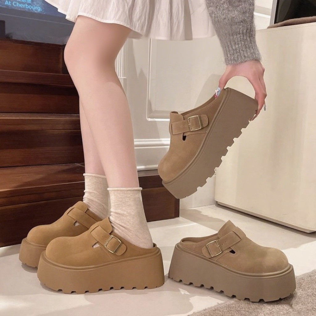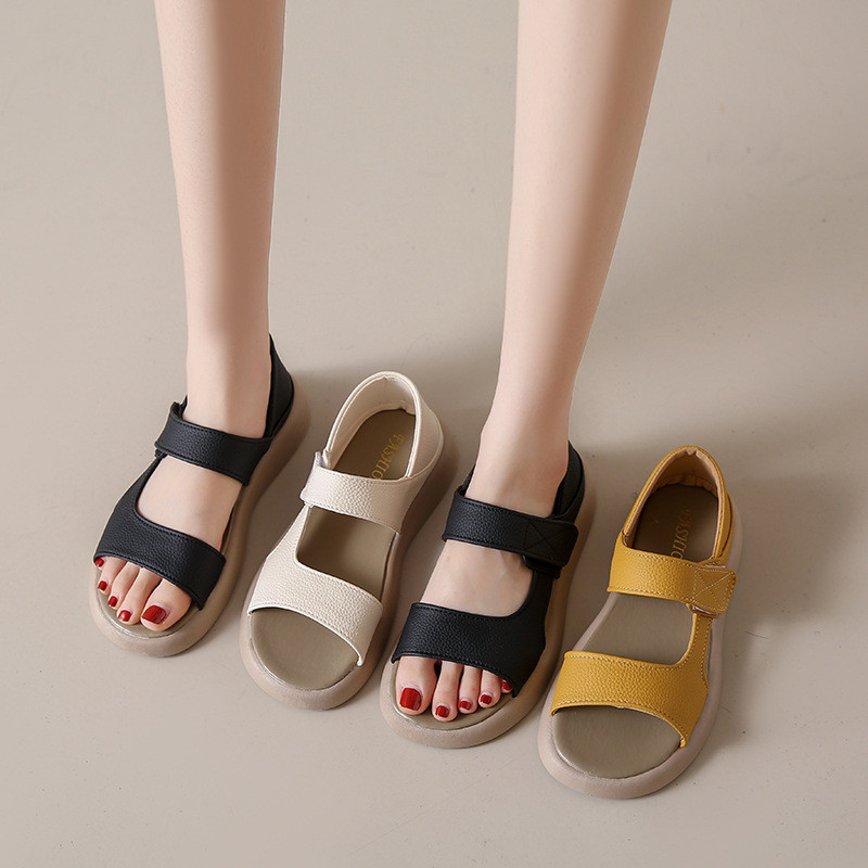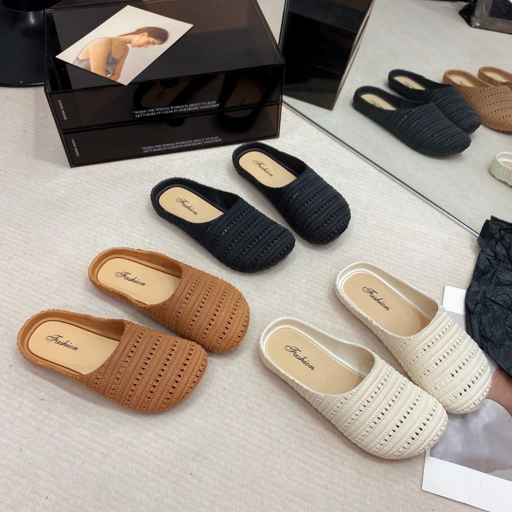 รองเท้าแตะผู้หญิง สไตล์เกาหลี แฟชั่น หัวกลม เปิดนิ้วเท้า รองเท้าแตะวินเทจแบบสบาย ขนาด 35-40