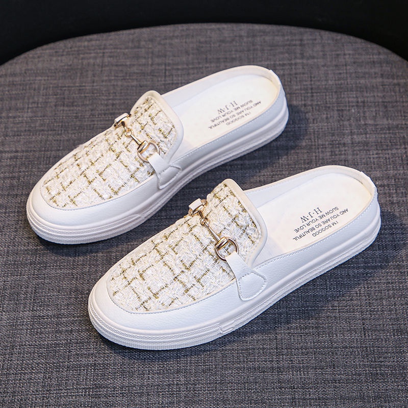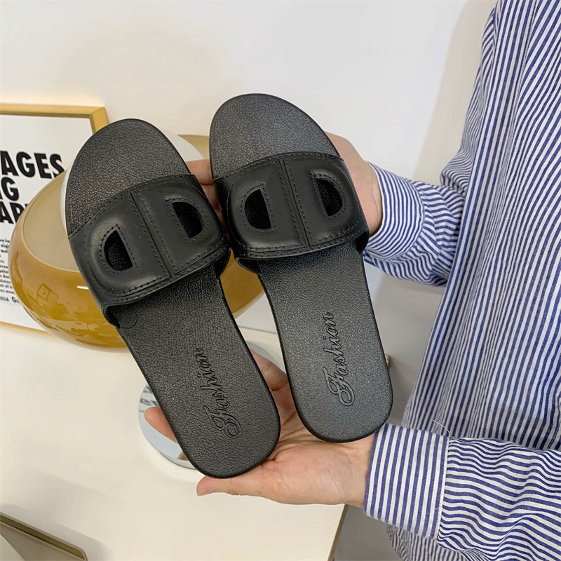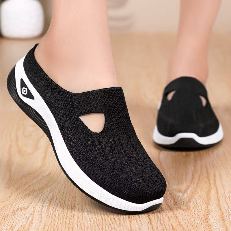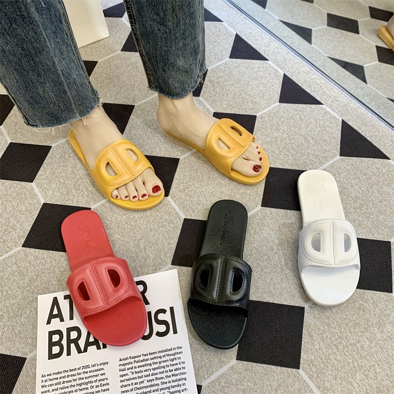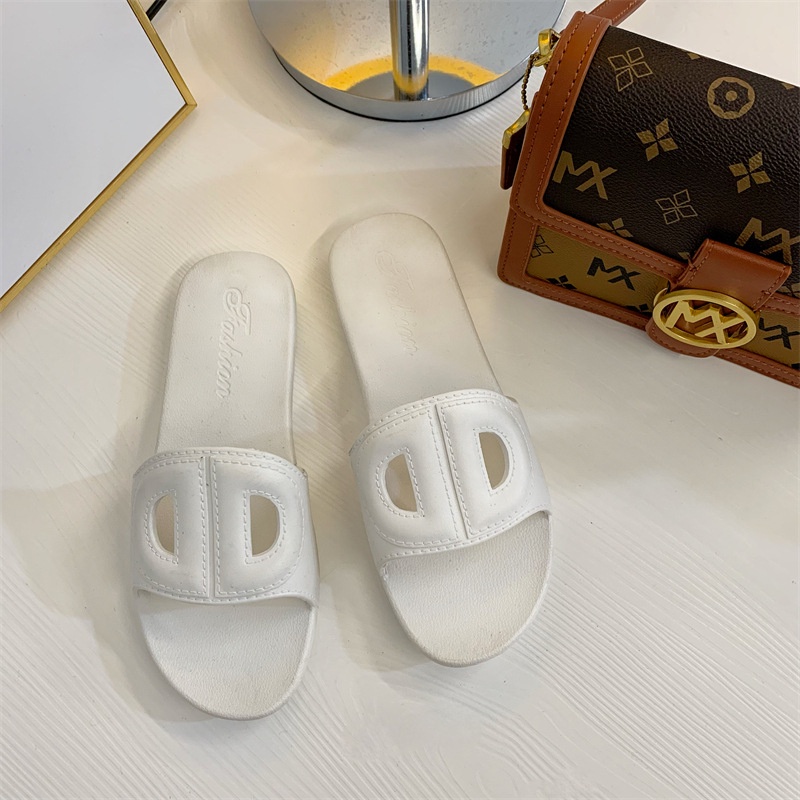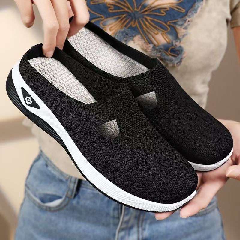 หญิงกลางวัย เกาหลี รองเท้าแตะสีทึบใหม่ Slip On รองเท้าผู้หญิงลําลอง รองเท้าแตะกันลื่นสำหรับใส่กลางแจ้ง