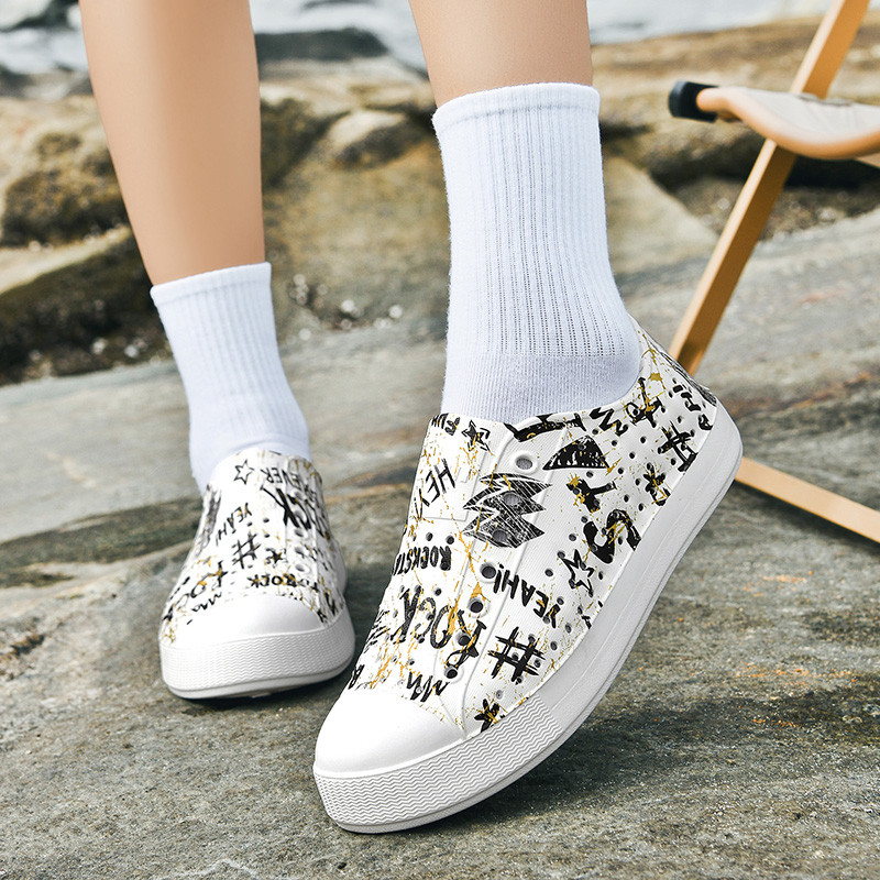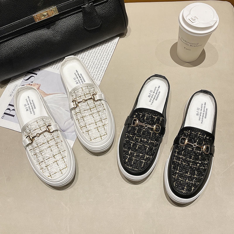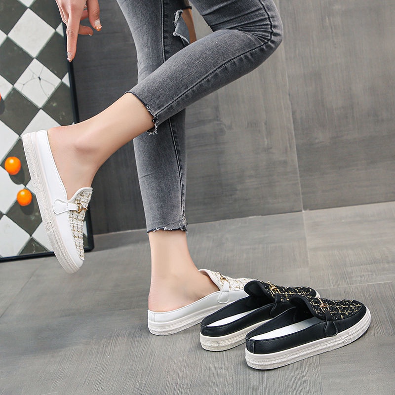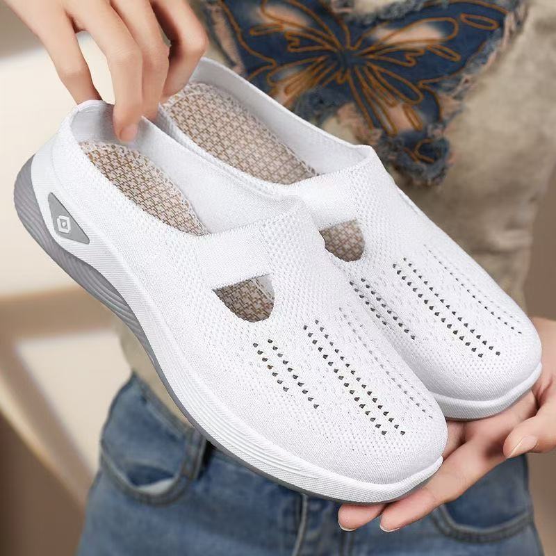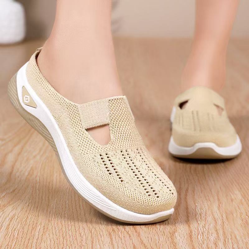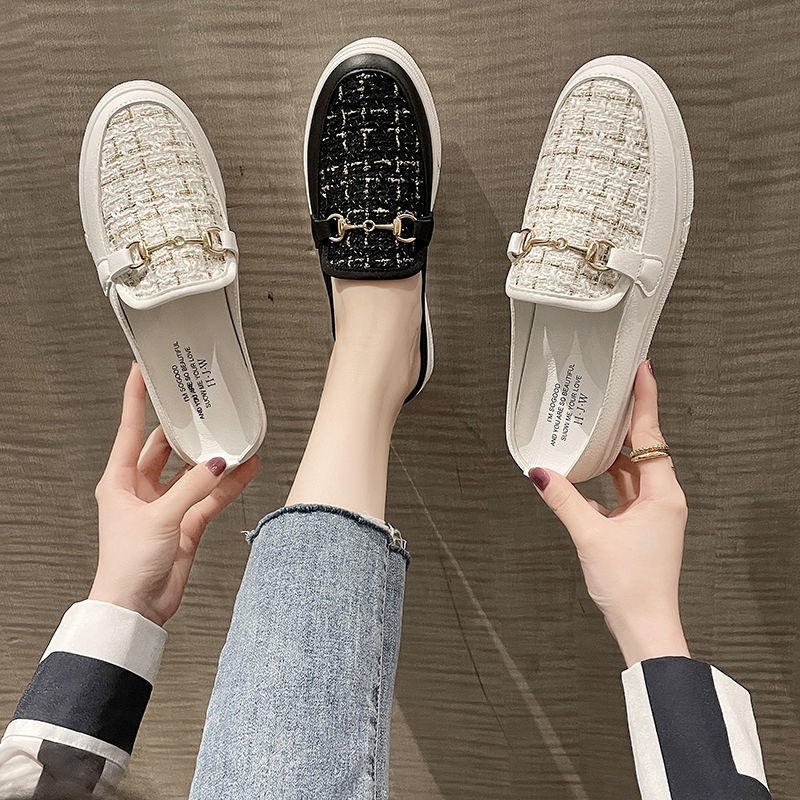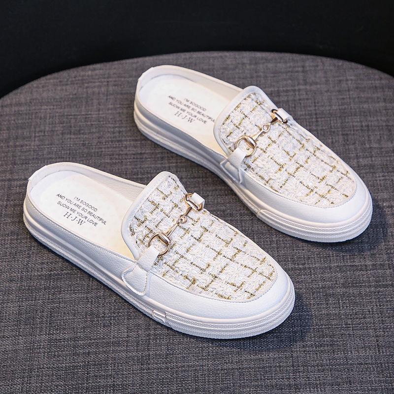 หญิงกลางวัย เกาหลี รองเท้าแตะสีทึบใหม่ Slip On รองเท้าผู้หญิงลําลอง รองเท้าแตะกันลื่นสำหรับใส่กลางแจ้ง