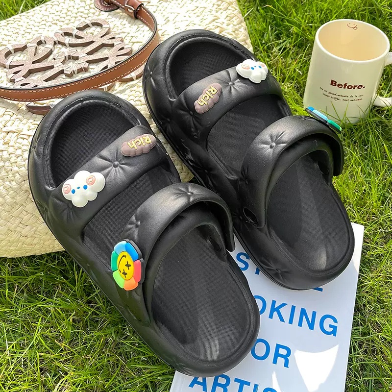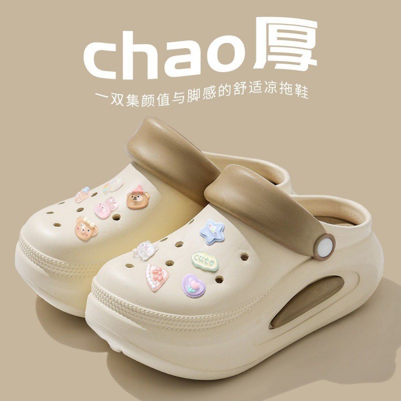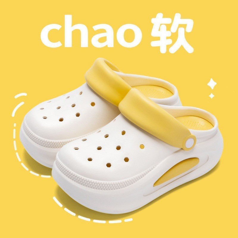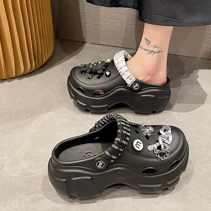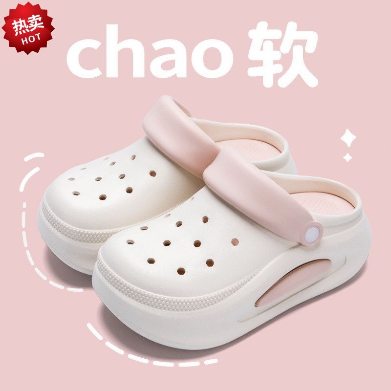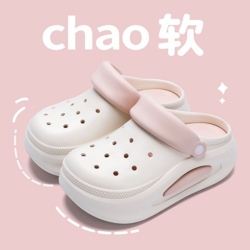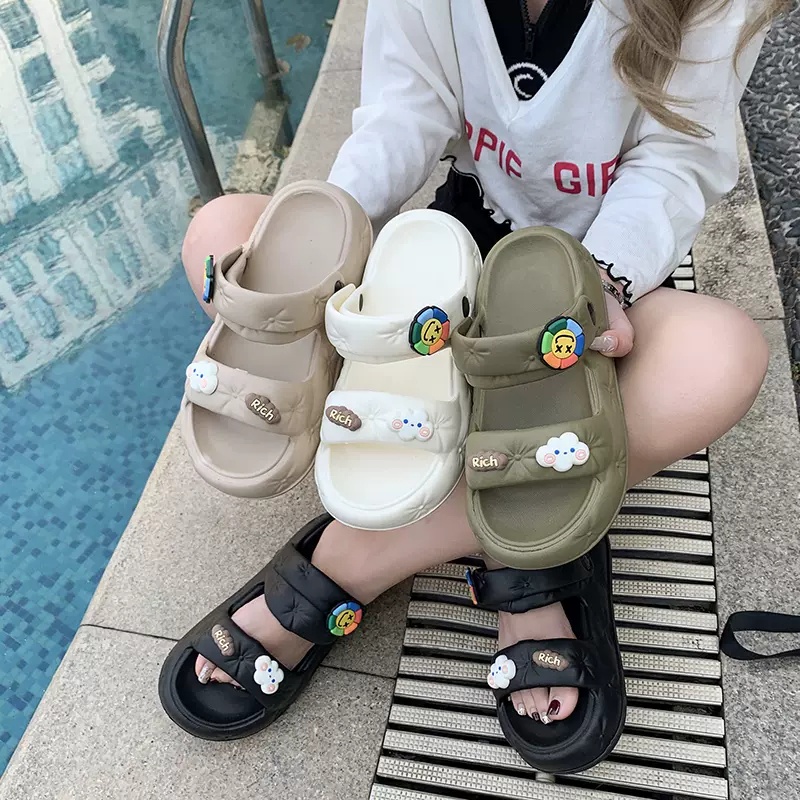 รูรองเท้าผู้หญิงแพลตฟอร์มด้านนอกสวมใส่ 2024 ใหม่ลื่นระงับกลิ่นกายชายหาดแฟชั่นความสูง อีวา กระเป๋าหัวรองเท้าแตะฤดูร้