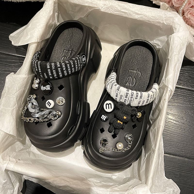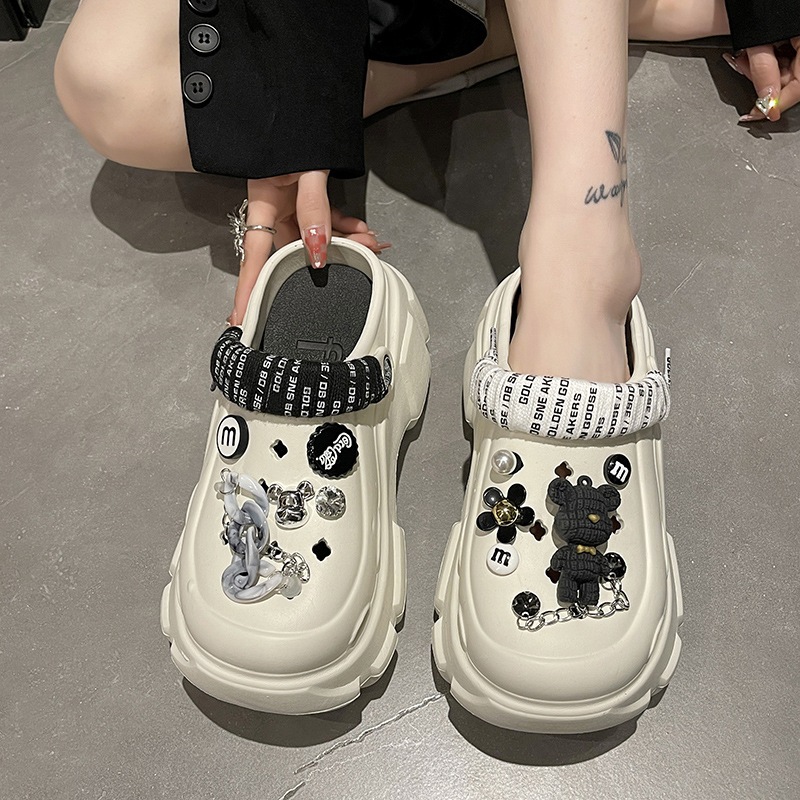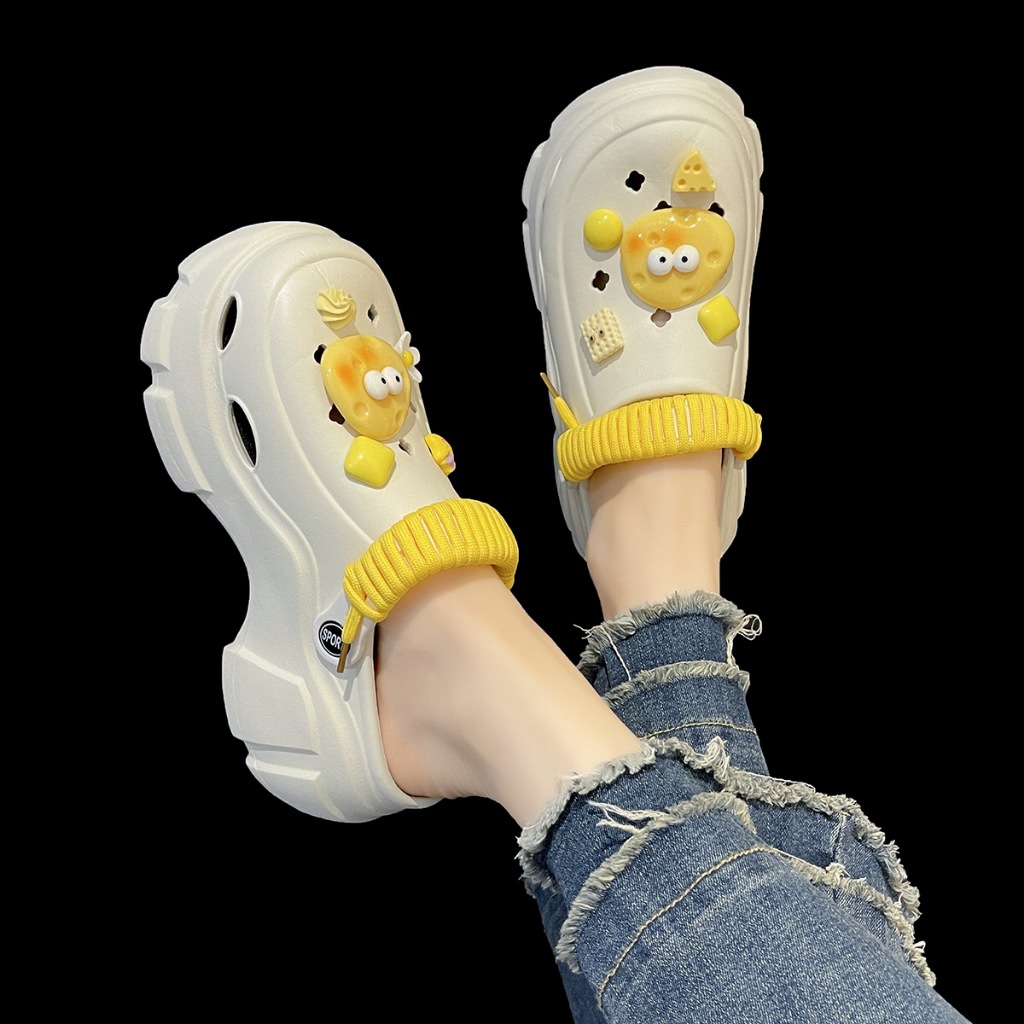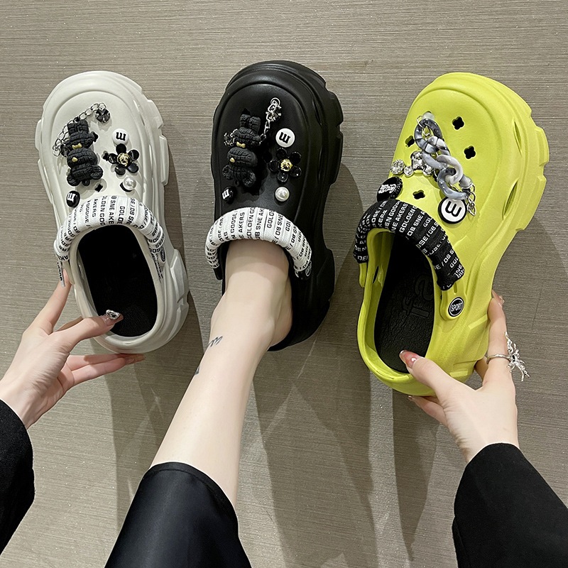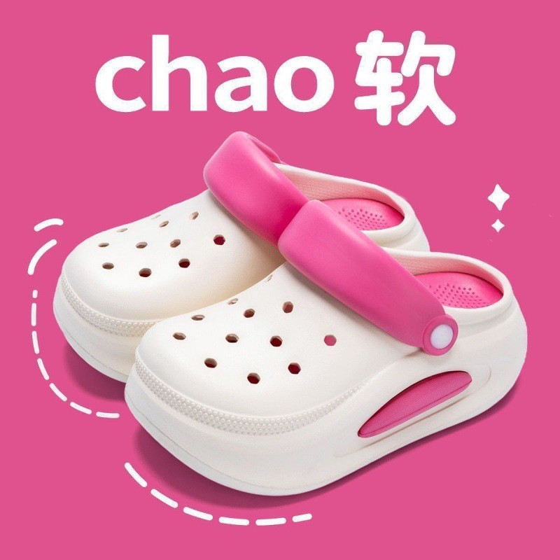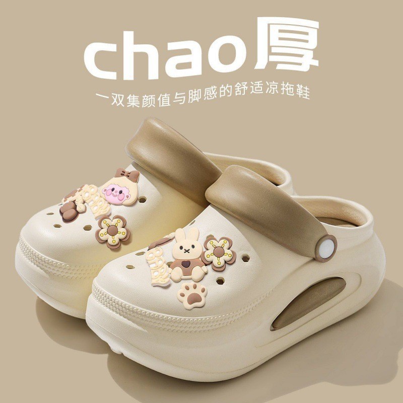 รูรองเท้าผู้หญิงแพลตฟอร์มด้านนอกสวมใส่ 2024 ใหม่ลื่นระงับกลิ่นกายชายหาดแฟชั่นความสูง อีวา กระเป๋าหัวรองเท้าแตะฤดูร้