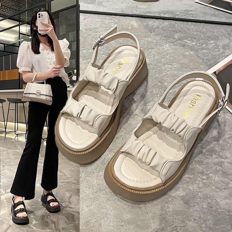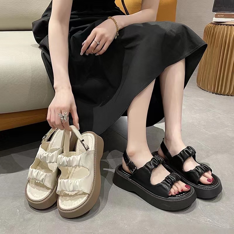 🍇วันเสาร์💜รองเท้าแตะผู้หญิงสุดเก๋ รองเท้าแตะแพลตฟอร์ม เบาสบาย สไตล์ย้อนยุค