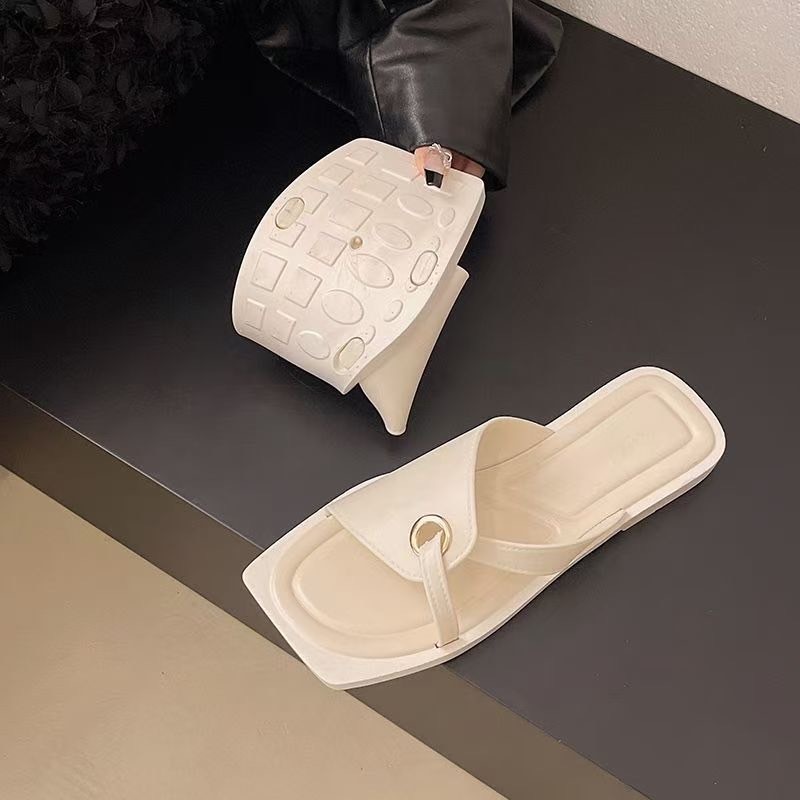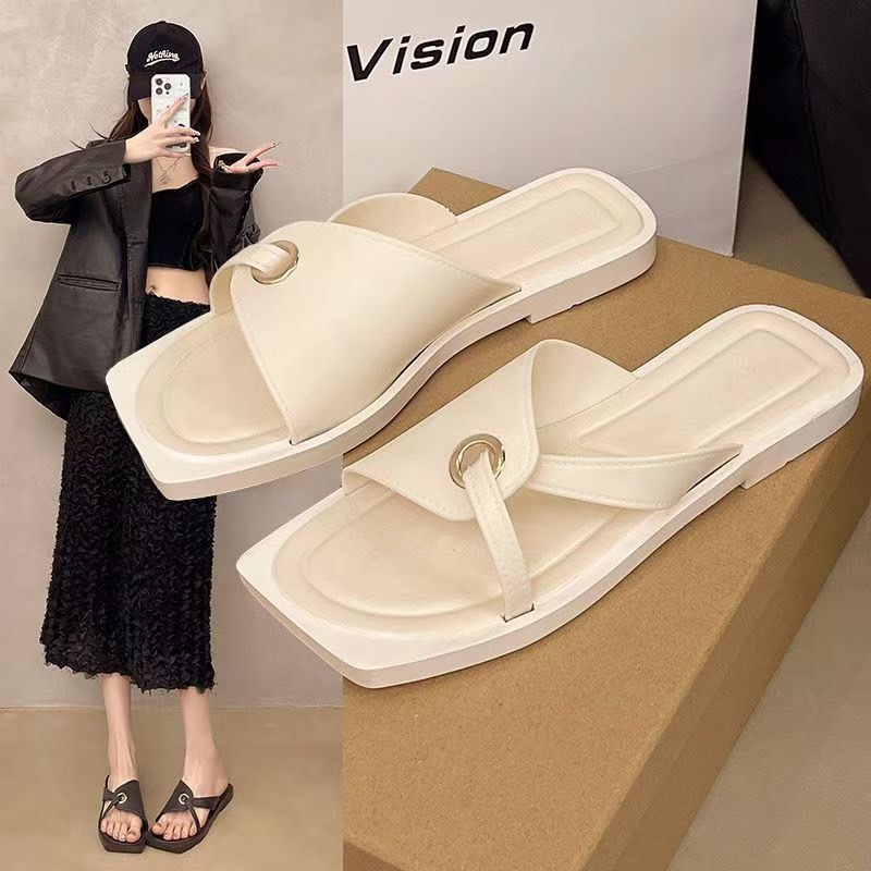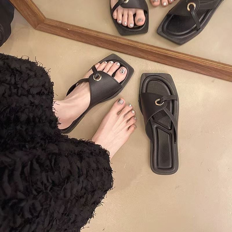 แฟชั ่ นเกาหลีรอบ Toe Y2K สไตล ์ ใหม ่ ชุด Toe สีทึบสบาย Casual All-Match รองเท ้ าแตะแบนรองเท ้ าแตะนักเรียนวันหยุดชายหาดผู ้ หญิงรองเท ้ า Anti-Slip B