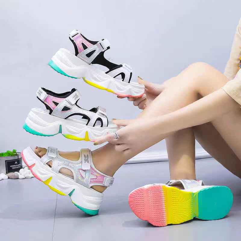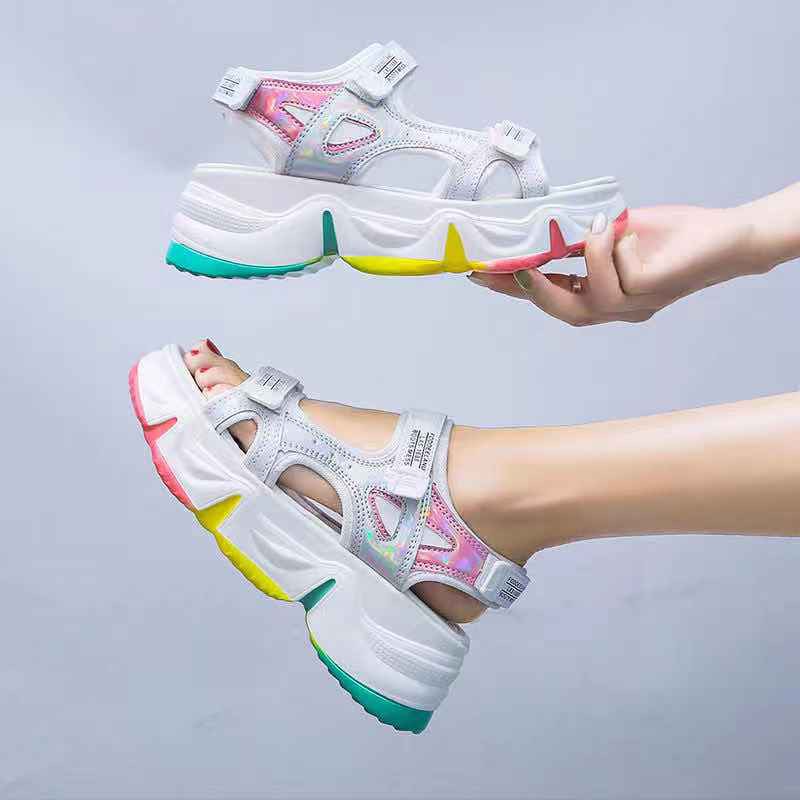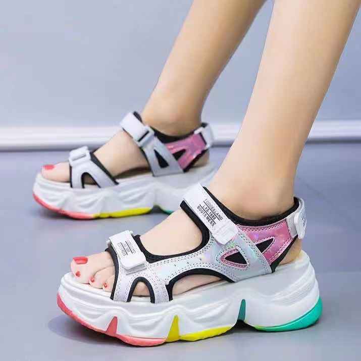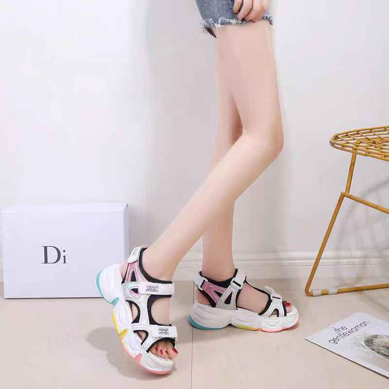 📢พร้อมส่ง📢 รองเท้าแตะผู้หญิง 4 สีให้เลือก ป้องกันแสงแดดที่ระบายอากาศได้ พื้นหนา