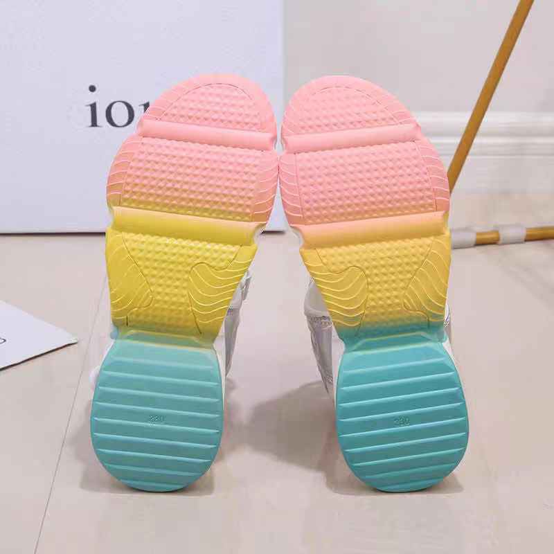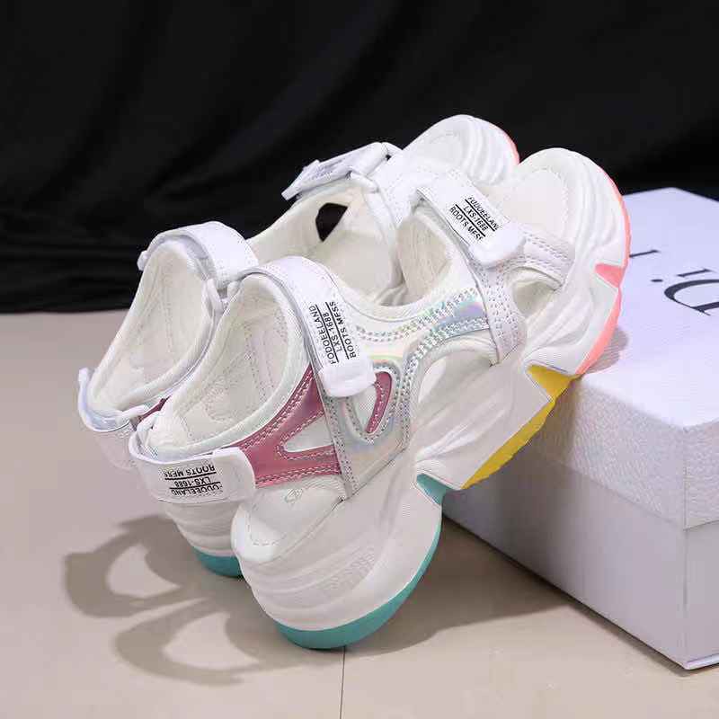 💖รองเท้าแตะด้านล่างสีรุ้งใหม่หญิงฤดูร้อนด้านล่างหนาสุทธิรองเท้าแตะสีแดงตาข่ายระบายอากาศด้านล่างแบนรองเท้าแตะเวลโครX118#