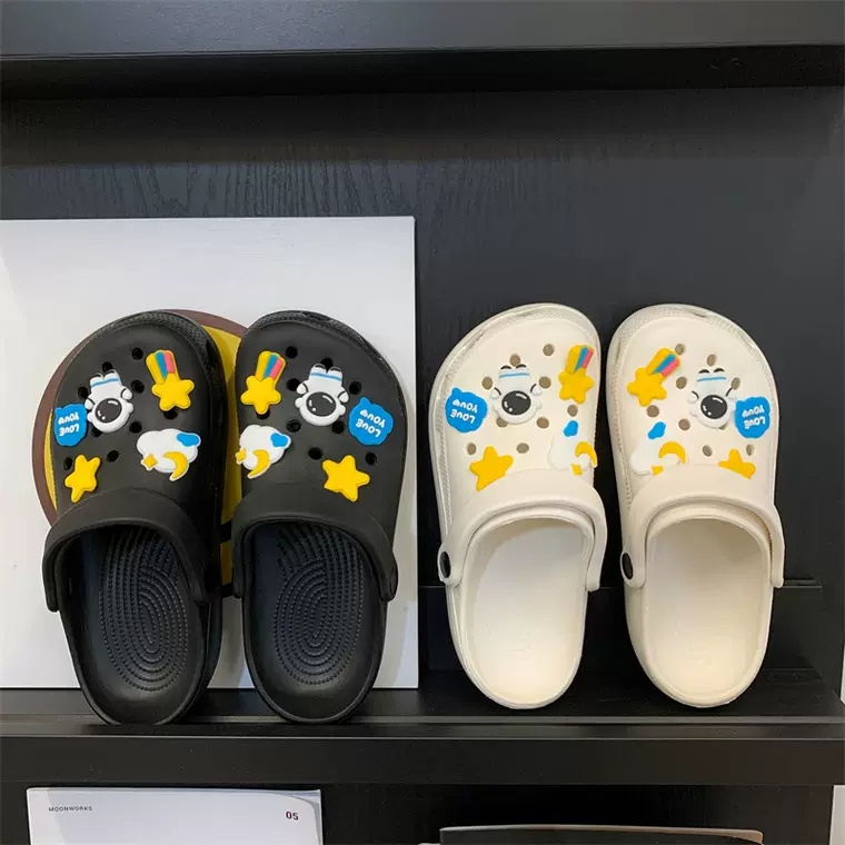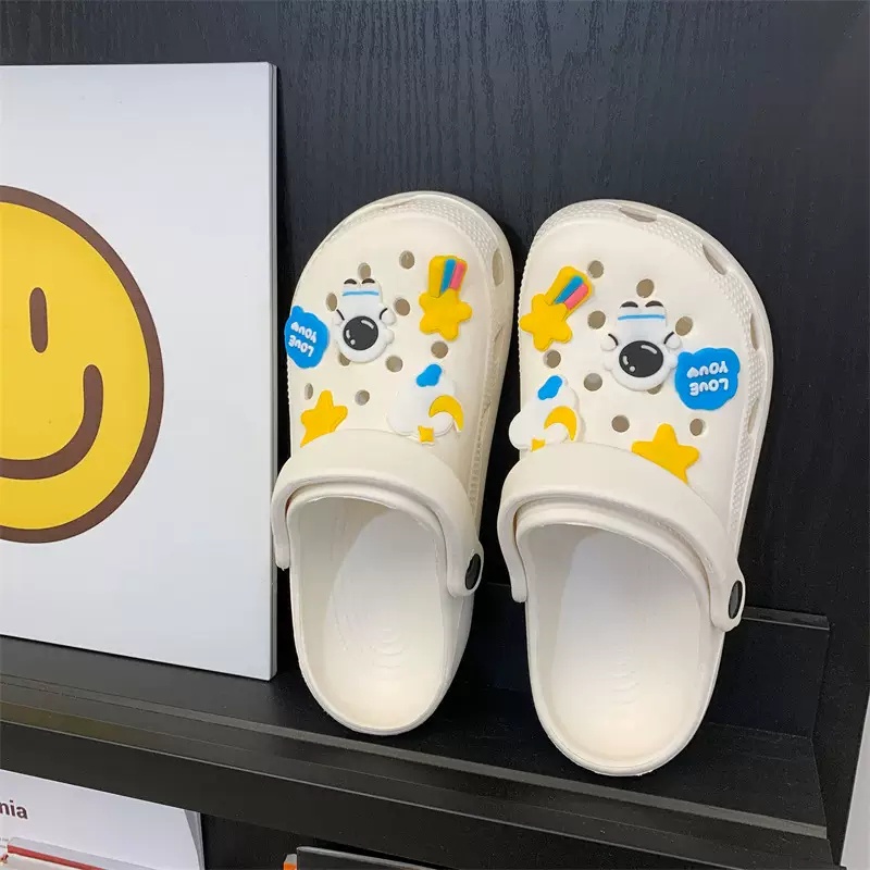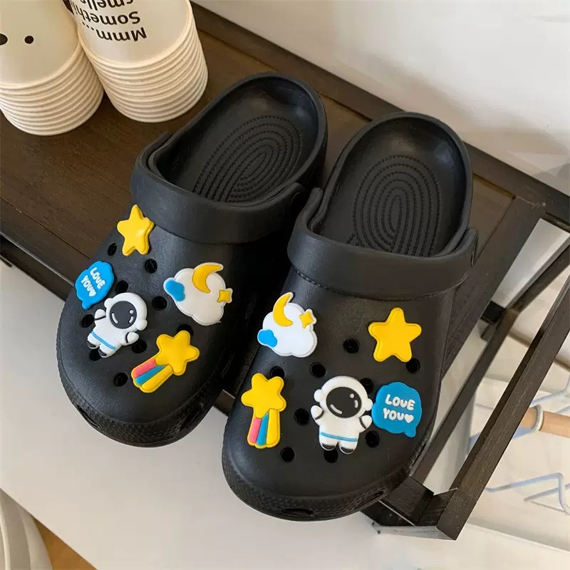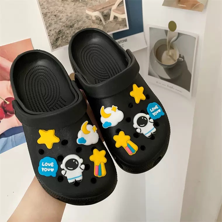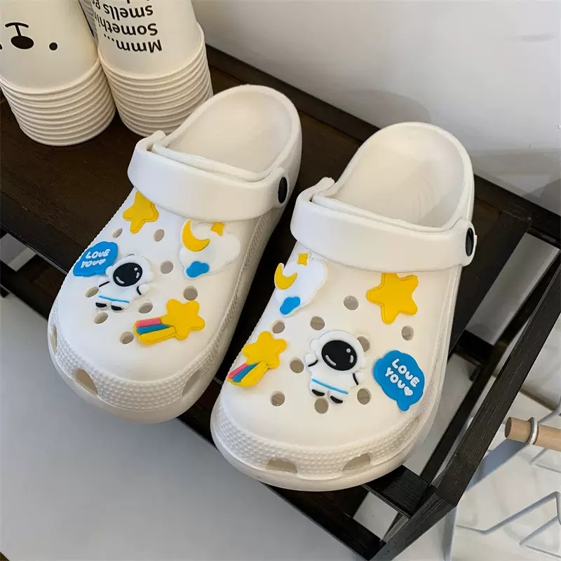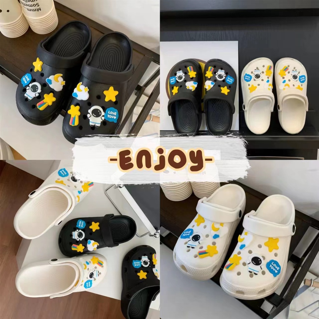 🍓EnJoy🍓 พร้อมส่ง (TO-2196) รองเท้าแบบสวม สีเรียบ มีตุ๊กตา นักบินอวกาศ ทั้ง2ข้าง