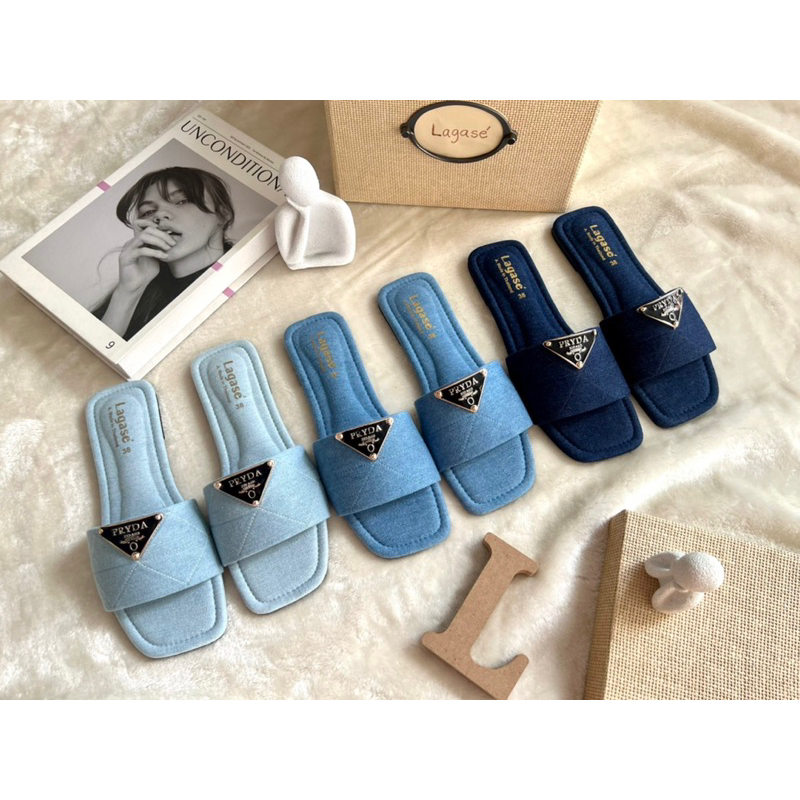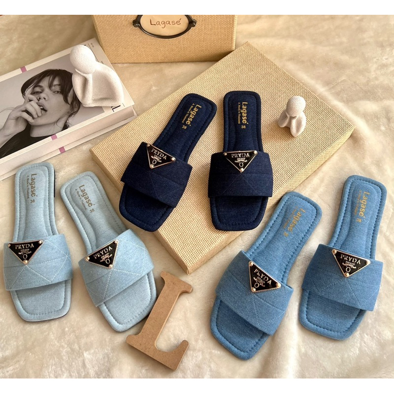 🎀รองเท้าแตะผ้ายีนส์อะไหร่PD🎀 มาใหม่สวยไฮโซมากค่ะ มา3สีนะคะ มีไซด์36-44 สินค้าพร้อมส่งนะคะ