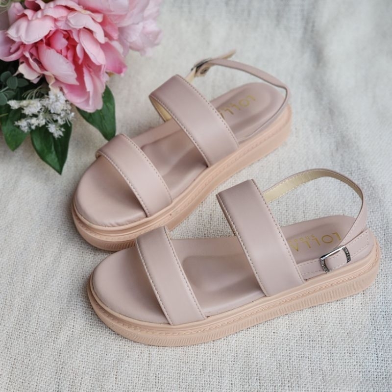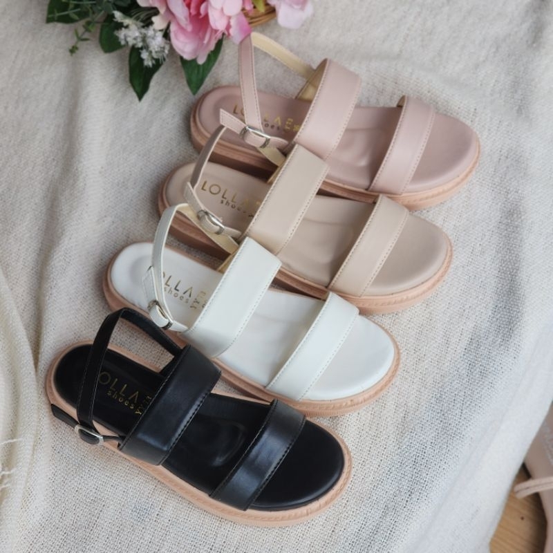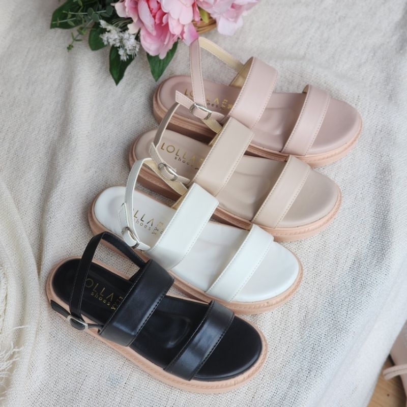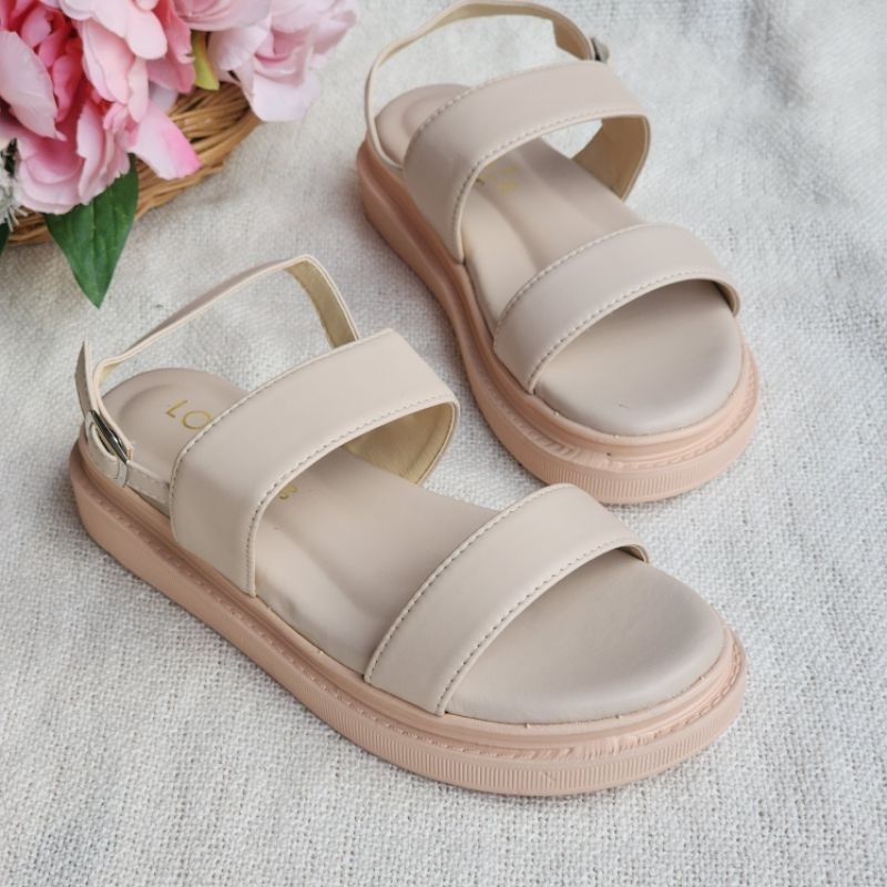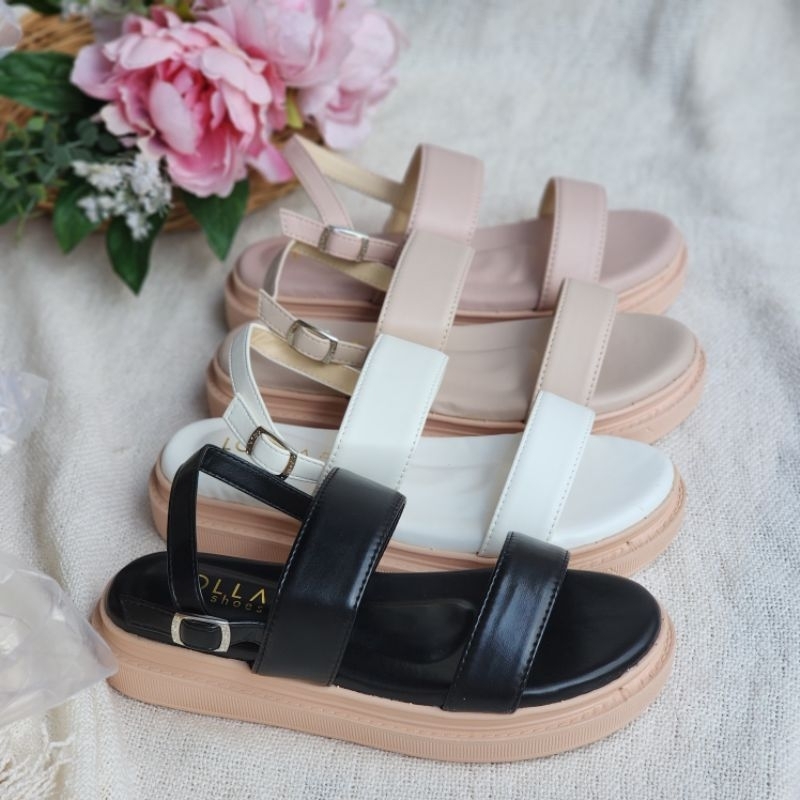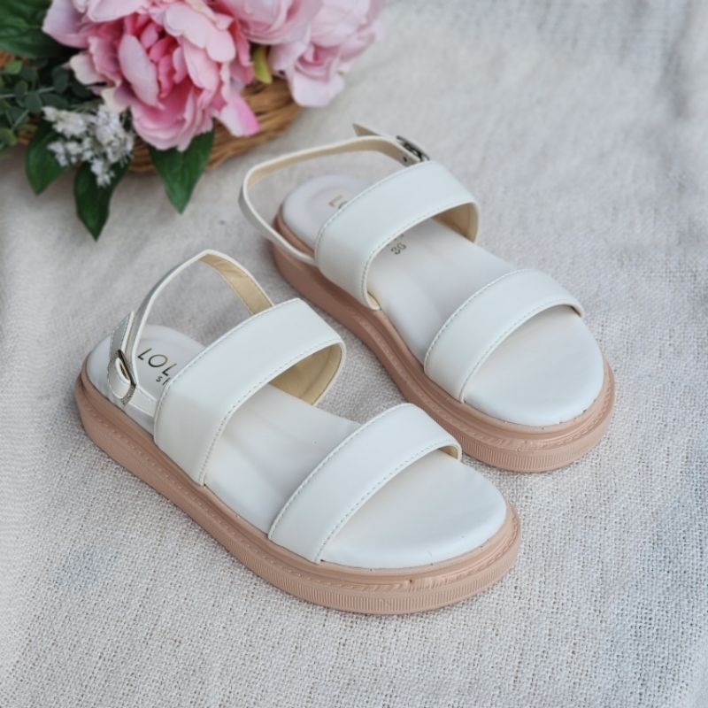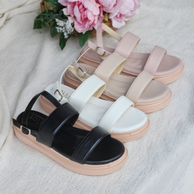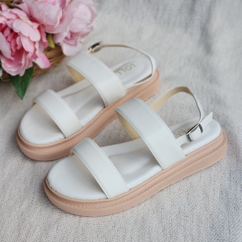 🍓EnJoy🍓 พร้อมส่ง (TO-1860) รองเท้าหัวโต สายคาดพื้นเรียบ มี3สีเรียบๆ