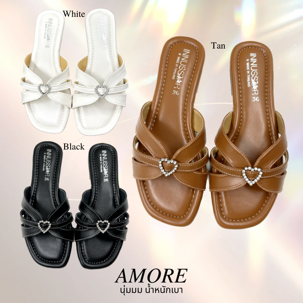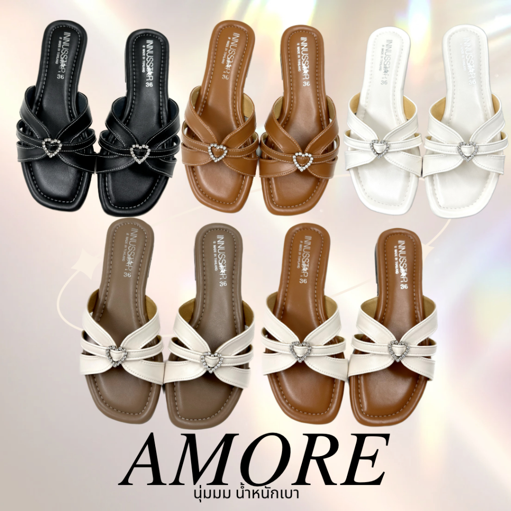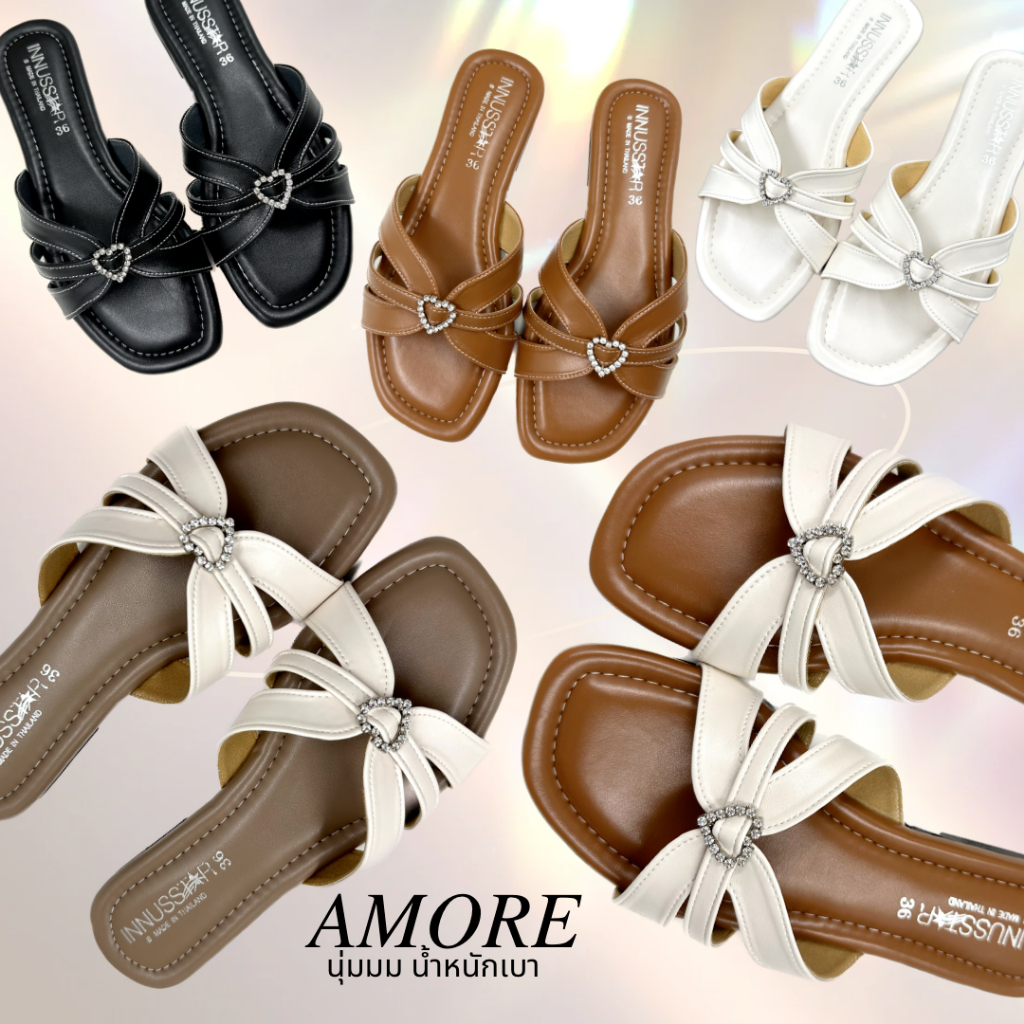 💖AMORE💖รองเท้าแตะพื้นนุ่มเบาหนังนิ่ม งานแฮมเม้ดของโรงงานไทย🇹🇭 พร้อมส่ง5สี ไซส์36-40