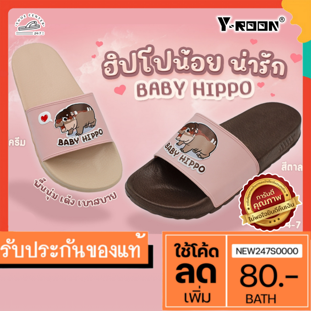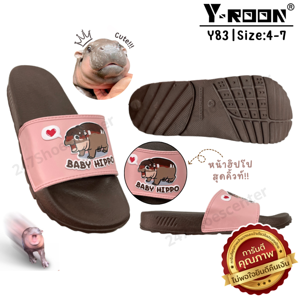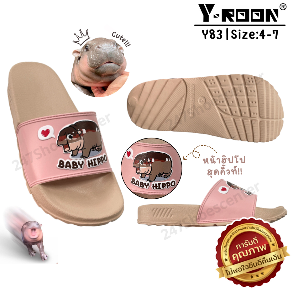 🔥MUST HAVE🔥รองเท้าแตะแบบสวมฮิปโป Y-ROON รุ่น Y83 พื้นนิ่ม สวมเบาสบาย Size 4-7