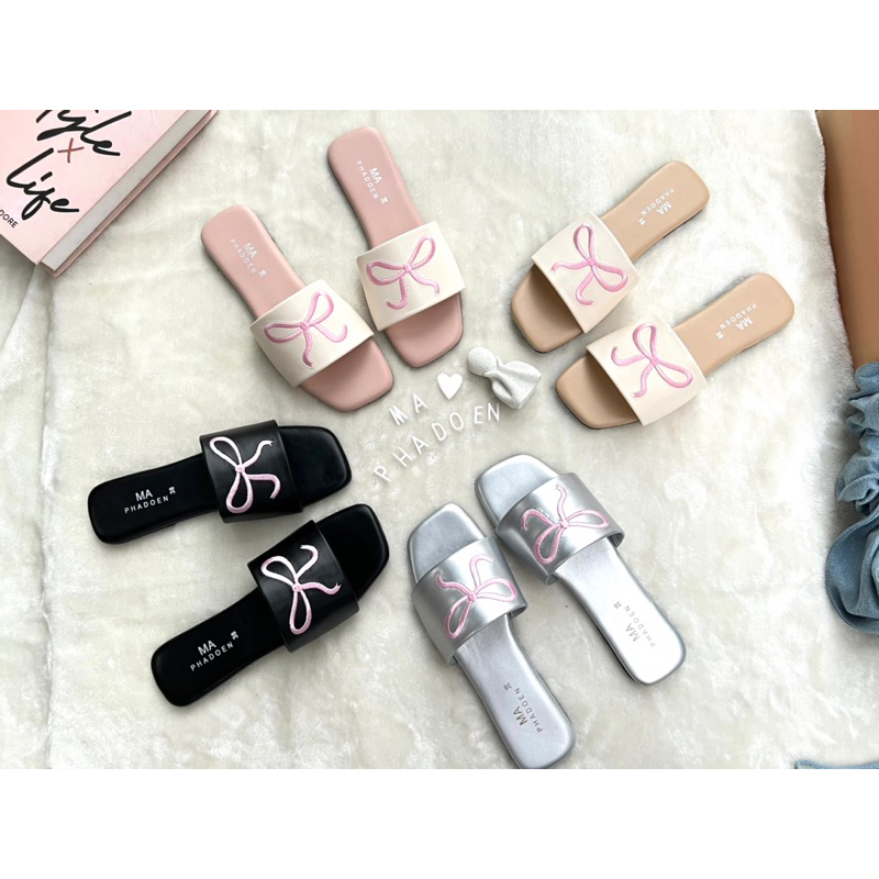 🎀Rinya shoes🎀รองเท้าแตะน้องโบว์ตัวฮิต น่ารักมาก มีไซด์36-45 สินค้าพร้อมส่งนะคะ