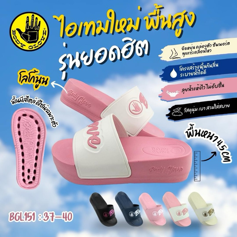 🔥พร้อมส่ง🔥รองเท้าแตะแบบสวม Body Glove รุ่น BGL151 ขนาดผู้หญิงพื้นหนา 4 ซม. เสริมส้น มีขนาด 37-40 พื้นนุ่ม สวมใส่สบาย
