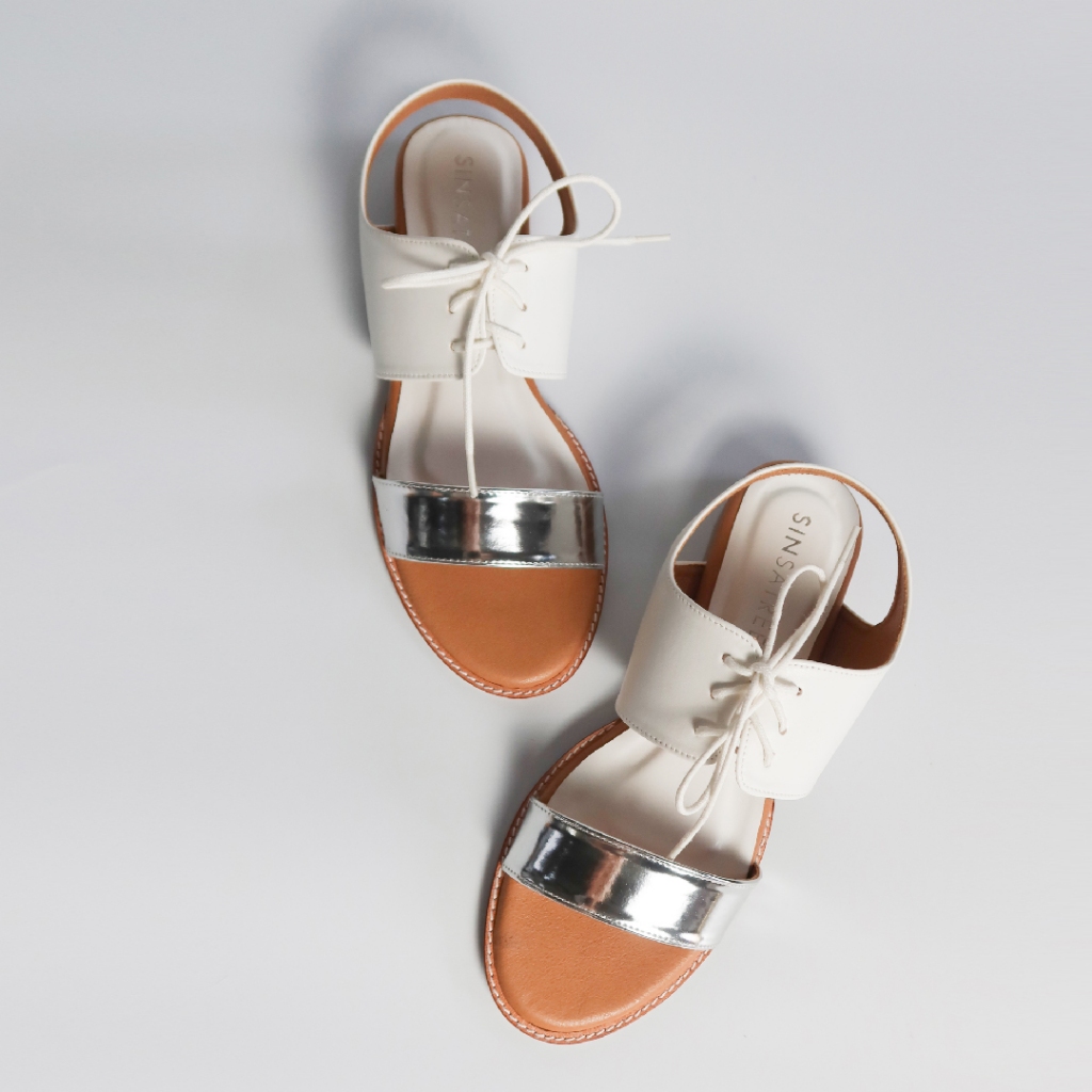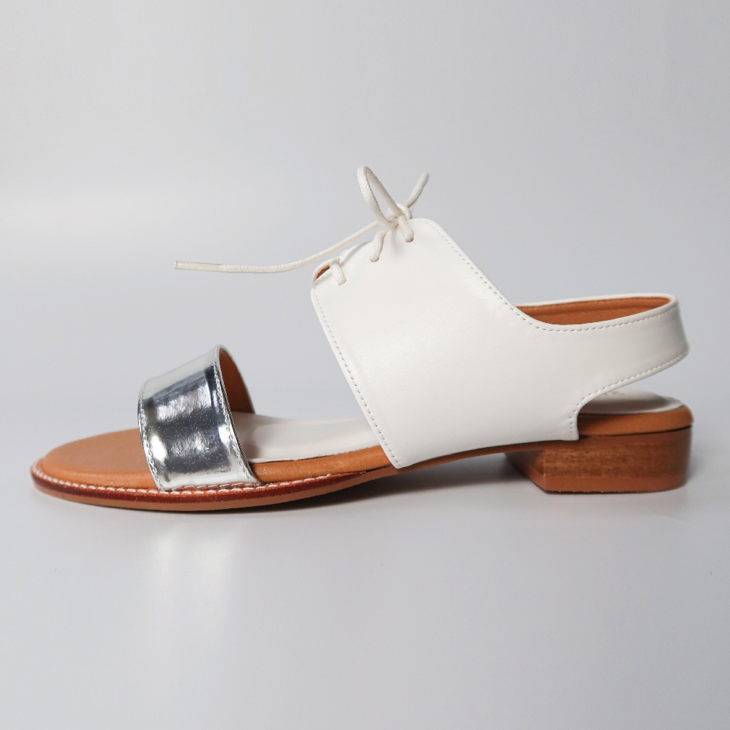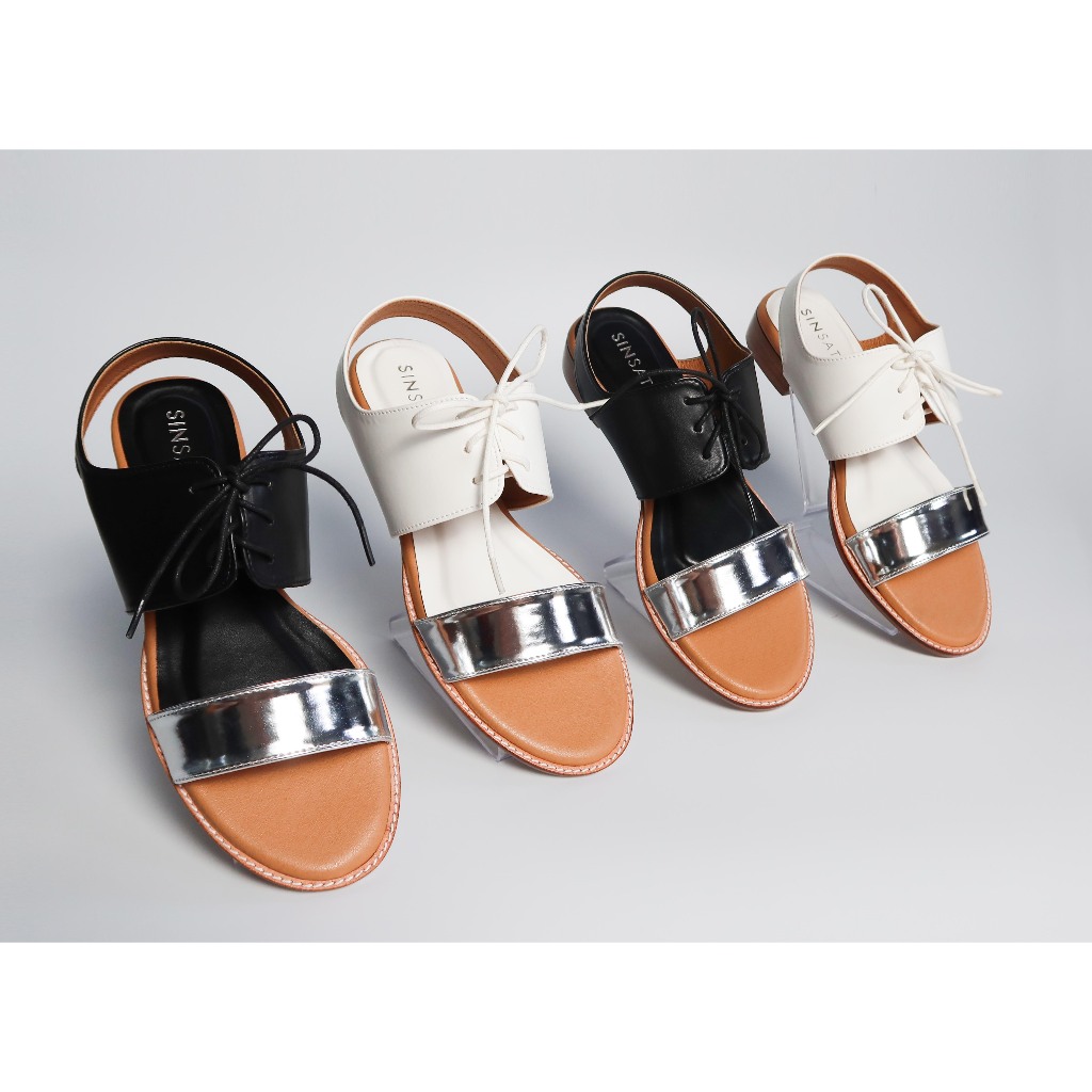 Sinsatree SSTS004 รองเท้าแตะรัดส้น ผูกเชือก ตกแต่งคาดสีเงิน