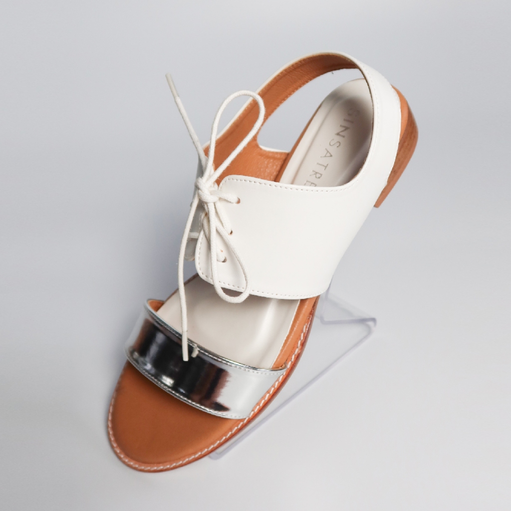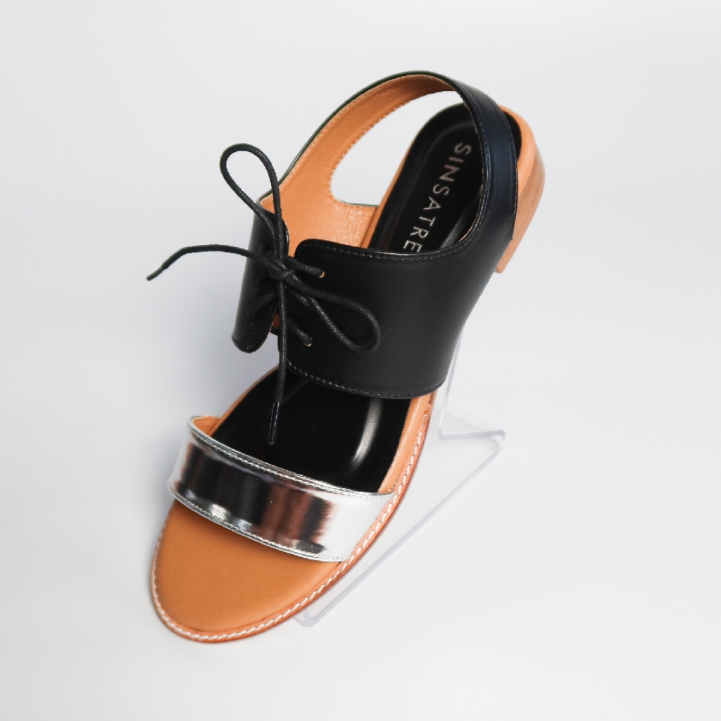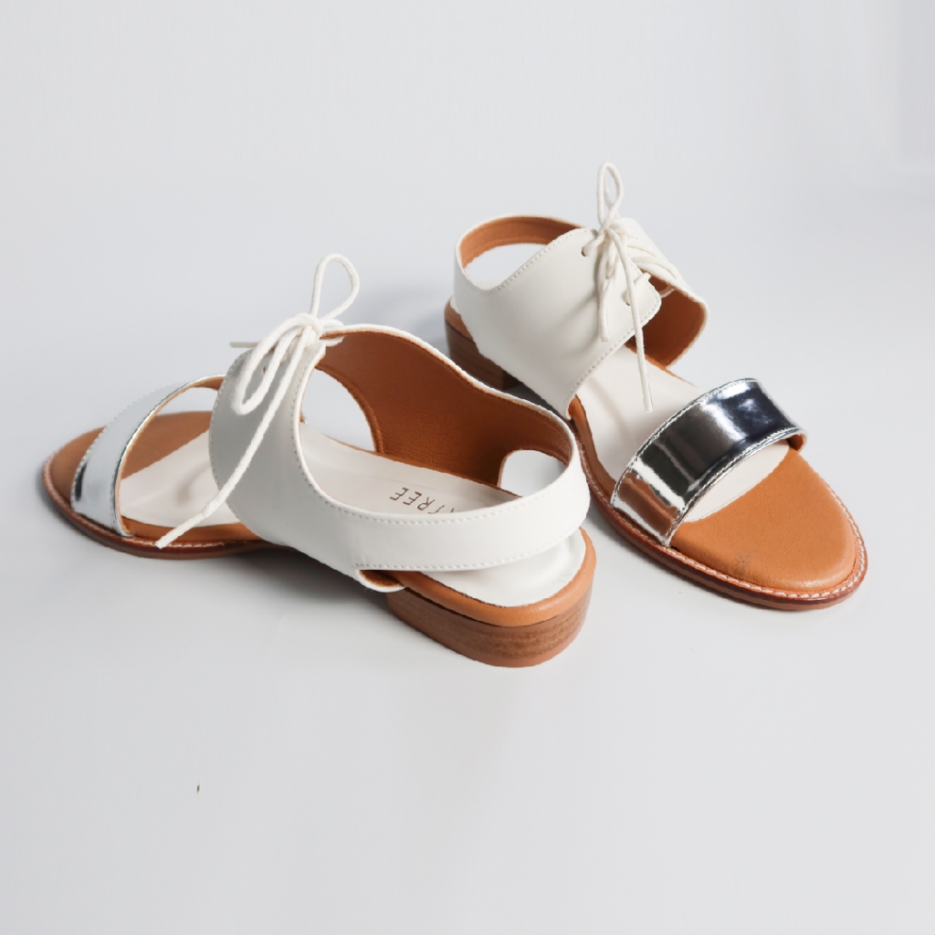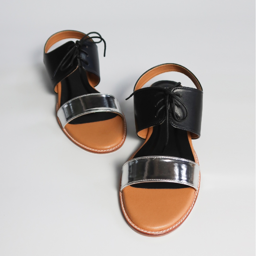 Sinsatree SSTS004 รองเท้าแตะรัดส้น ผูกเชือก ตกแต่งคาดสีเงิน
