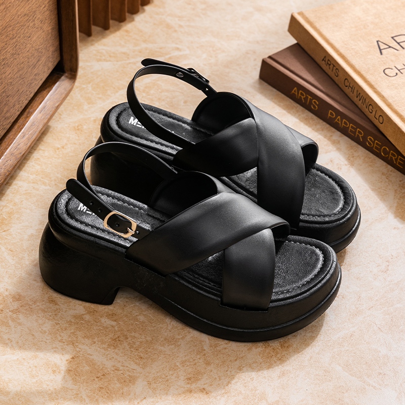 ShoesStudios รุ่นยอดฮิต รองเท้าแตะแฟชั่นผู้หญิง เป็นงานสวมสายไขว้ แถมมีสายรัดส้นให้ด้วย ทรงสวย สีสันดี แมทช์ง่าย ราคาถ