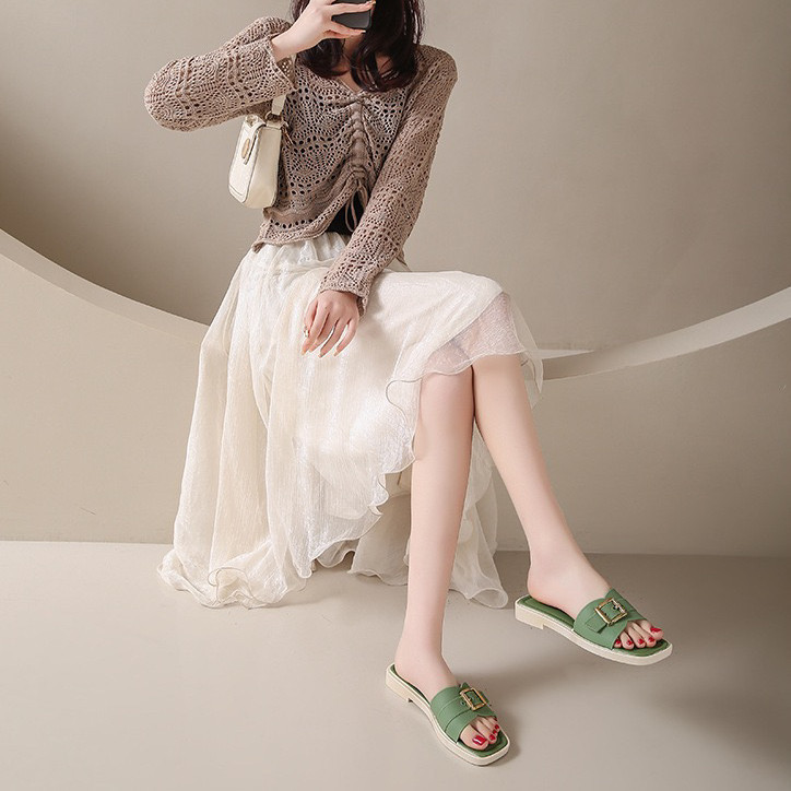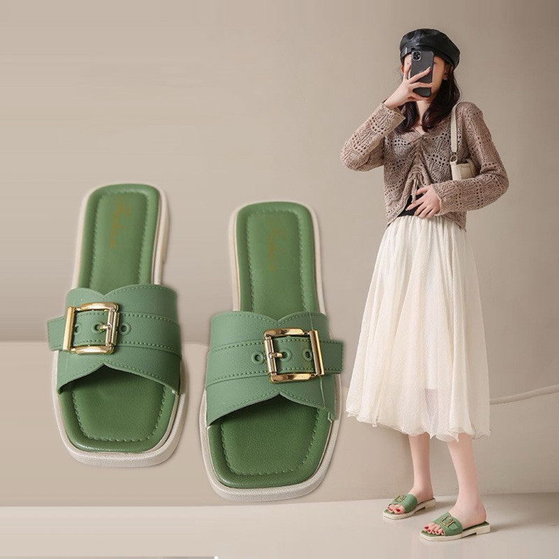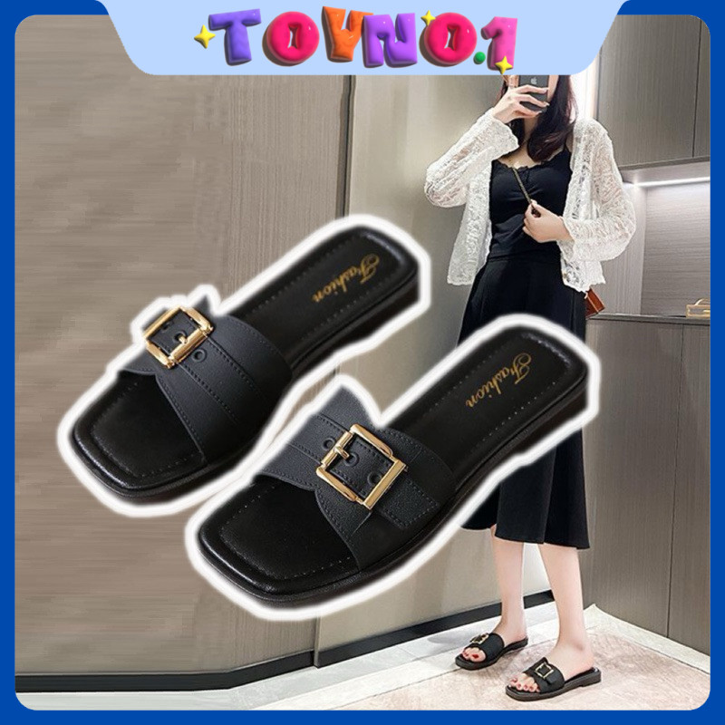 ToyNo.1🧸 พร้อมส่ง🧸 “LT-NC” รองเท้าแตะลำลอง พื้นแบนแต่งหัวเข็มขัด ทรงสีเหลี่ยมมี3สี