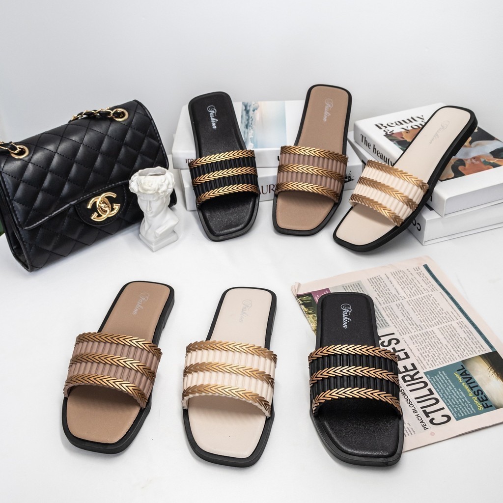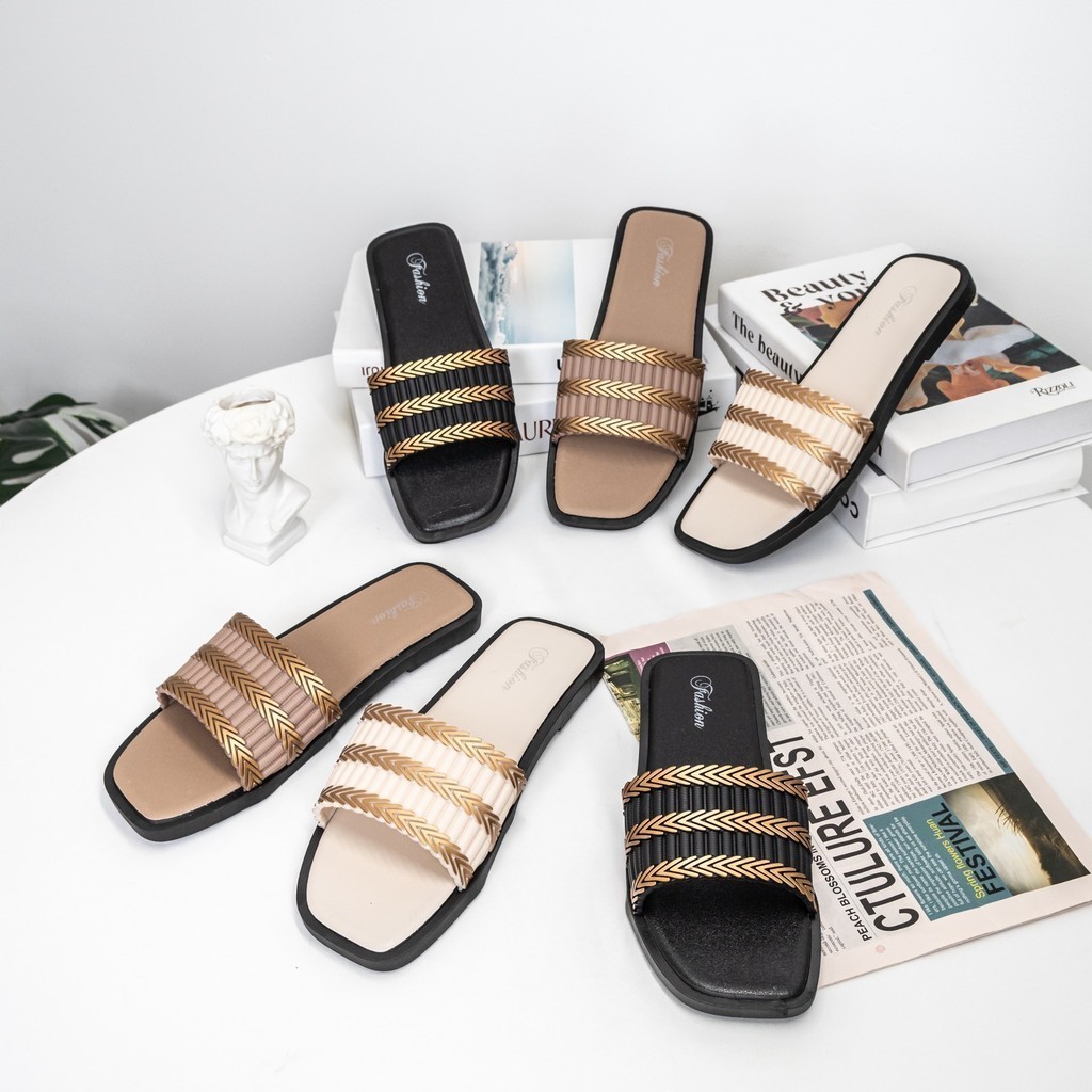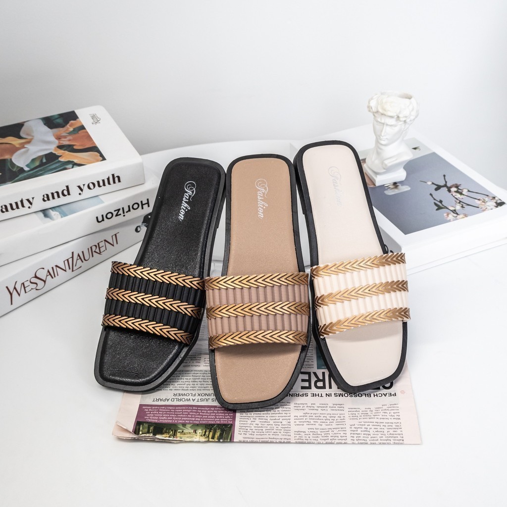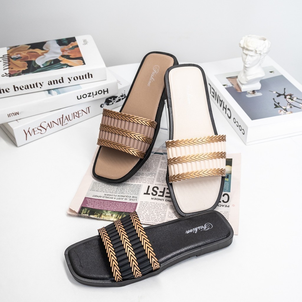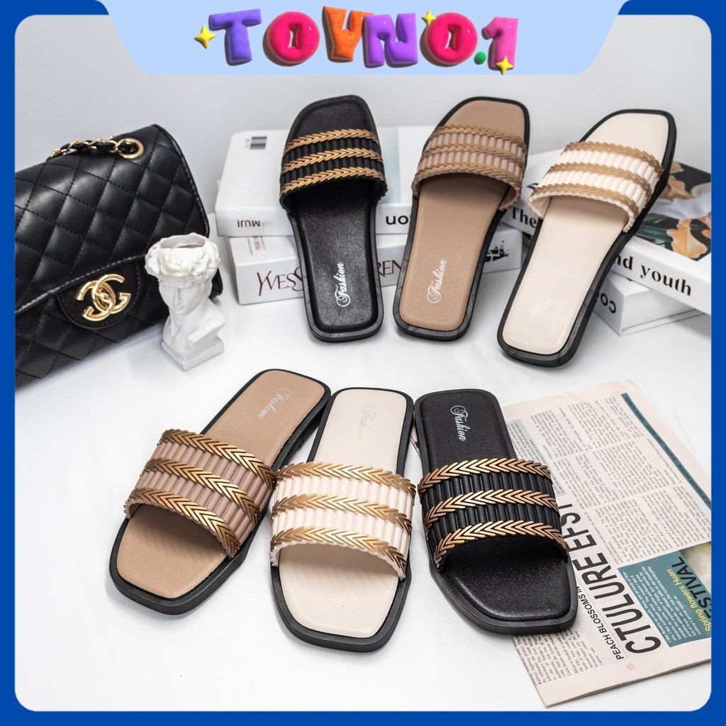 ToyNo.1🧸 พร้อมส่ง🧸 “LT-J985” รองเท้าแตะสวม ดีเทลลายคาด 3เหลี่ยม มีสามสีใส่สบาย