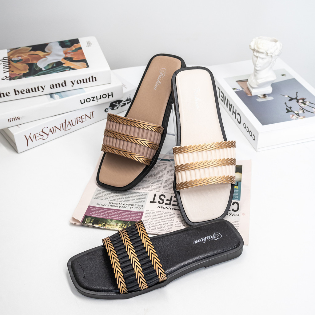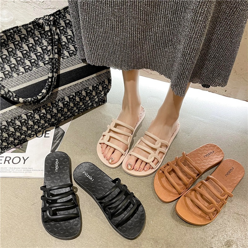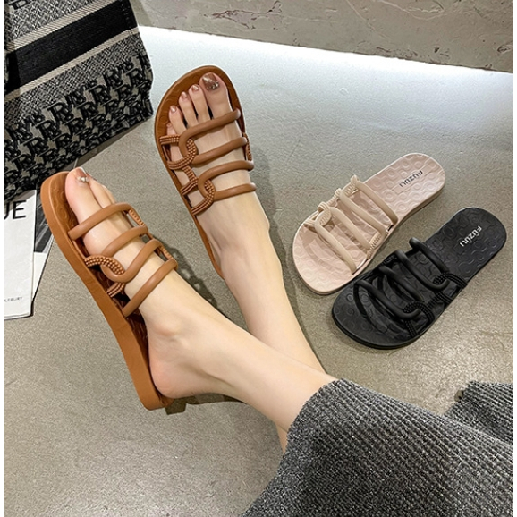 uyongit รองเท้าแตะสวม พื้นนิ่ม แฟชั่น รองเท้าผู้หญิง ใส่สบาย สีพื้น พร้อมส่ง S-201