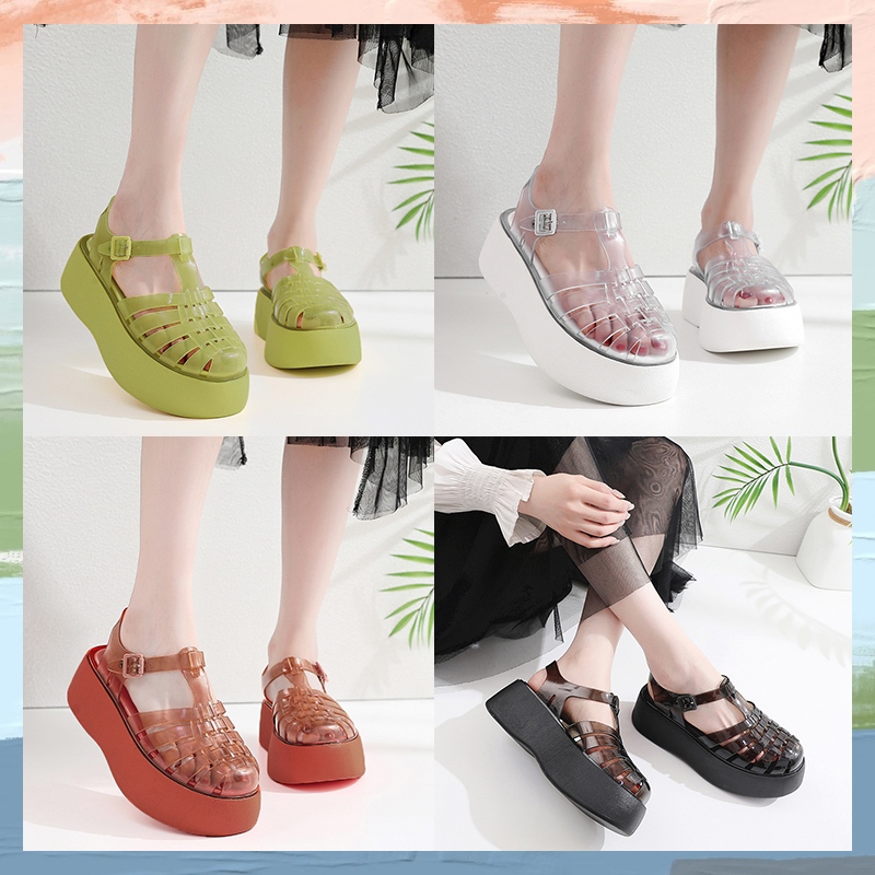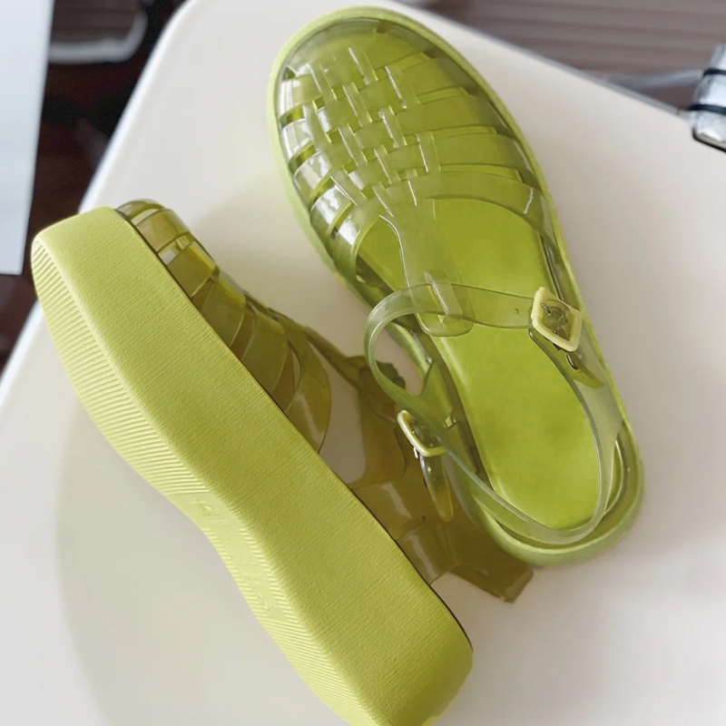 Tnicoo แฟชั่นสุดฮิต รองเท้าแตะแฟชั่น งานรัดส้นหัวปิดน้ำหนักเบาทำความสะอาดได้ง่ายสีเยลลี่น่ารักน่าใส่สุดๆงานสวยไม่ซ้ำใ