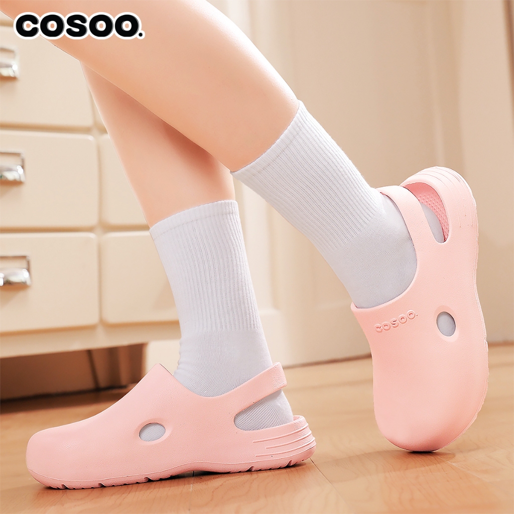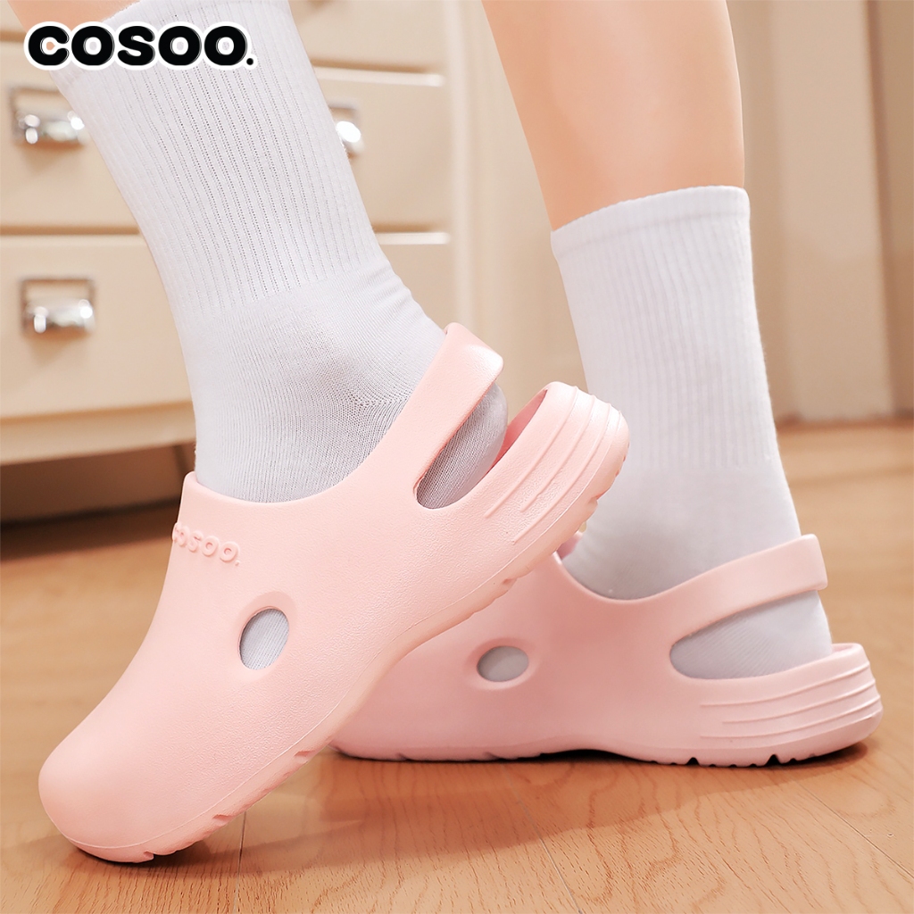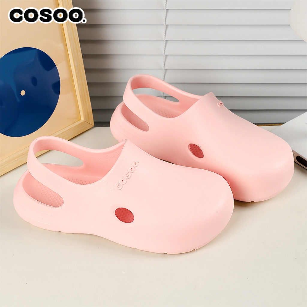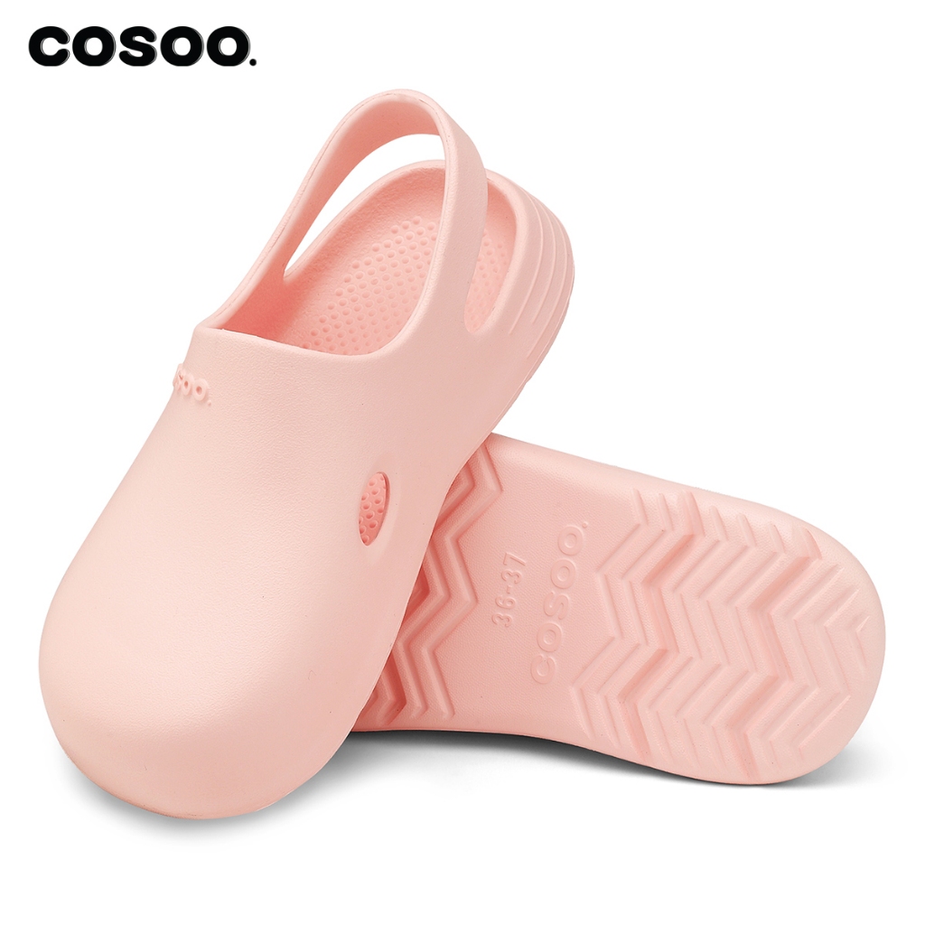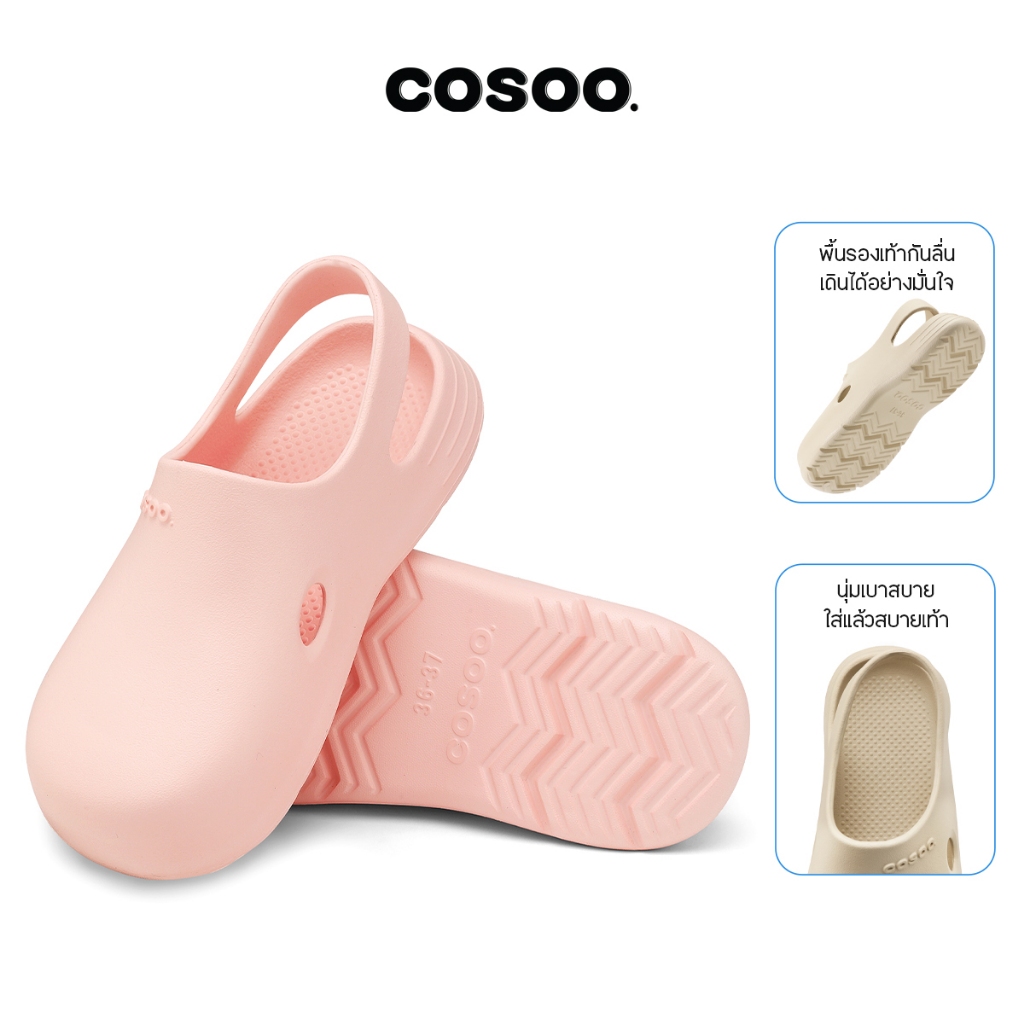 COSOO รองเท้าผู้หญิง รองเท้าแตะ รองเท้าหัวโต รองเท้าแตะรัดส้น แฟชั่น นุ่มสบายเท้า พื้นหนา กันลื่น สีชมพู รุ่น CS-R01