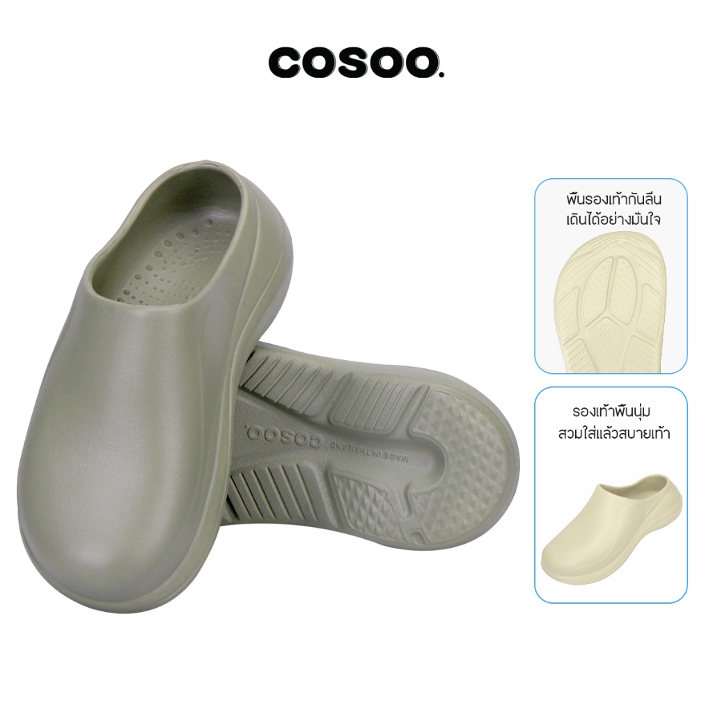 COSOO รองเท้าแตะ รองเท้าหัวโต รองเท้าผู้หญิง แฟชั่น แบบสวม นุ่มสบายเท้า พื้นหนา กันลื่น กันน้ำ สีเขียว รุ่น CS-H02